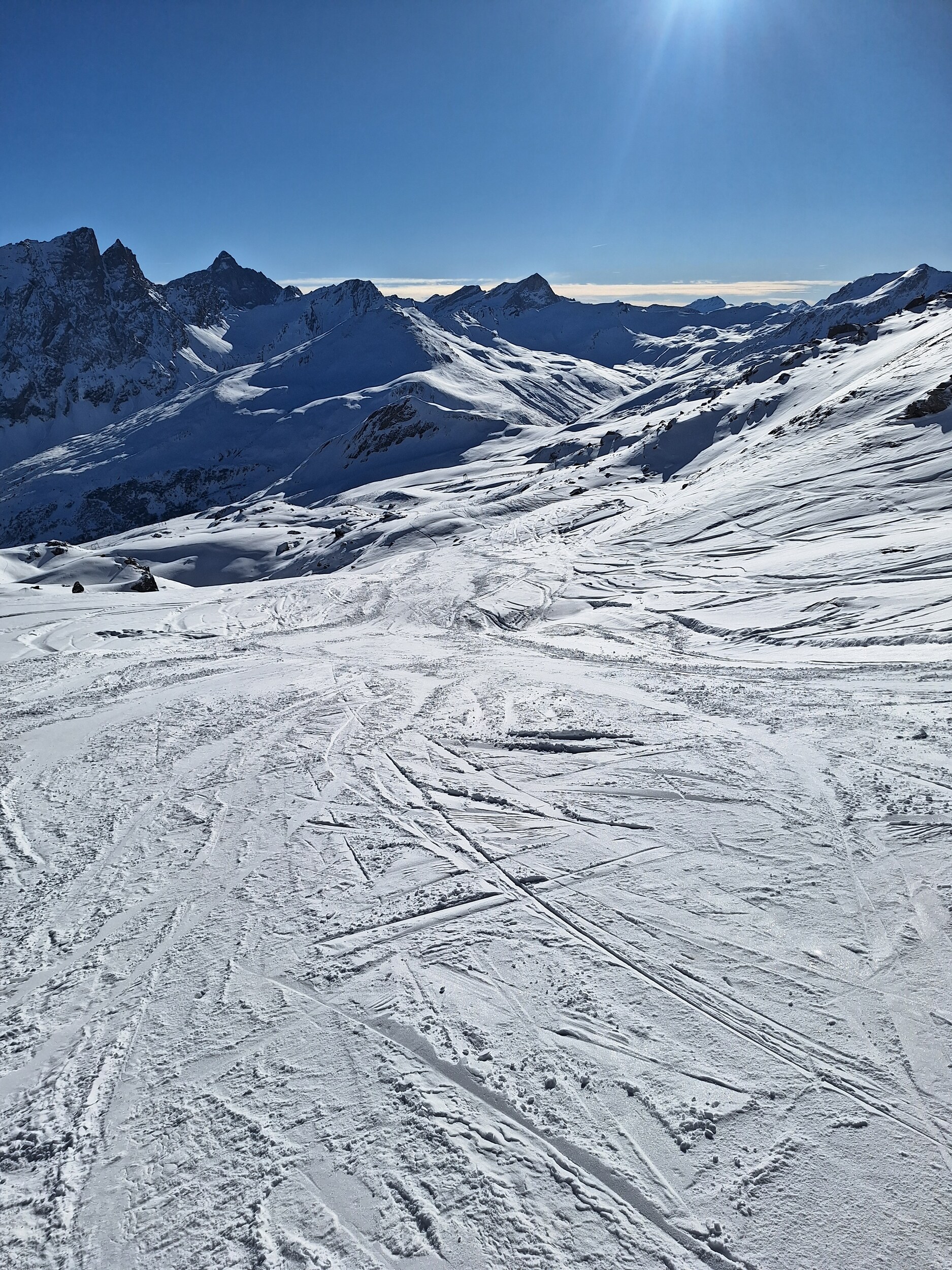 Das positive Vorneweg, es herrschte Topwetter und wie immer war der Andrang sehr überschaubar. Ab 12:00 hatte ich immer eine Privatgondel oder Sessel. Und natürlich ist es toll fast 1500hm in einem Zug zu fahren.