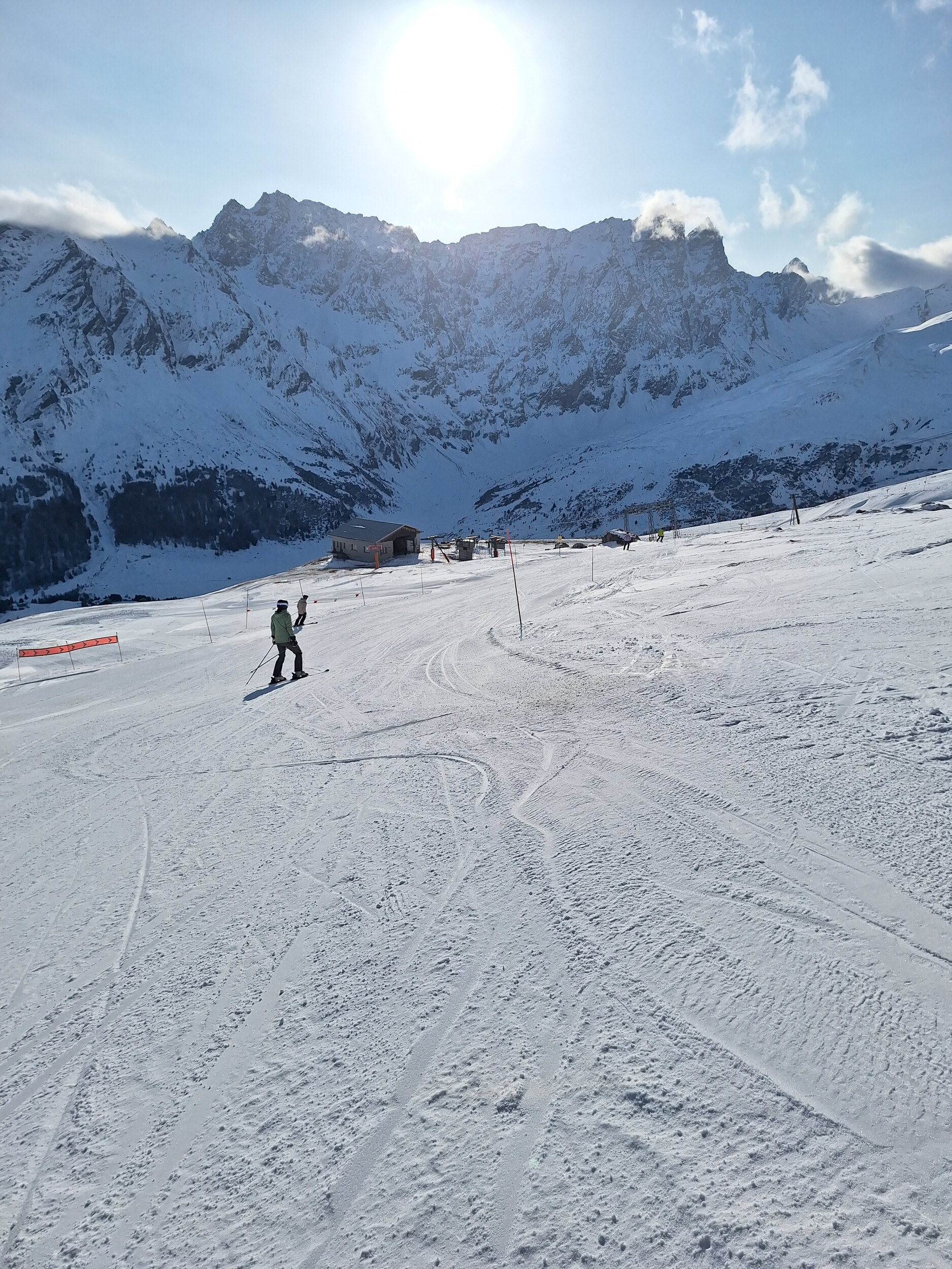 Daher ist mein Eindruck überwiegend positiv. Gutes Wetter, angenehm entschleunigtes Gebiet, im oberen Bereich 2 Naturschneepisten unten Kunstschnee. Fr. 41,- für die 4 Stunden Karte finde ich jetzt nicht gerade billig, ist aber für mich in Ordnung auch im Hinblick auf andere Gebiete.