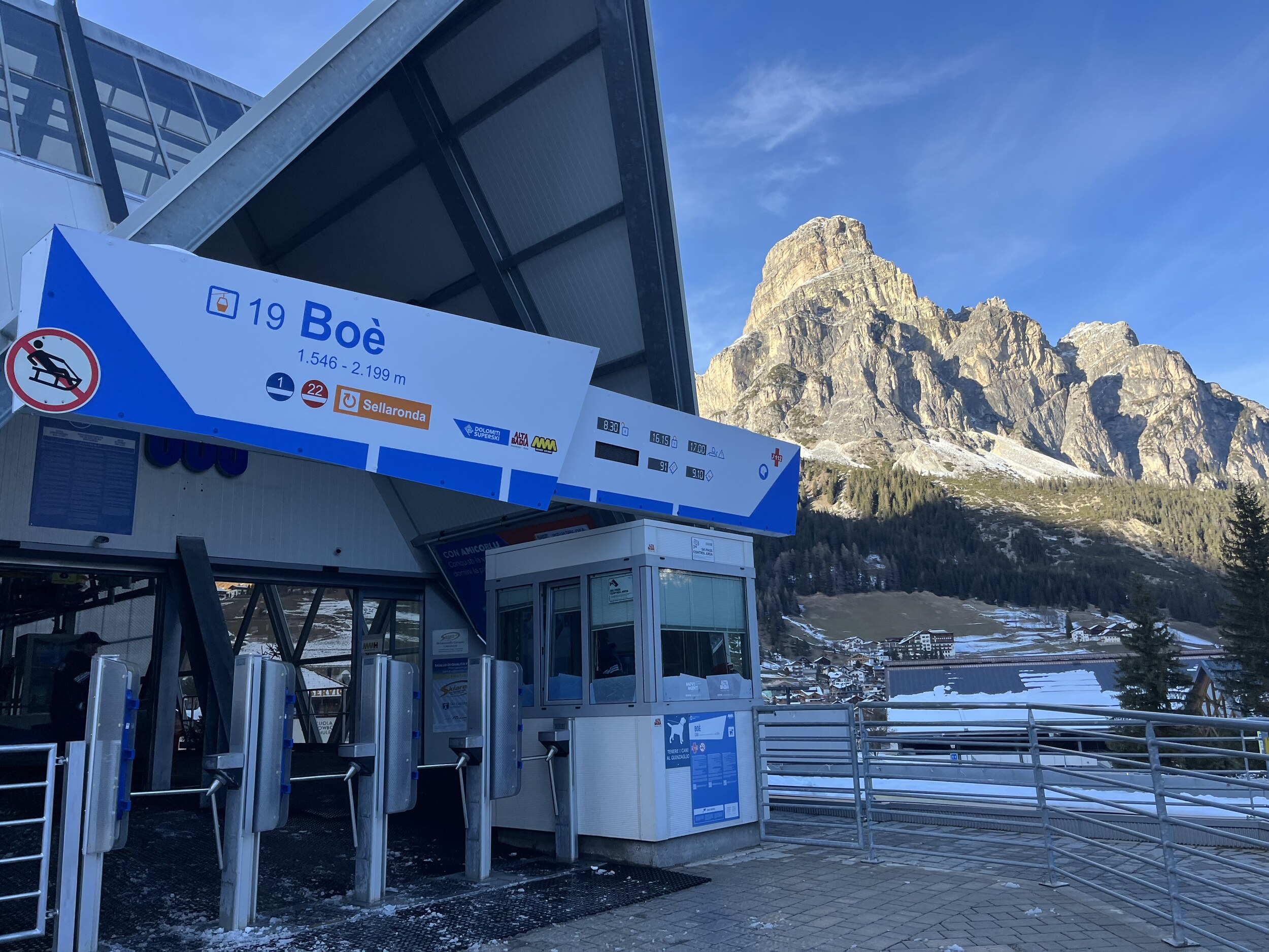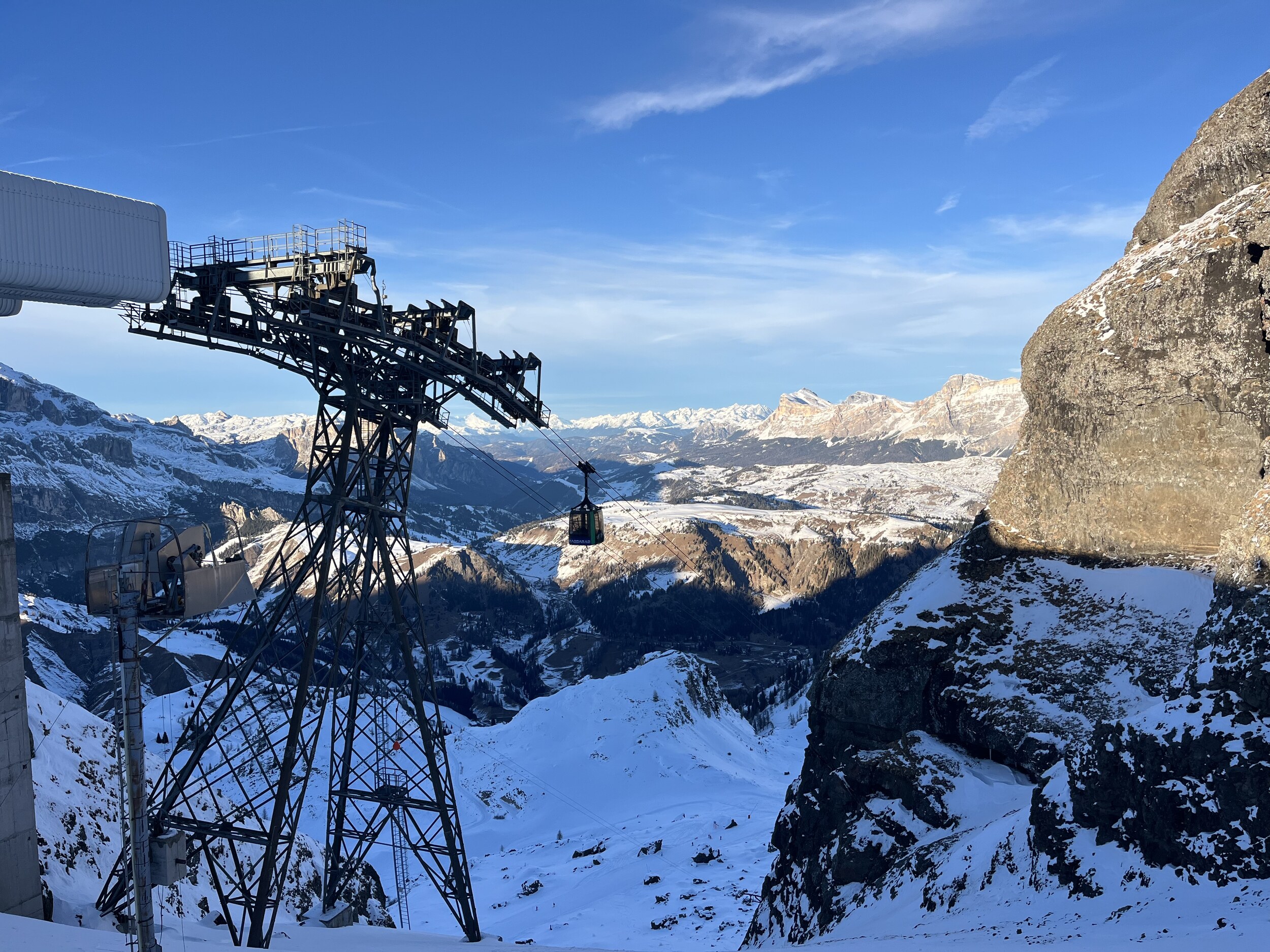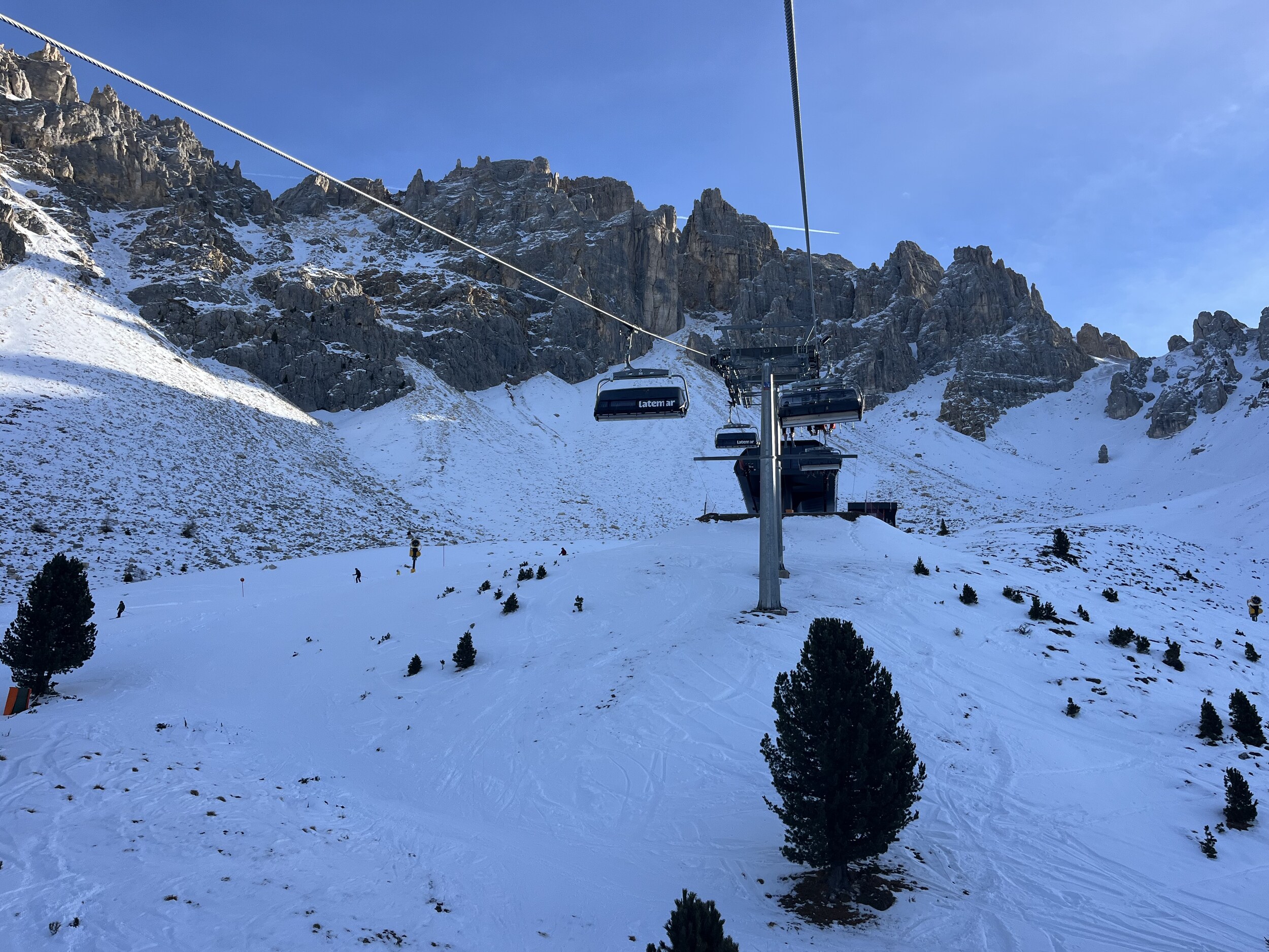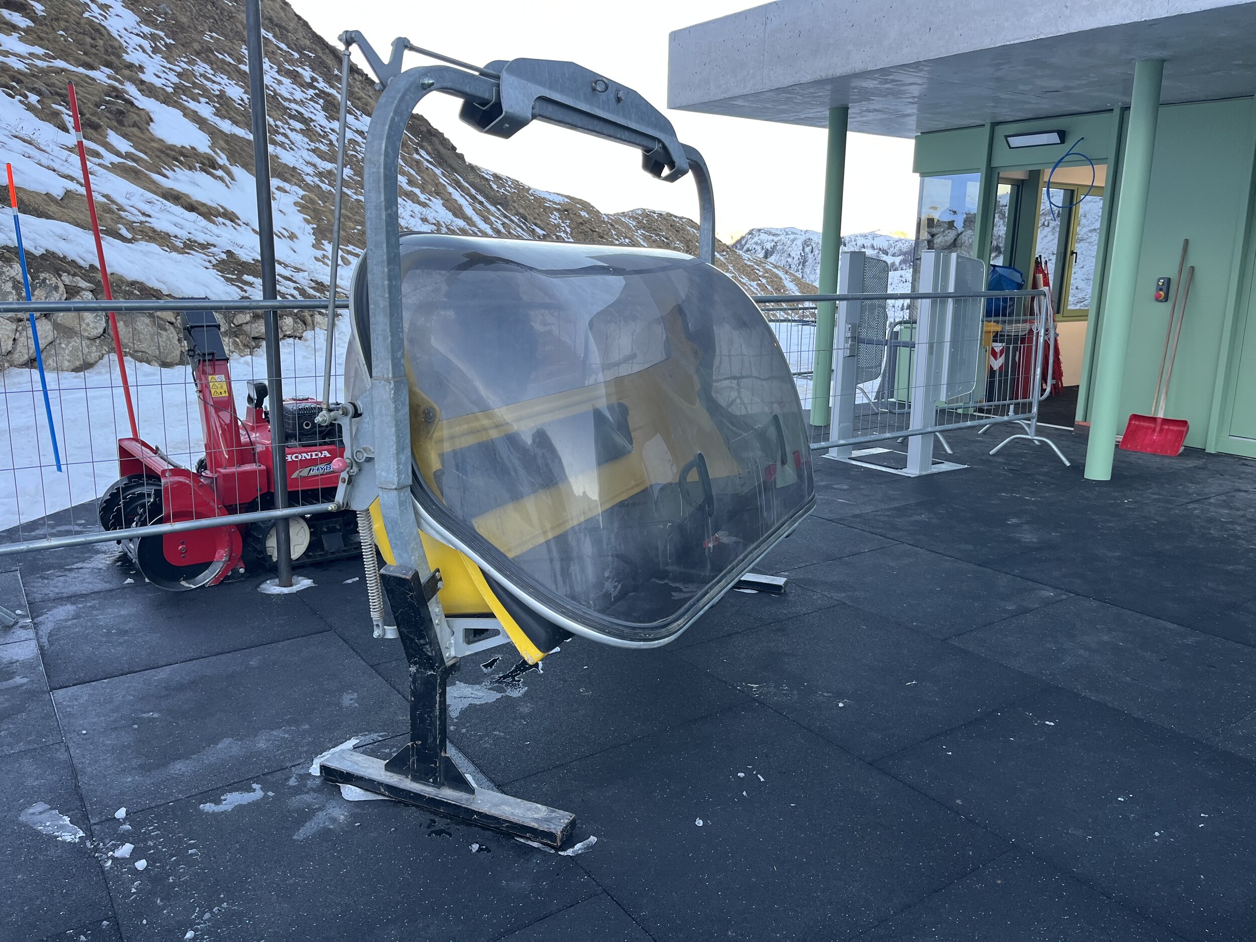 Grad mal die neue Lezuo. Als wir ankommen, steht die Bahn noch und ein Schraubenschlüssel fällt aus dem Umlauf. Alles hier sieht noch unfertig aus: