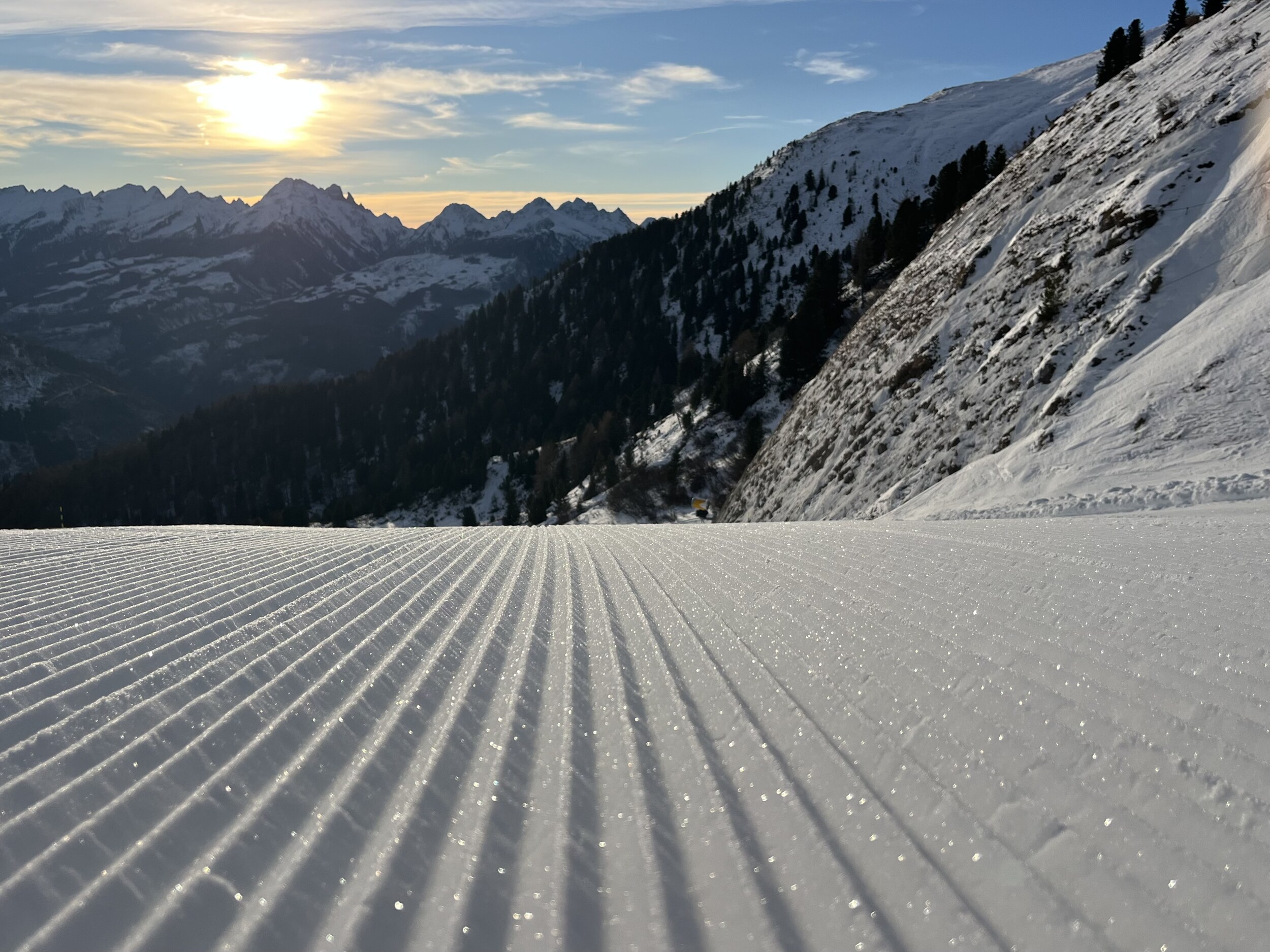 Die Pisten sind allesamt perfekt präpariert und pulvrig. Hier ist das einfach eine Selbstverständlichkeit. Andernorts würde man jubeln, wenn man sowas antrifft.