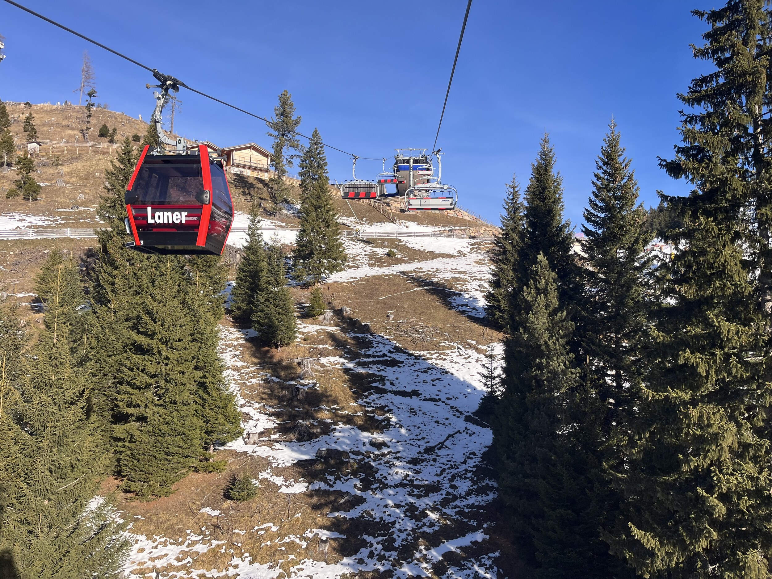 Grad mal die neue Lezuo. Als wir ankommen, steht die Bahn noch und ein Schraubenschlüssel fällt aus dem Umlauf. Alles hier sieht noch unfertig aus: