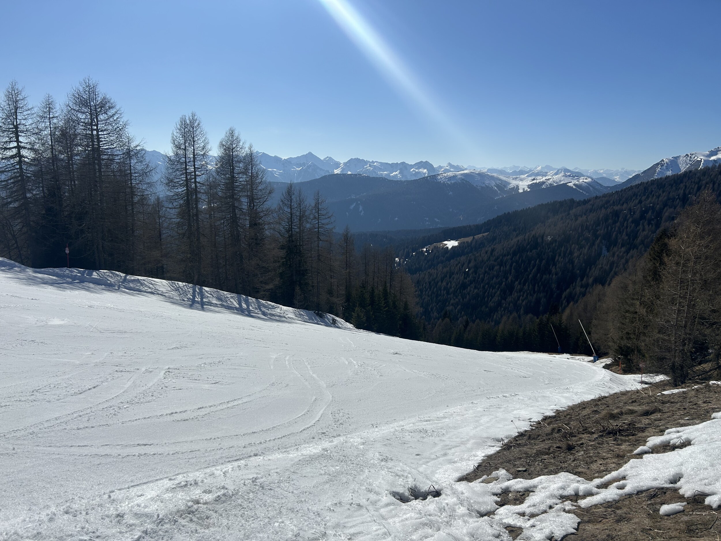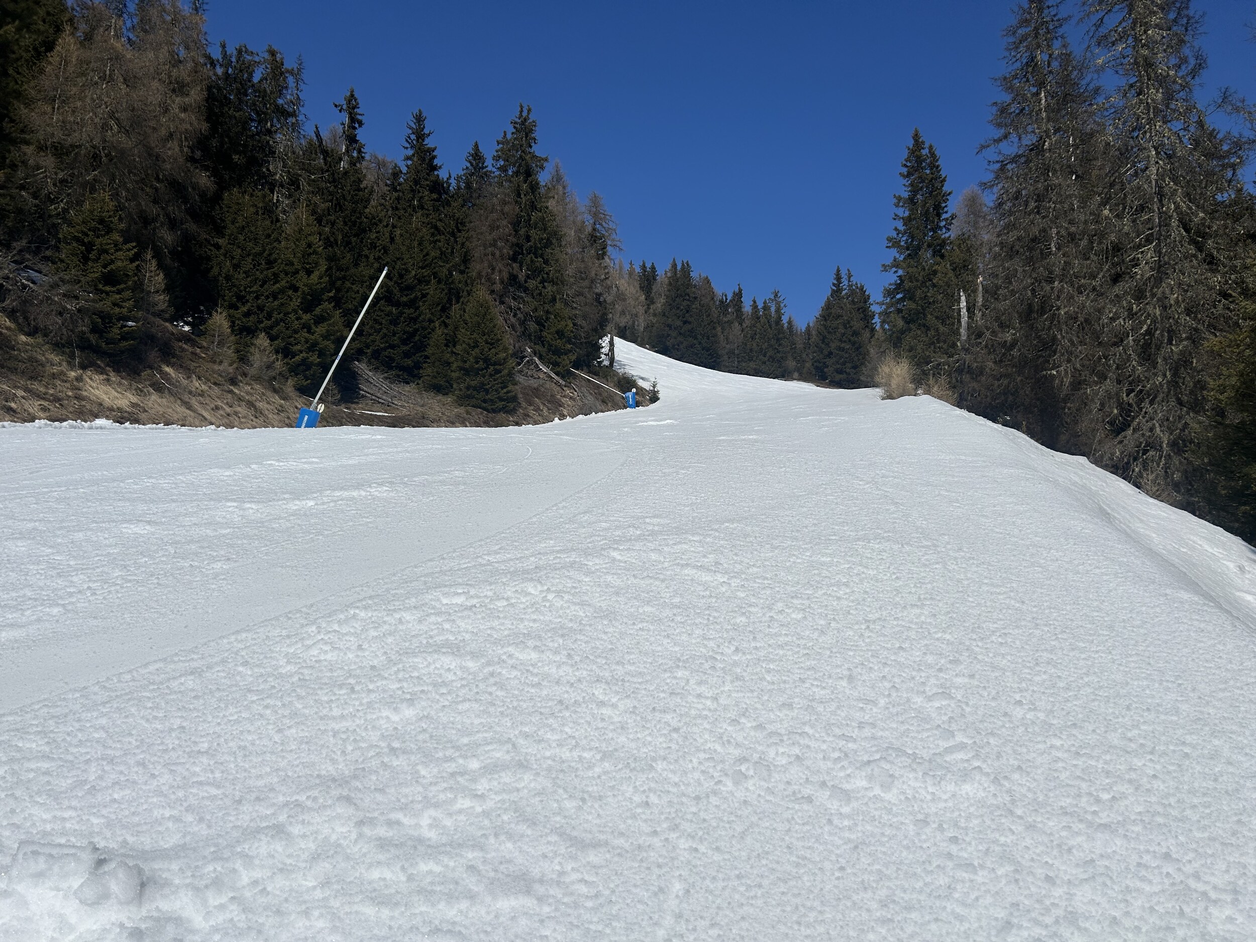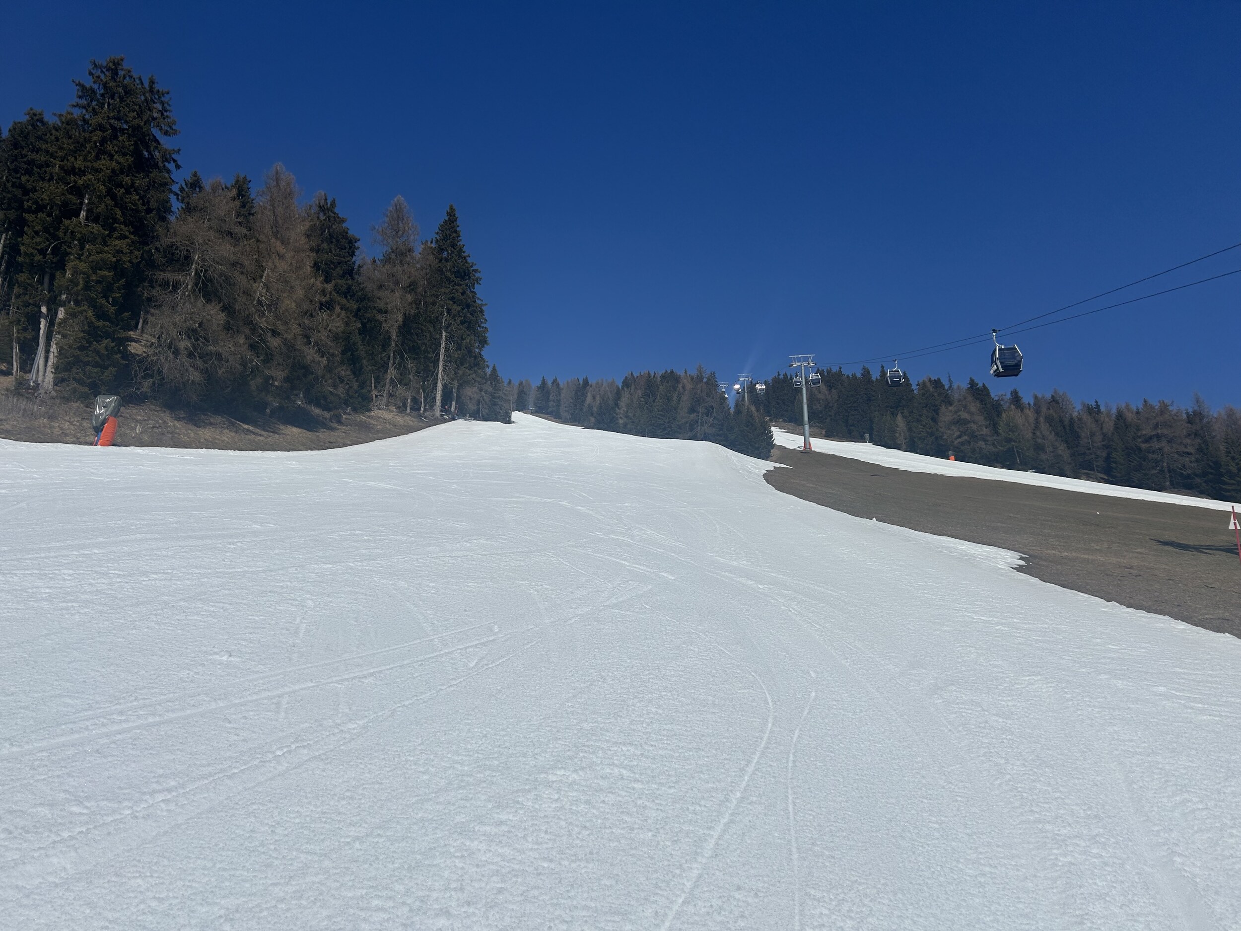 Natürlich setzt die Sonne und die warmen Temperaturen den Pisten je nach Lage schon etwas zu, aber alles noch super fahrbar.