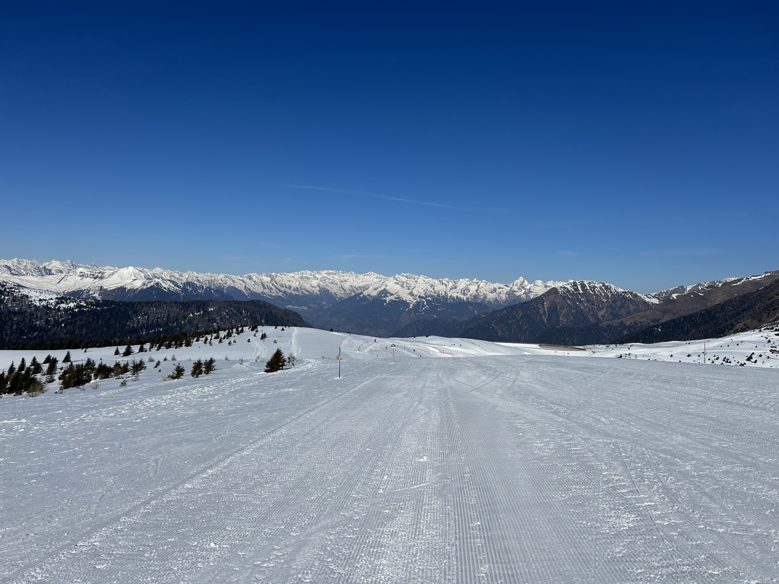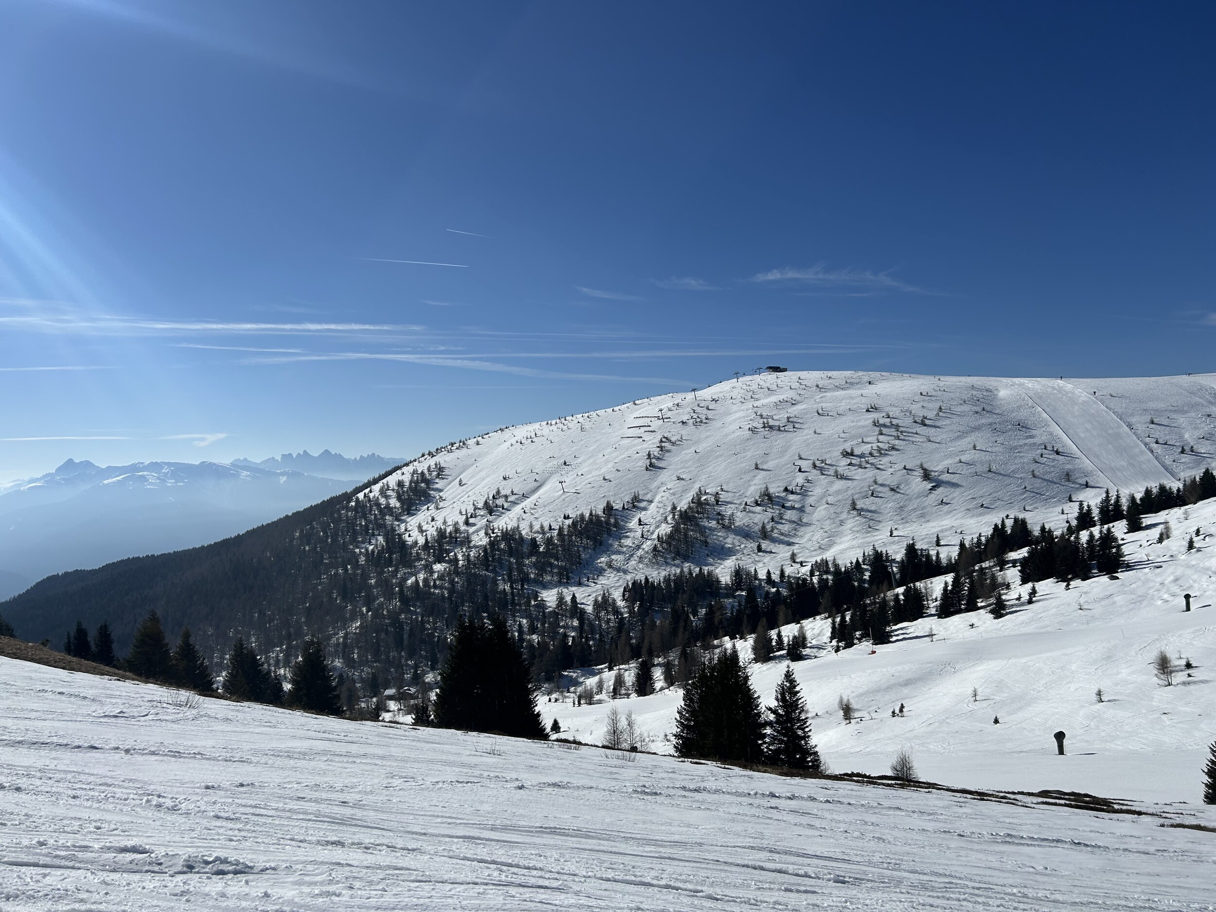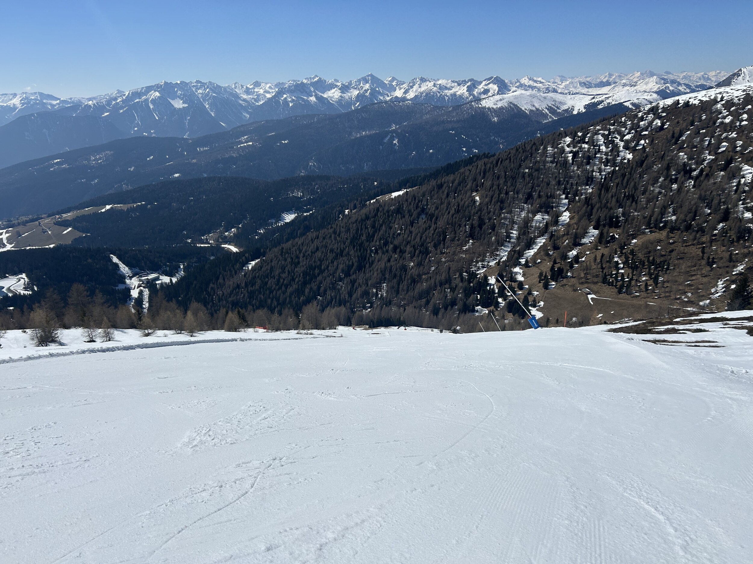 Natürlich setzt die Sonne und die warmen Temperaturen den Pisten je nach Lage schon etwas zu, aber alles noch super fahrbar.