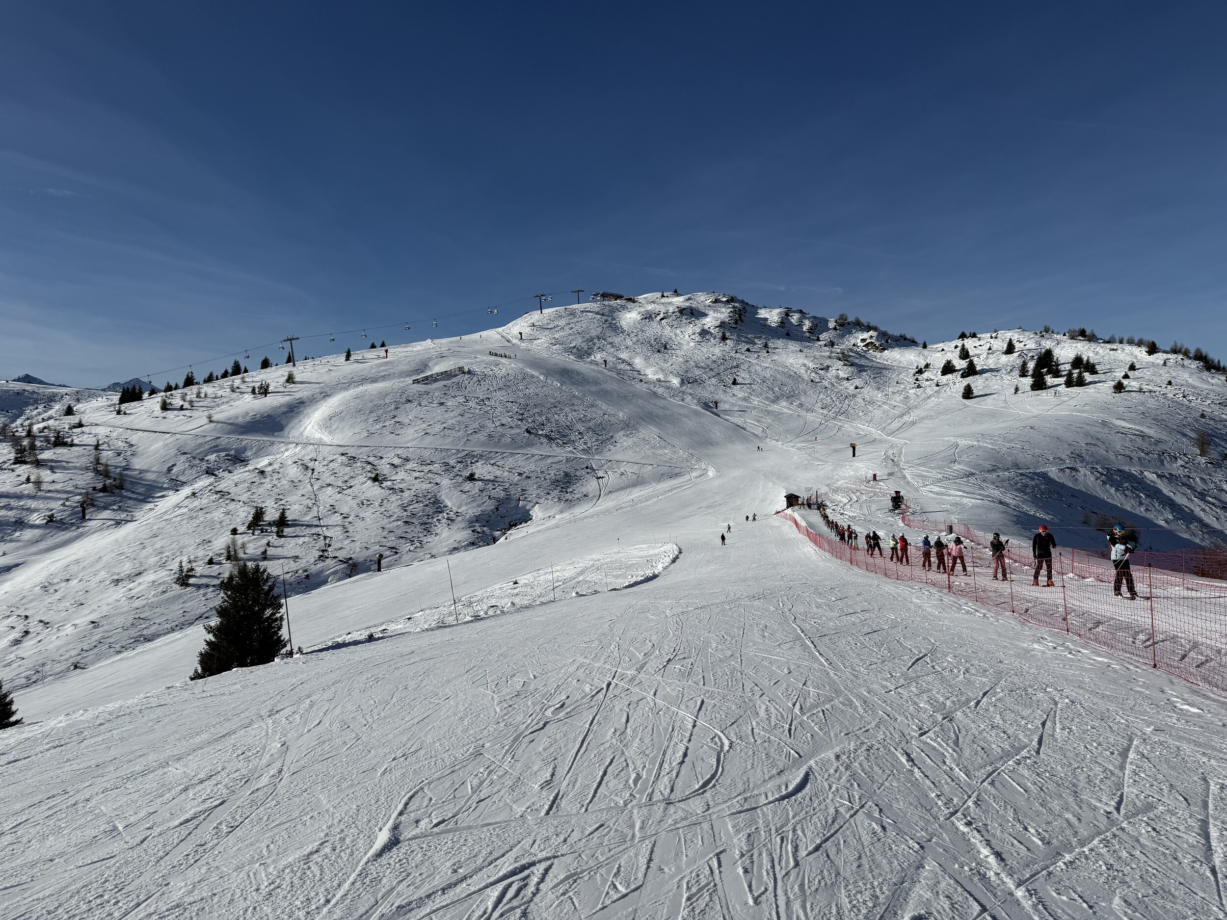 Gute Verhältnisse aber viel los auf den Pisten. Keine Wartezeiten an den Liften.