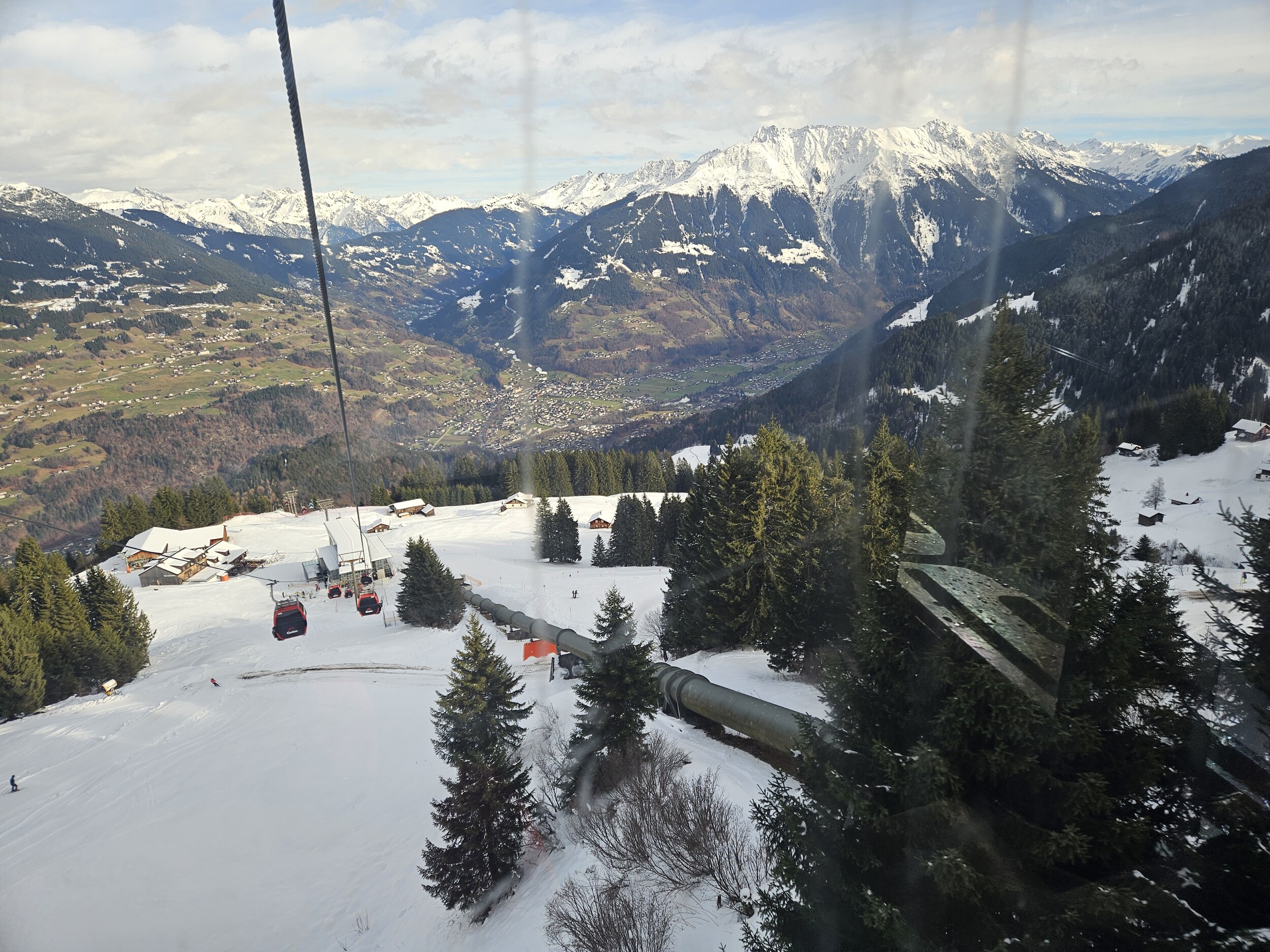 Fast wie geplant verließ mein Auto um 8:15 die Garage und nach einem Stop in Hörbranz war ich um kurz vor 13 Uhr an der Talstation der Golmerbahn in Vandans. Der Talschlepper läuft dank technischer Beschneiung, aber bei der Talabfahrt fehlt noch einiges und die Temperaturen helfen nächste Woche ja auch nicht.