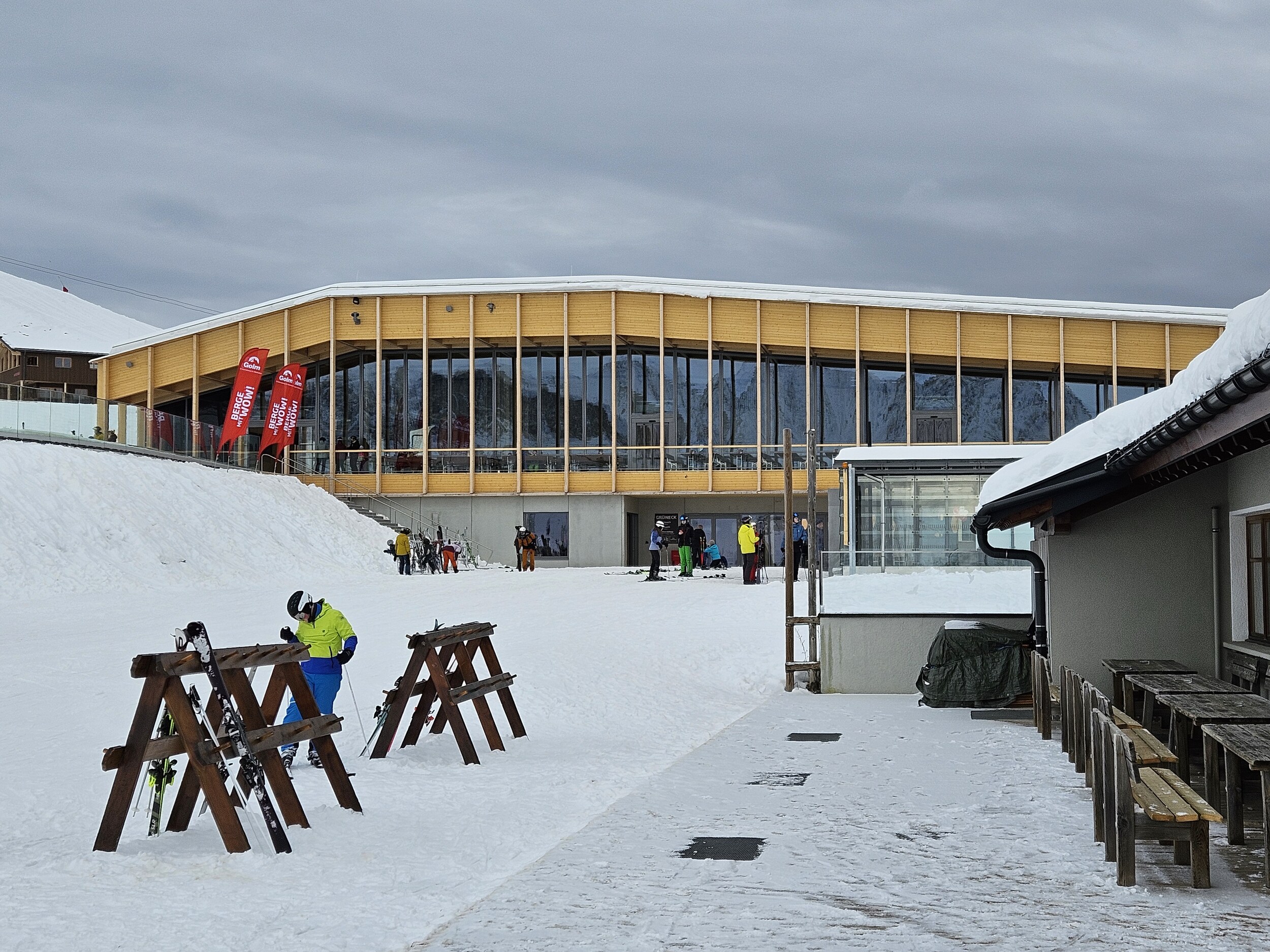 Auch aufgrund des langen Wochenendes in AT war dann doch recht schnell viel Betrieb. Und aufgrund des eingeschränkten Pistenangebots, das angeblich auch wegen der Baustraße zum Grüneck deutlich unter den Erwartungen liegt, knubbelte sich alles auf dem Stück zur Rätikon-Talatation.
