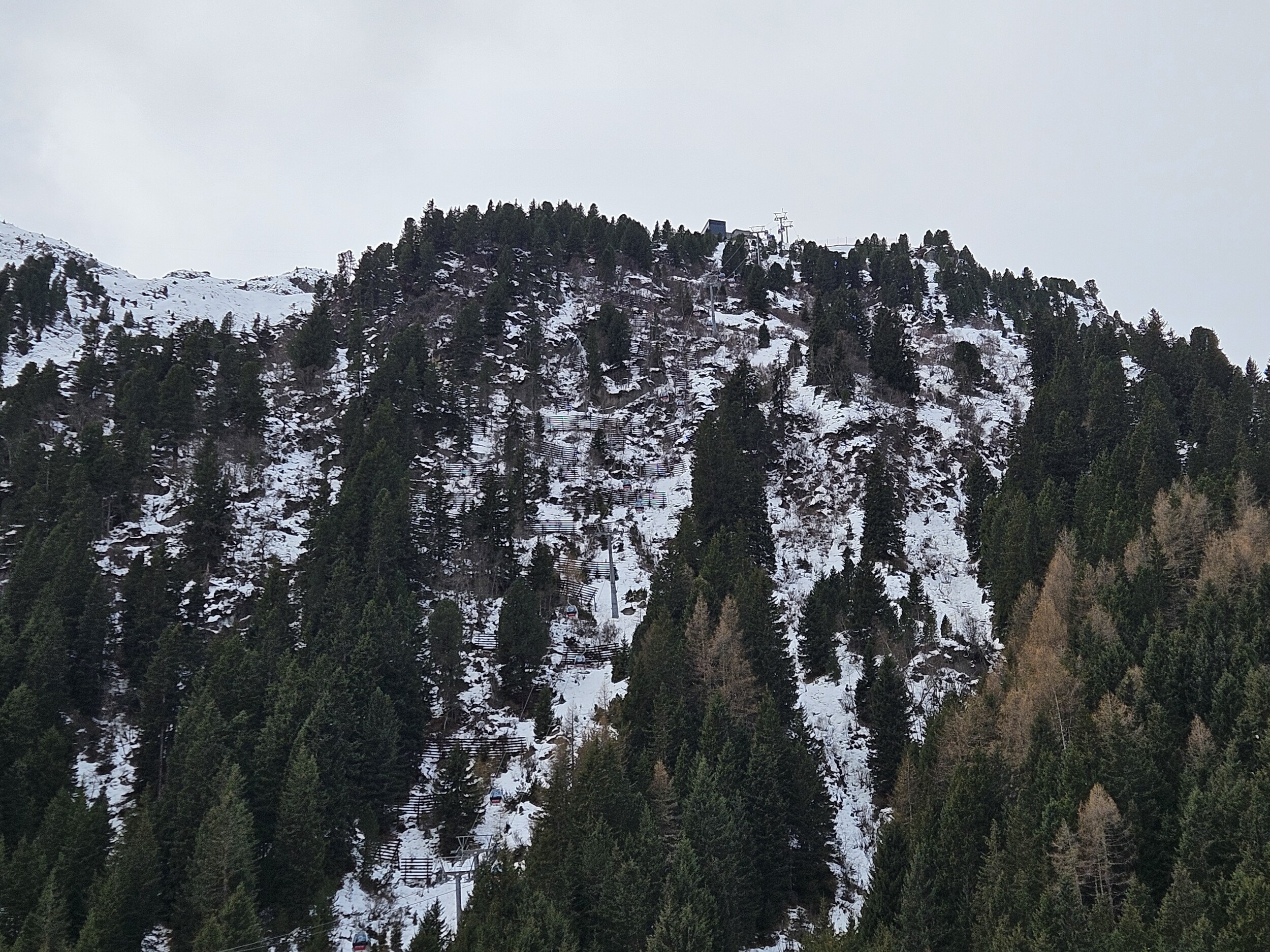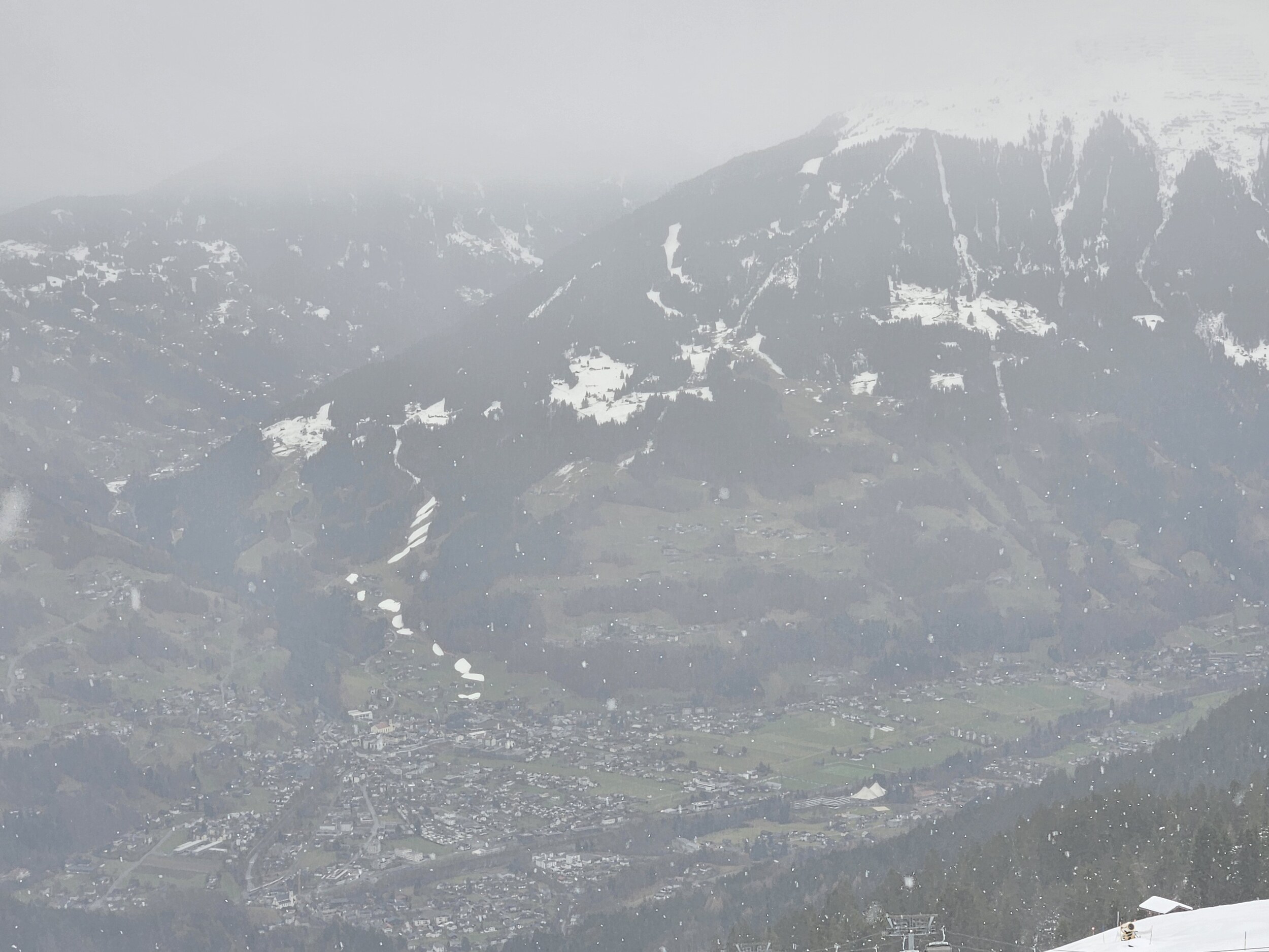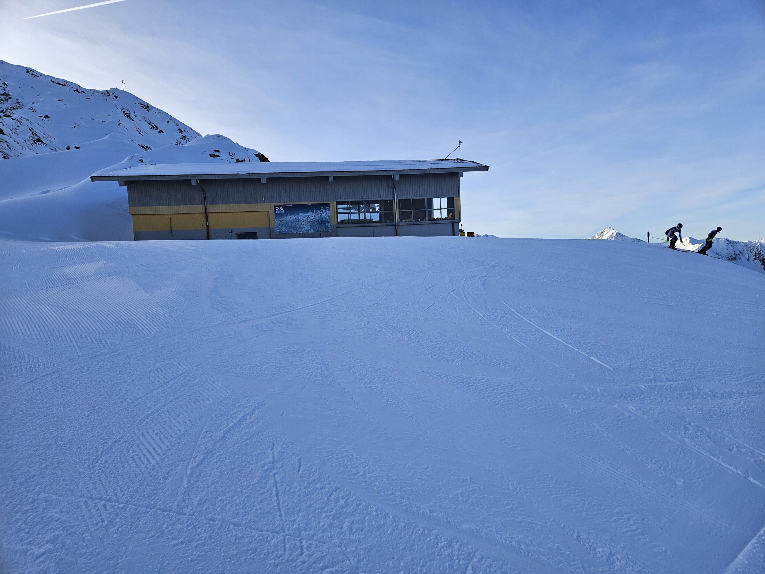 Rund um die Mittelstation bis zur Panoramabahn auch relativ viel Betrieb und teilweise seifiger Schnee oder im Wechsel abgerutscht oder körnig/knollig. Auch die Talabfahrt nicht so genial, wie am Dienstag, aber bei wenig Verkehr noch brauchbar. Es braucht Neuschnee oder Schneifenster, sonst wird das in der Saison kritisch