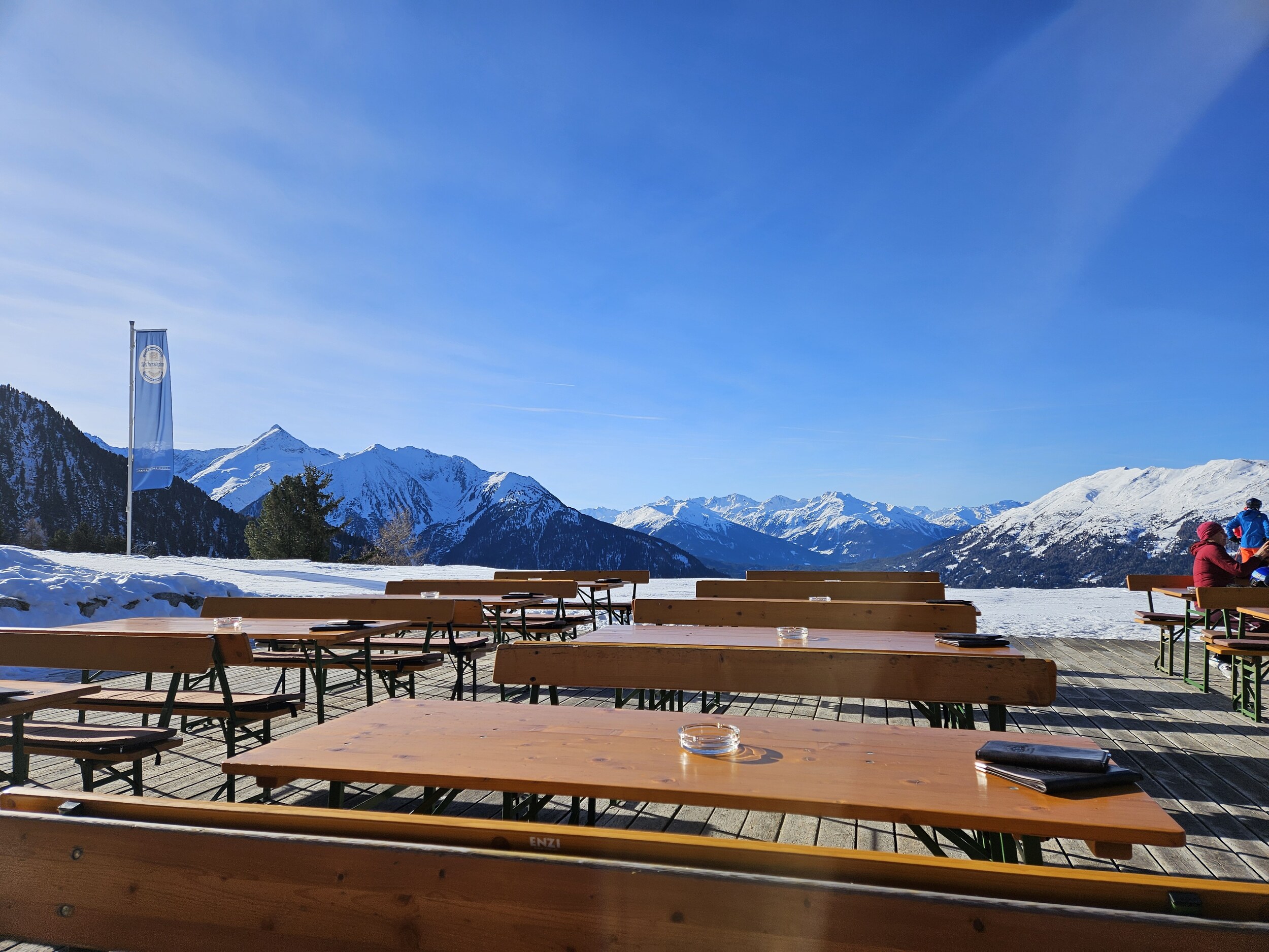 Nach zwischenzeitlicher Pause auf der Tanzalm beschloss ich den Tag in der Schirmbar an der Mittelstation und verzichtete auf die letzte Talabfahrt. Neben der Mischung aus Haufen und glatten Stellen, die meine Ski wahrscheinlich noch bewältigt hätten, hatte ich nämlich noch das "Sandwich-Gefühl".