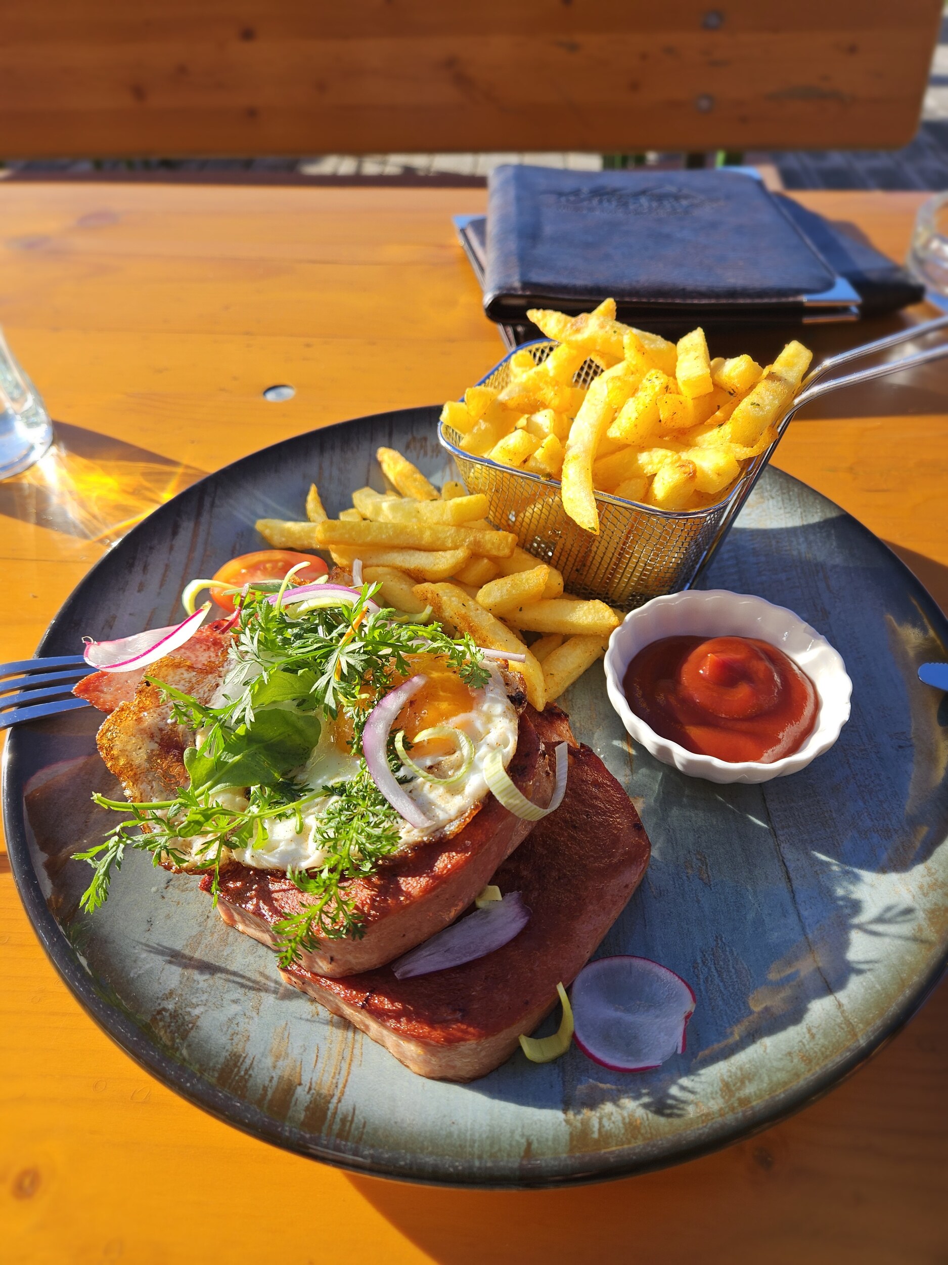 Essen gab es auch noch: Rindsbrühe mit Leberspätzle, Salat, Piccata Milanese und Minikaiserschmarrn. Dazu Riesling Smaragd Silberdistel vom Tegernseerhof in Dürnstein mit 13,5 Vol% aus 2023. War erneut lecker.