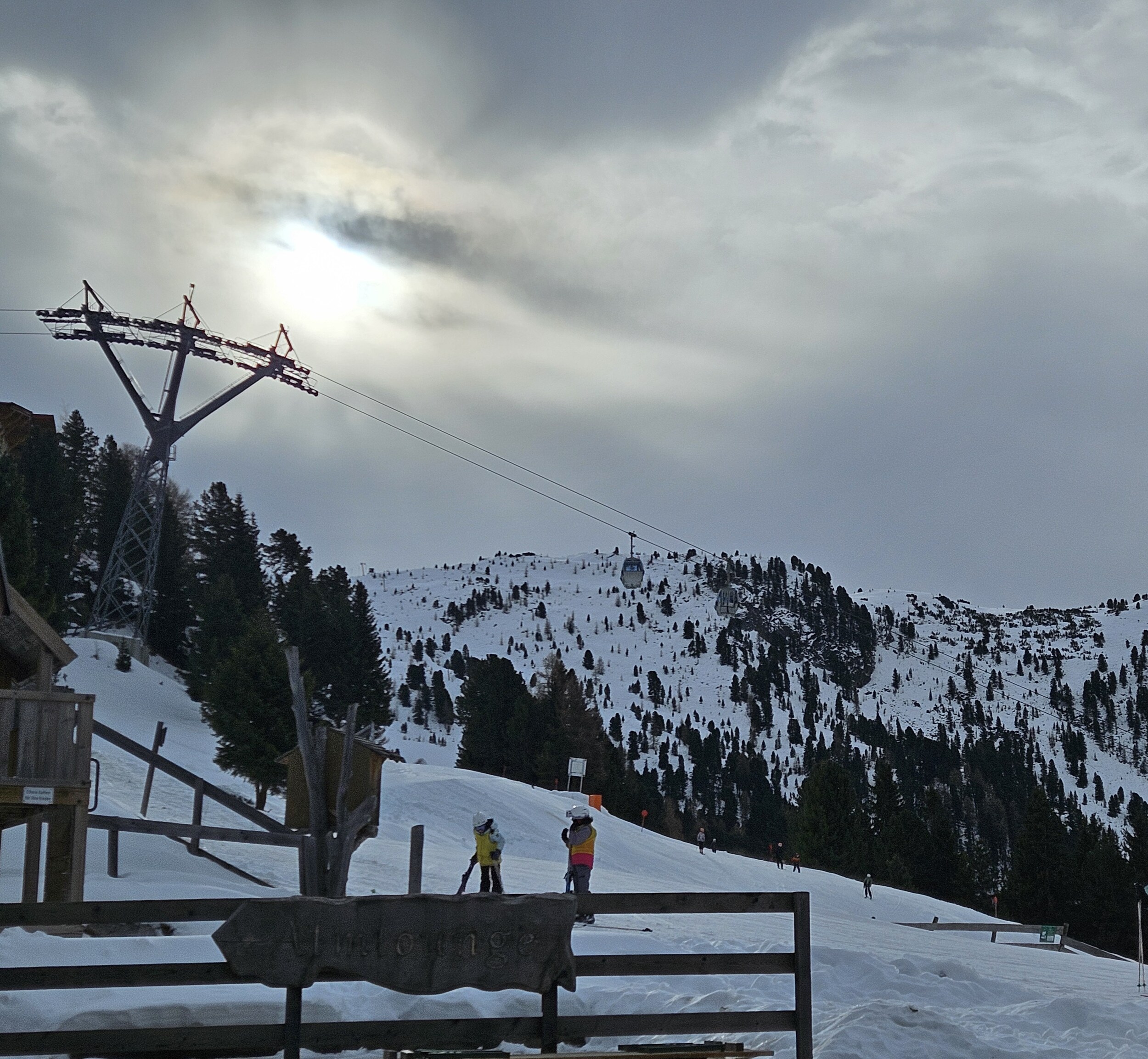 Die Pisten oben (vor allem die roten 5 und 9) waren besser beisammen als am Dienstag, aber blau waren einige Skigruppen unterwegs. Sicht teils diffus, womit ich immer kämpfe. Wenn die Sonne durchkam ging es sofort besser.
