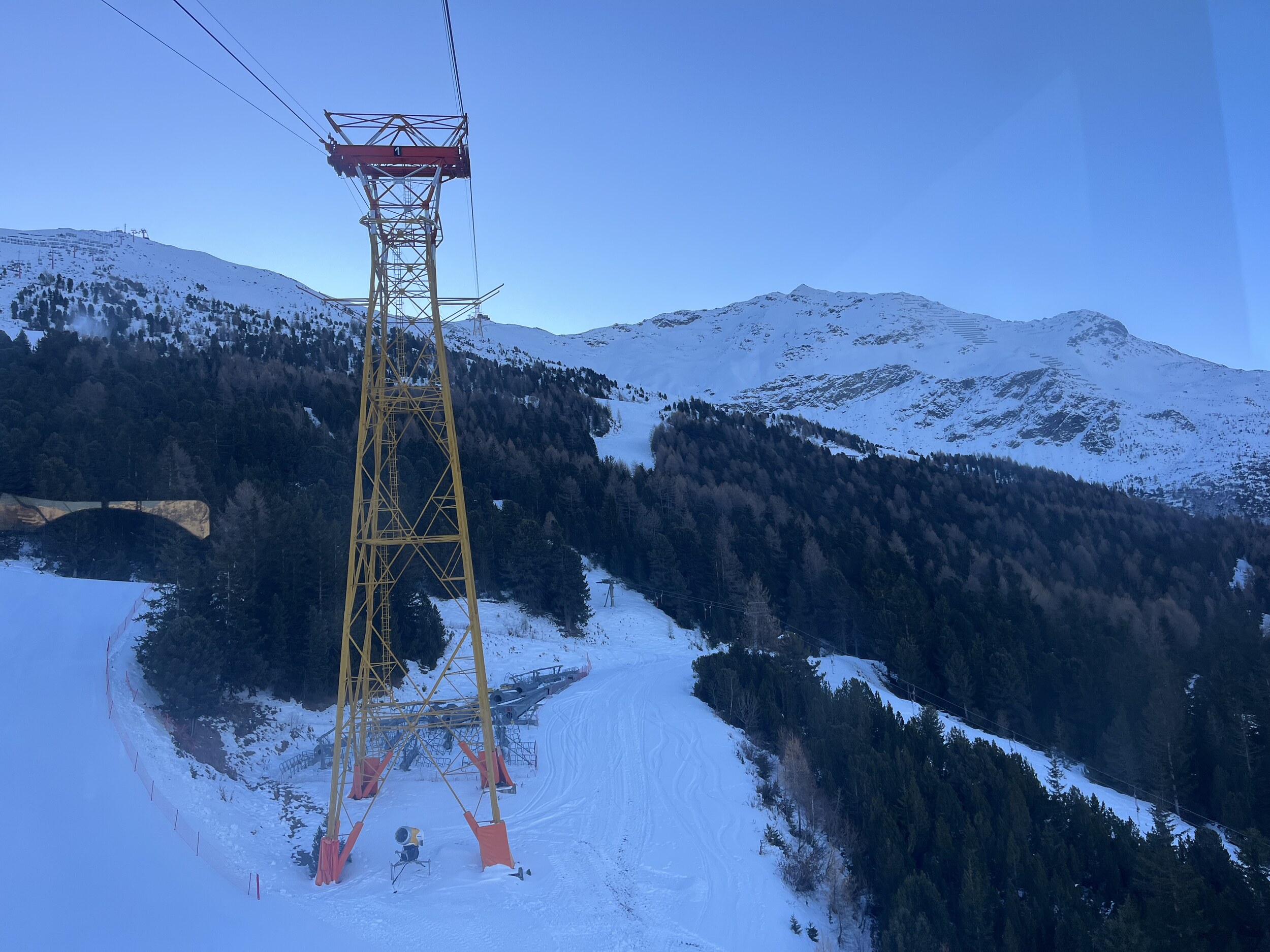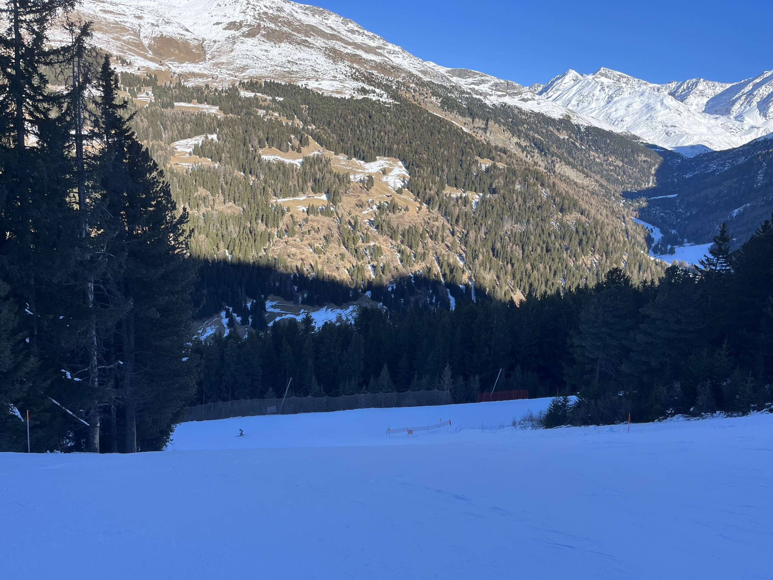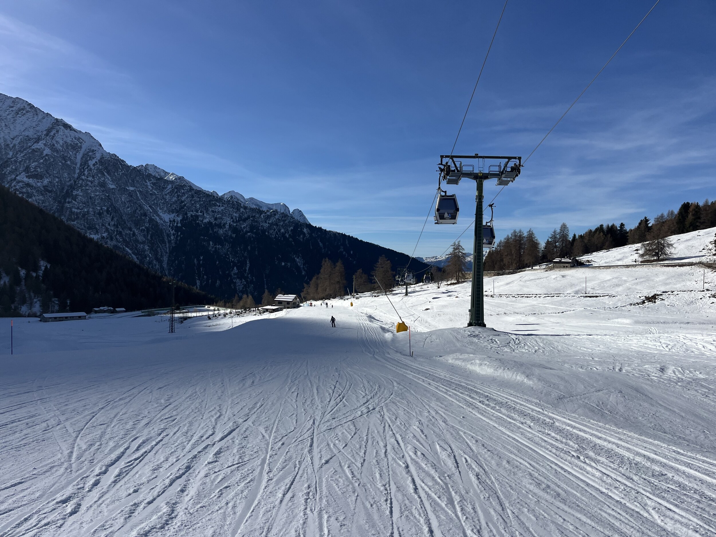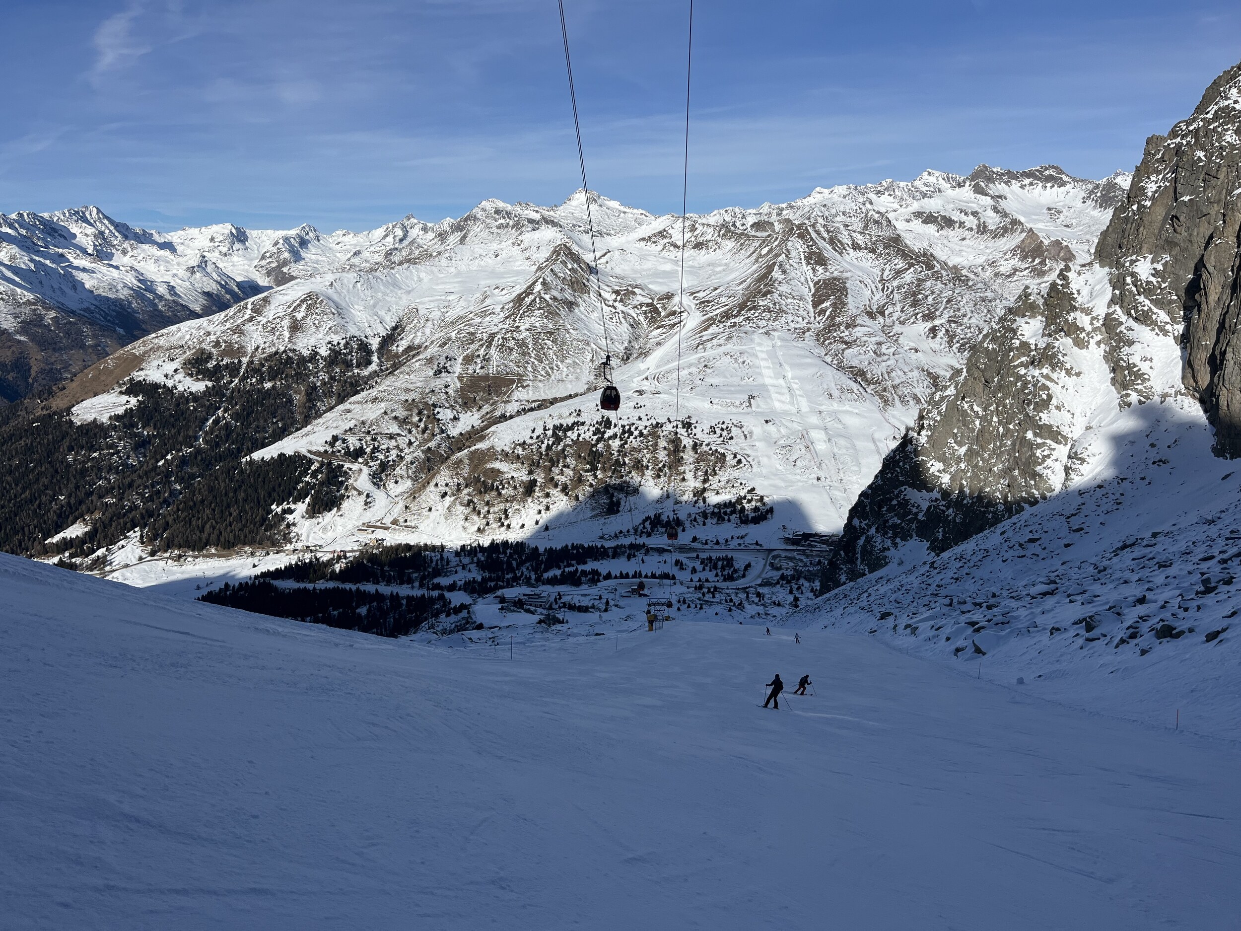 Leider sind die rote Piste und die DSB noch nicht offen, also EUB talwärts: