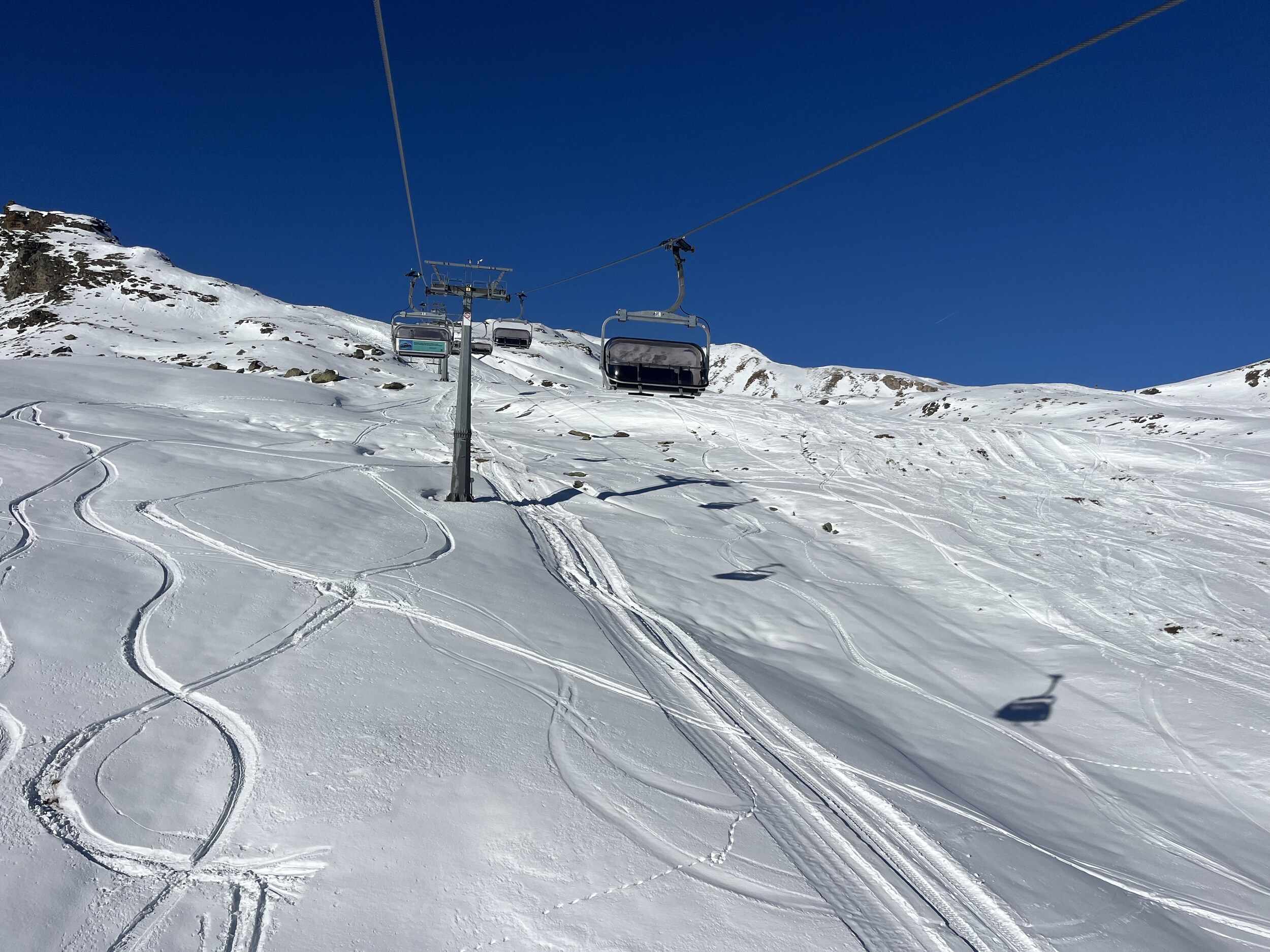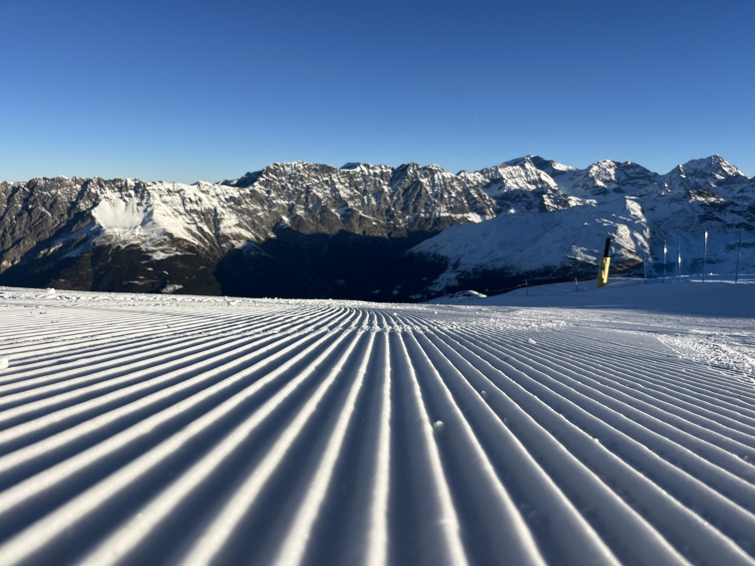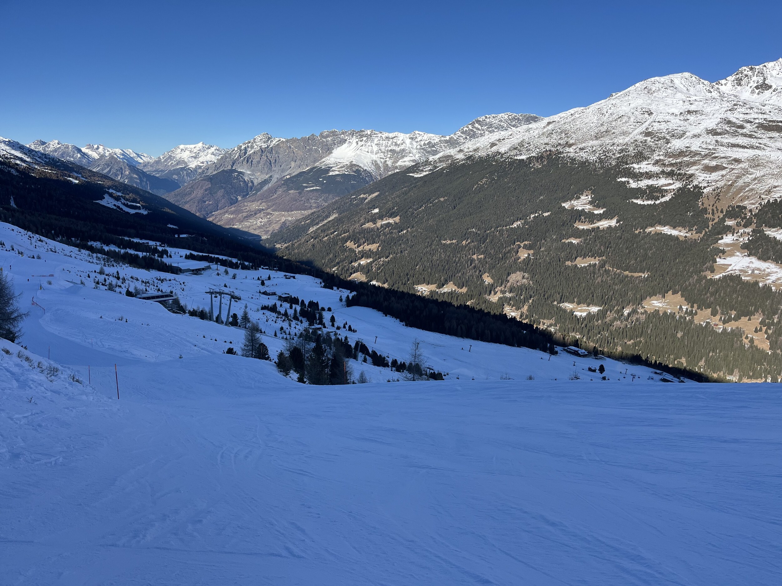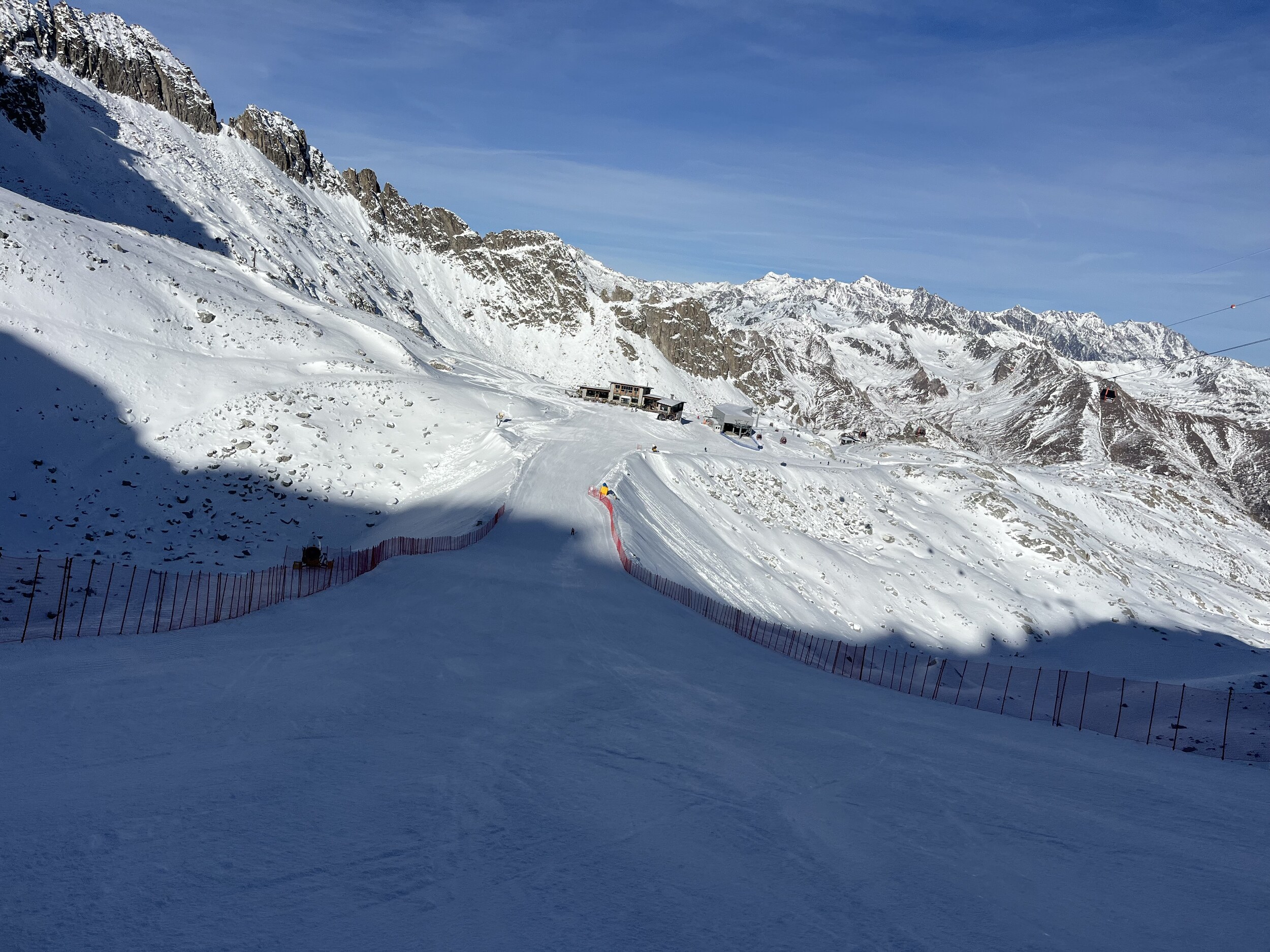 Leider sind die rote Piste und die DSB noch nicht offen, also EUB talwärts: