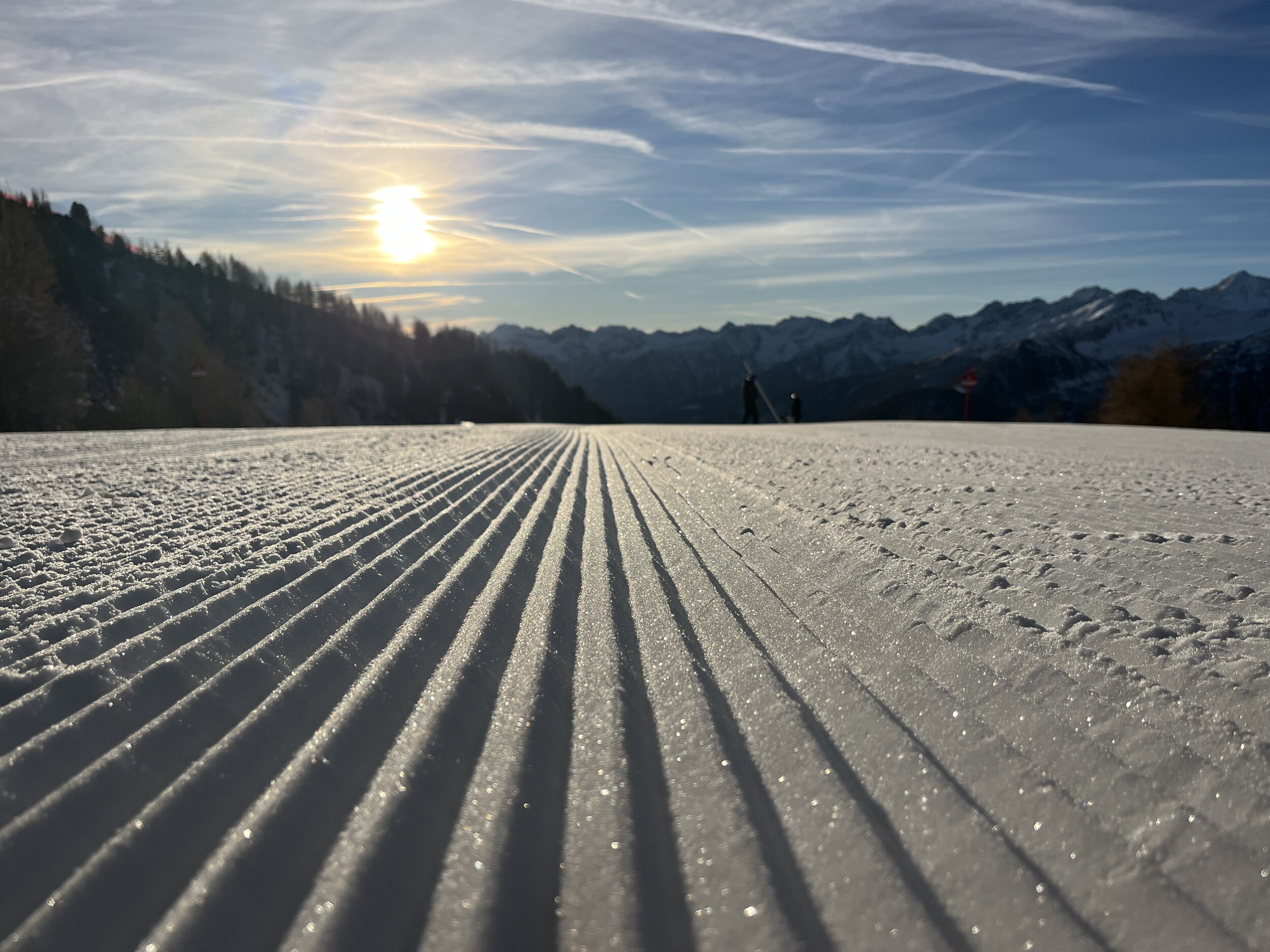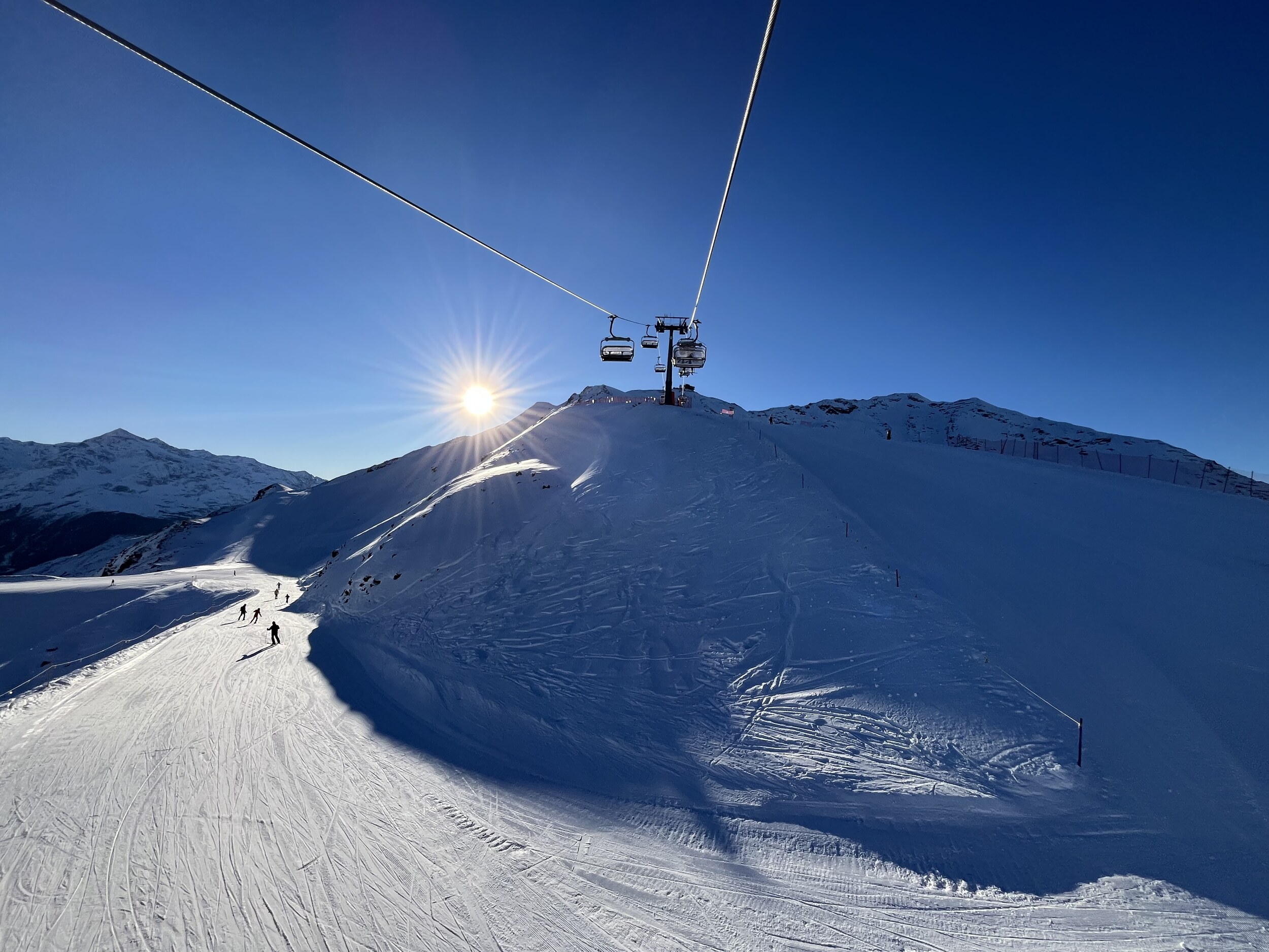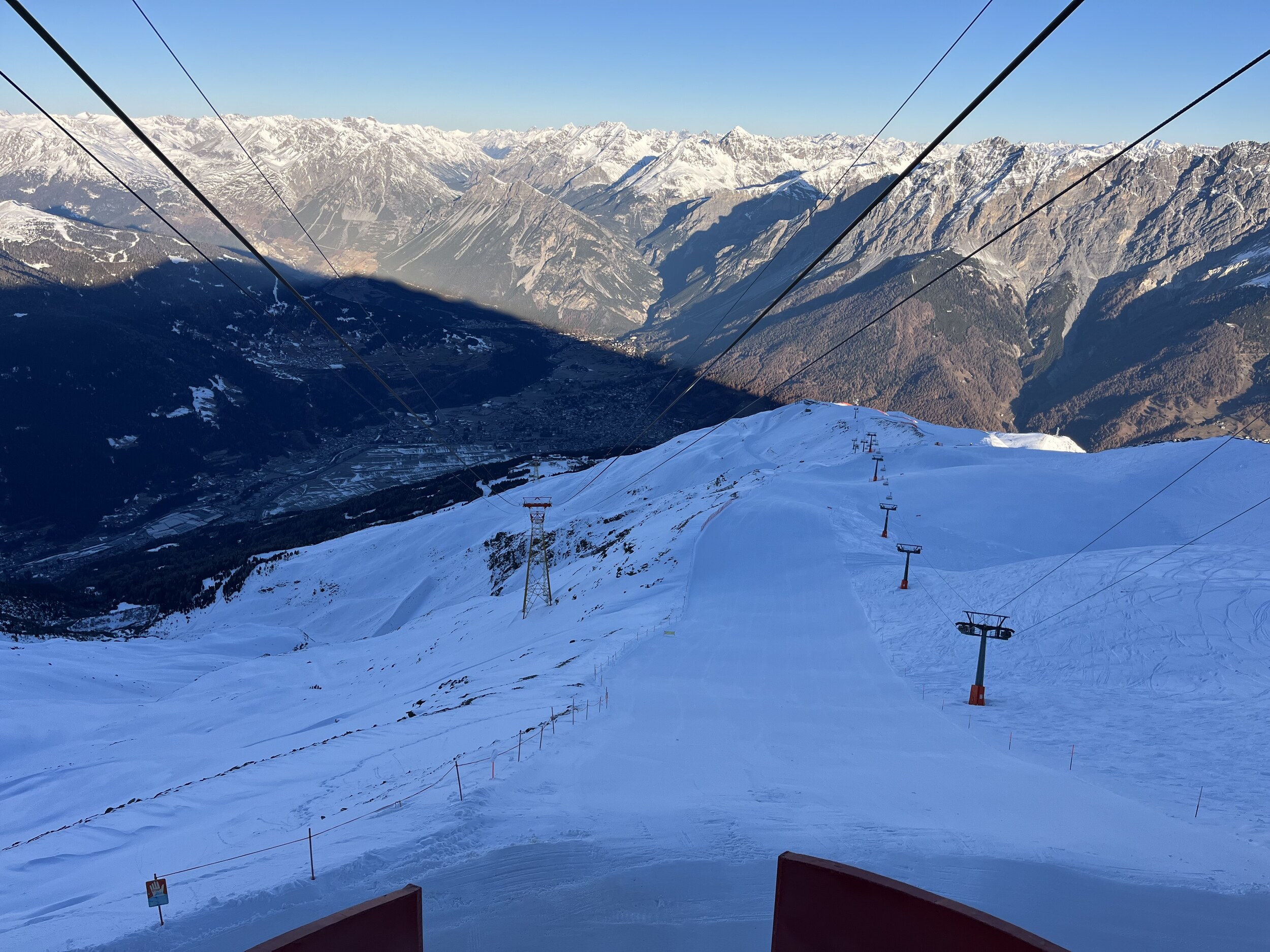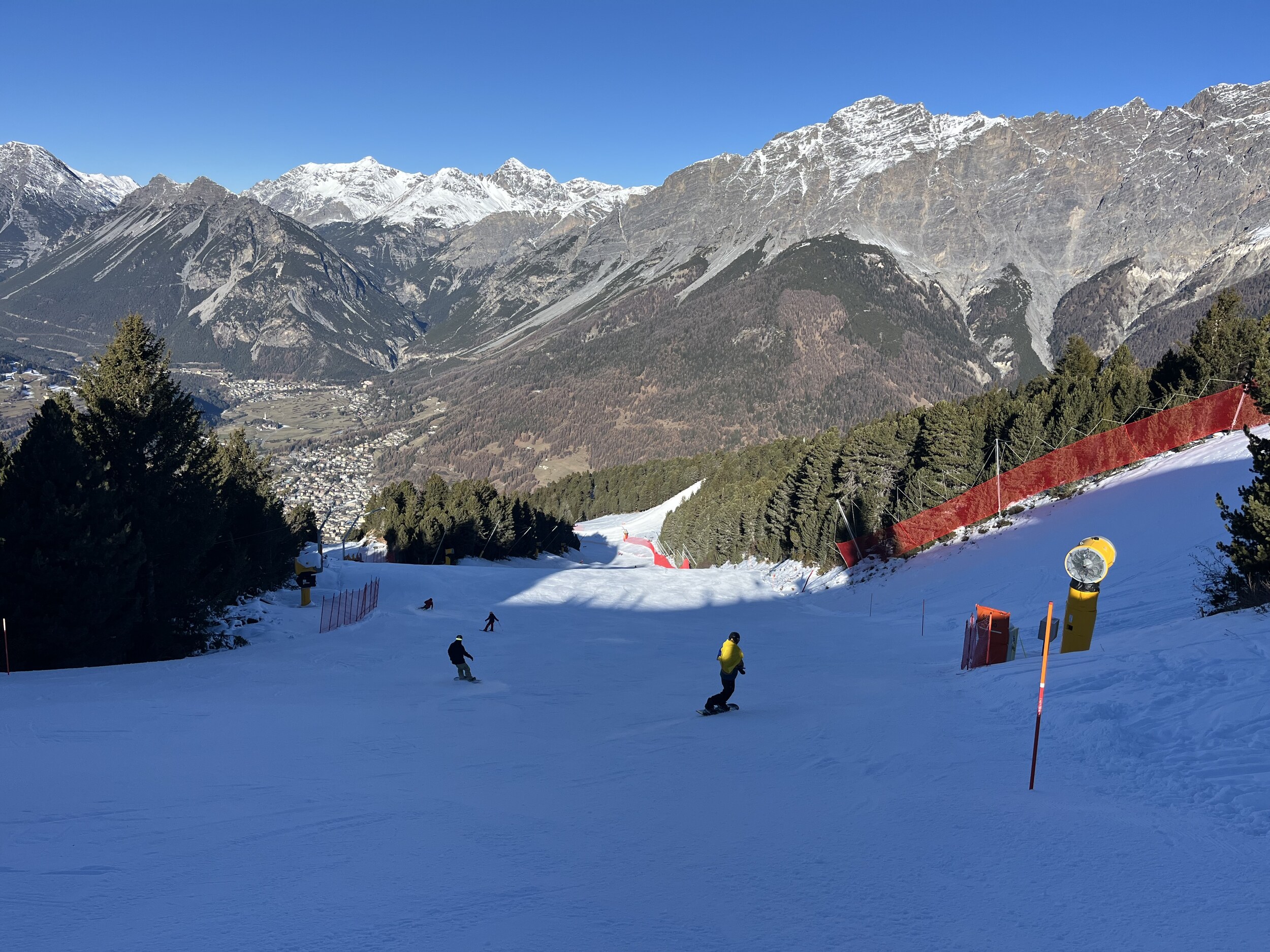 Leider sind die rote Piste und die DSB noch nicht offen, also EUB talwärts: