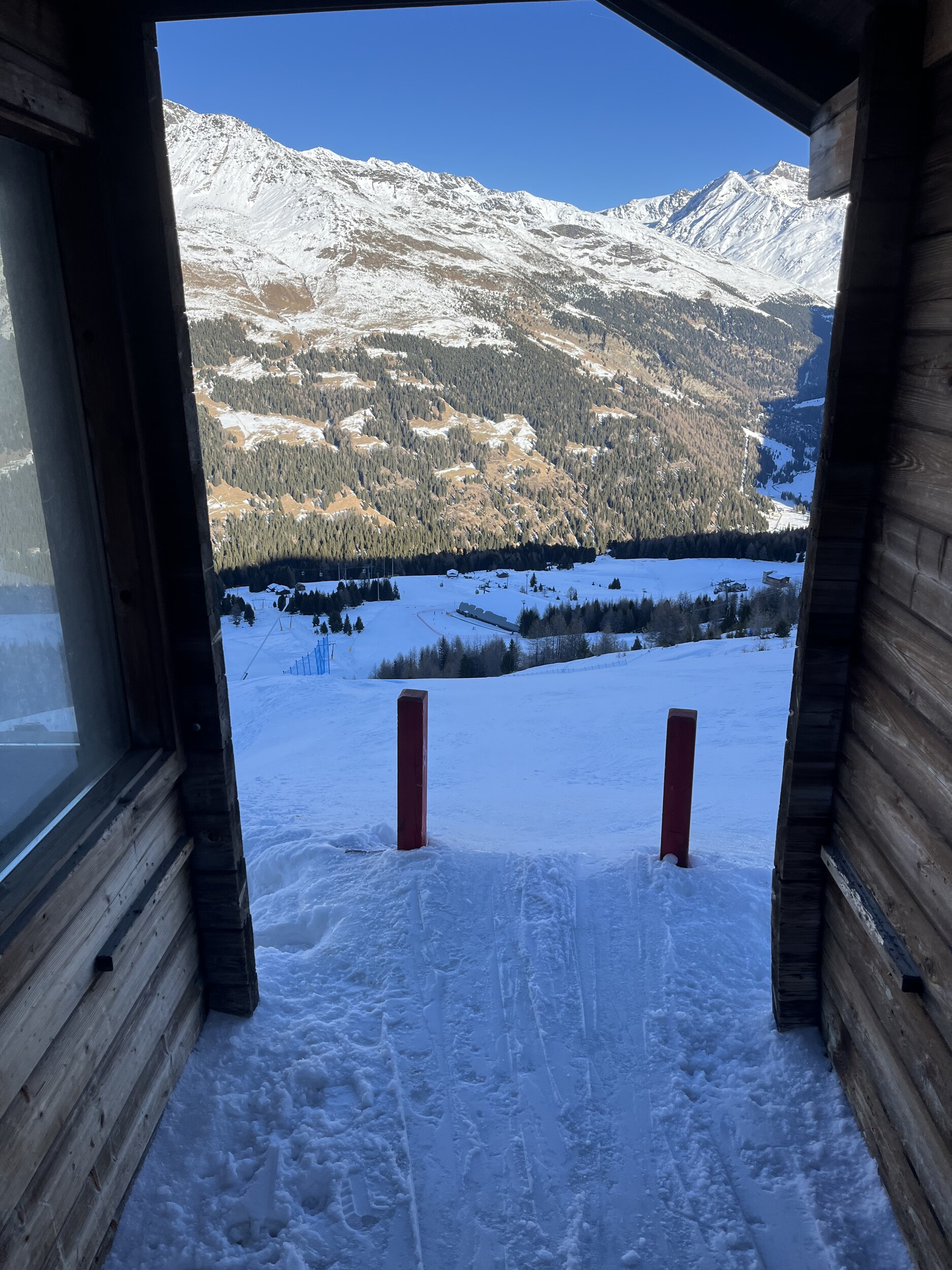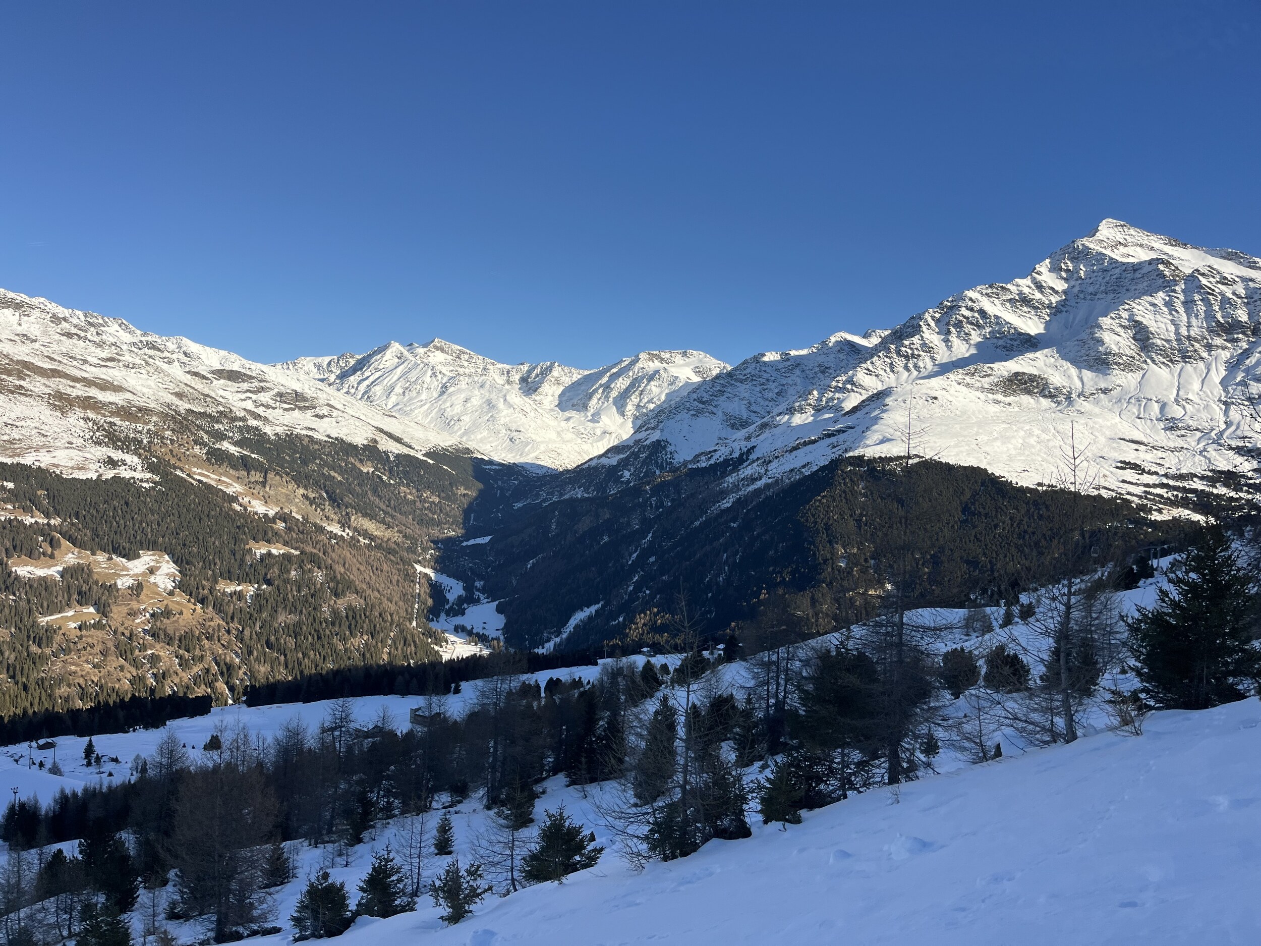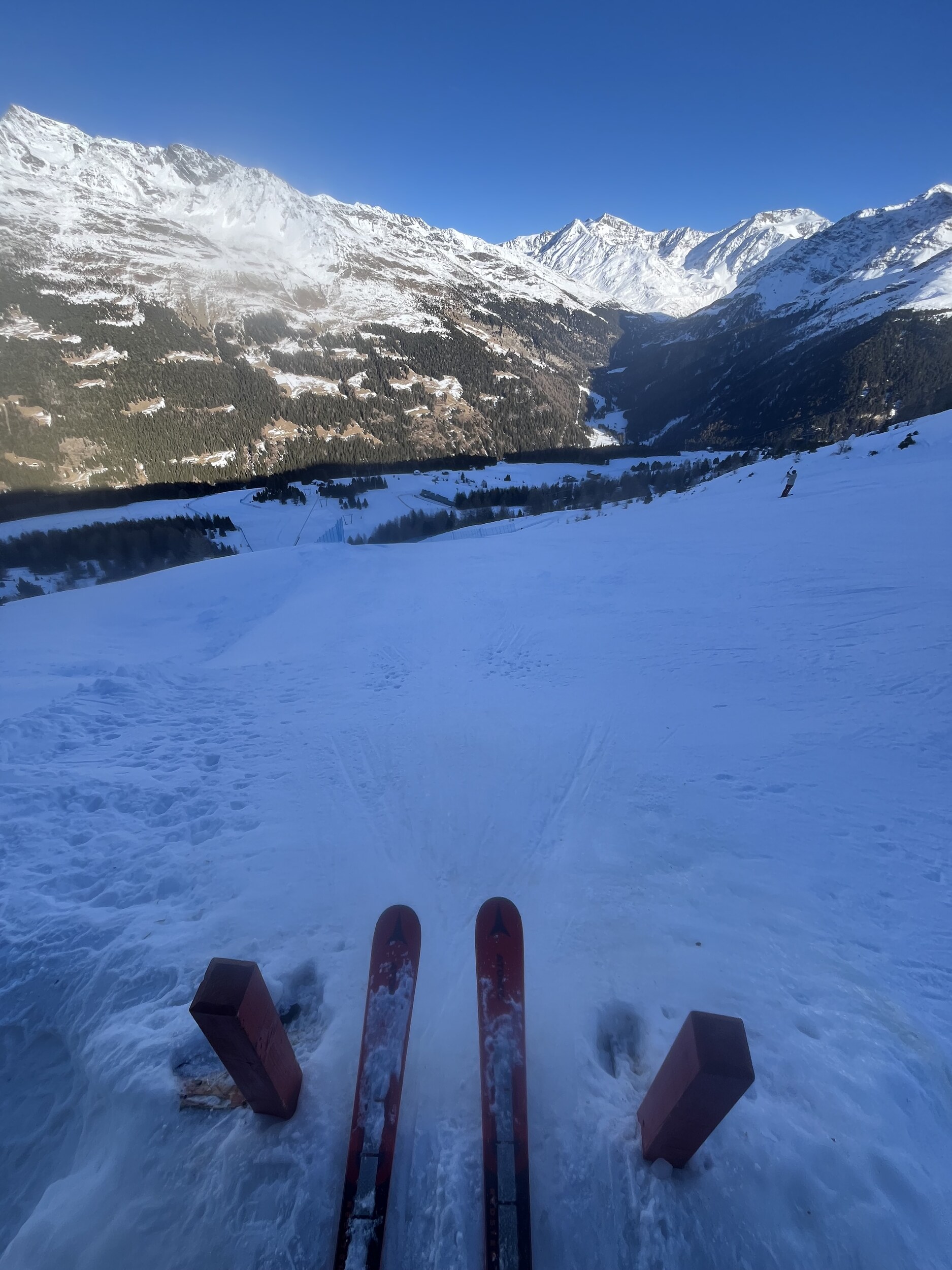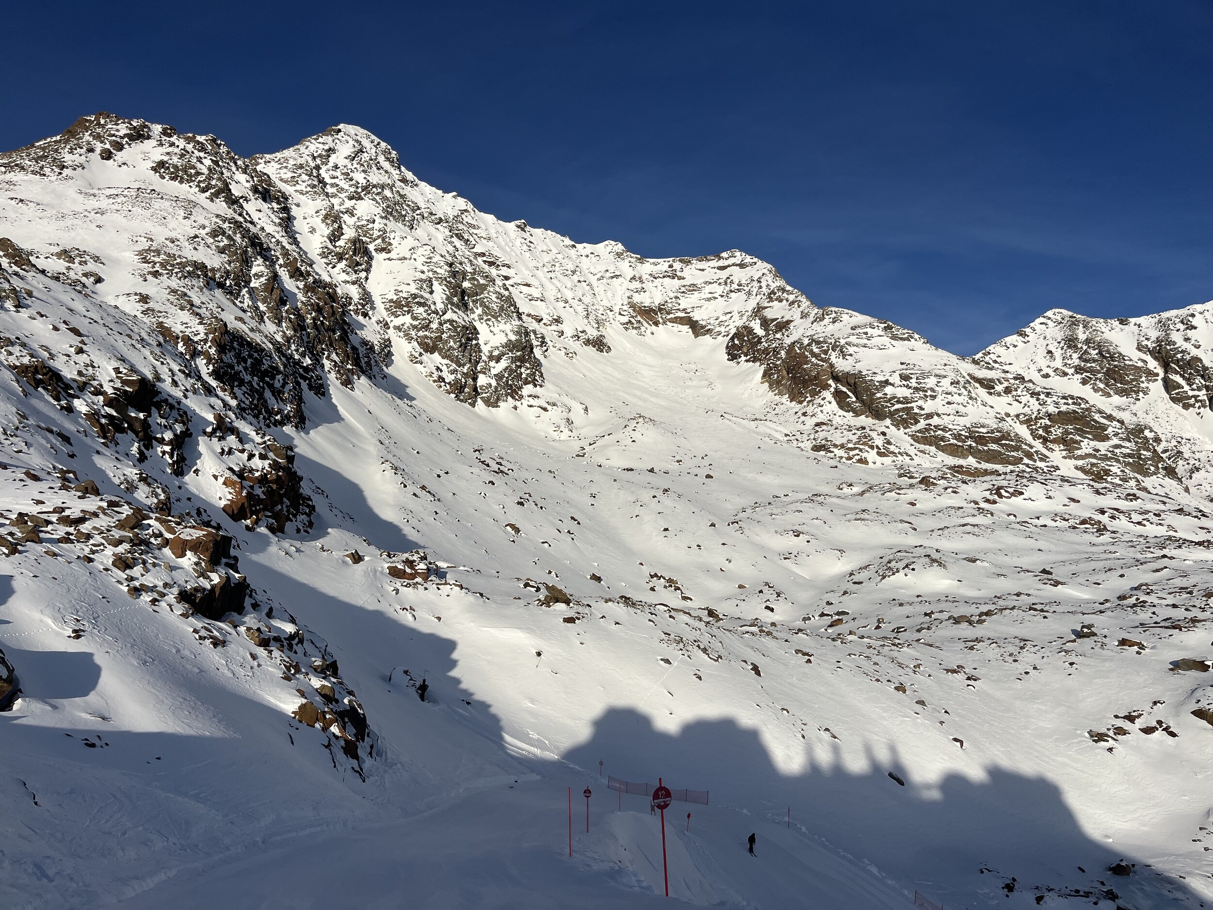 Leider sind die rote Piste und die DSB noch nicht offen, also EUB talwärts:
