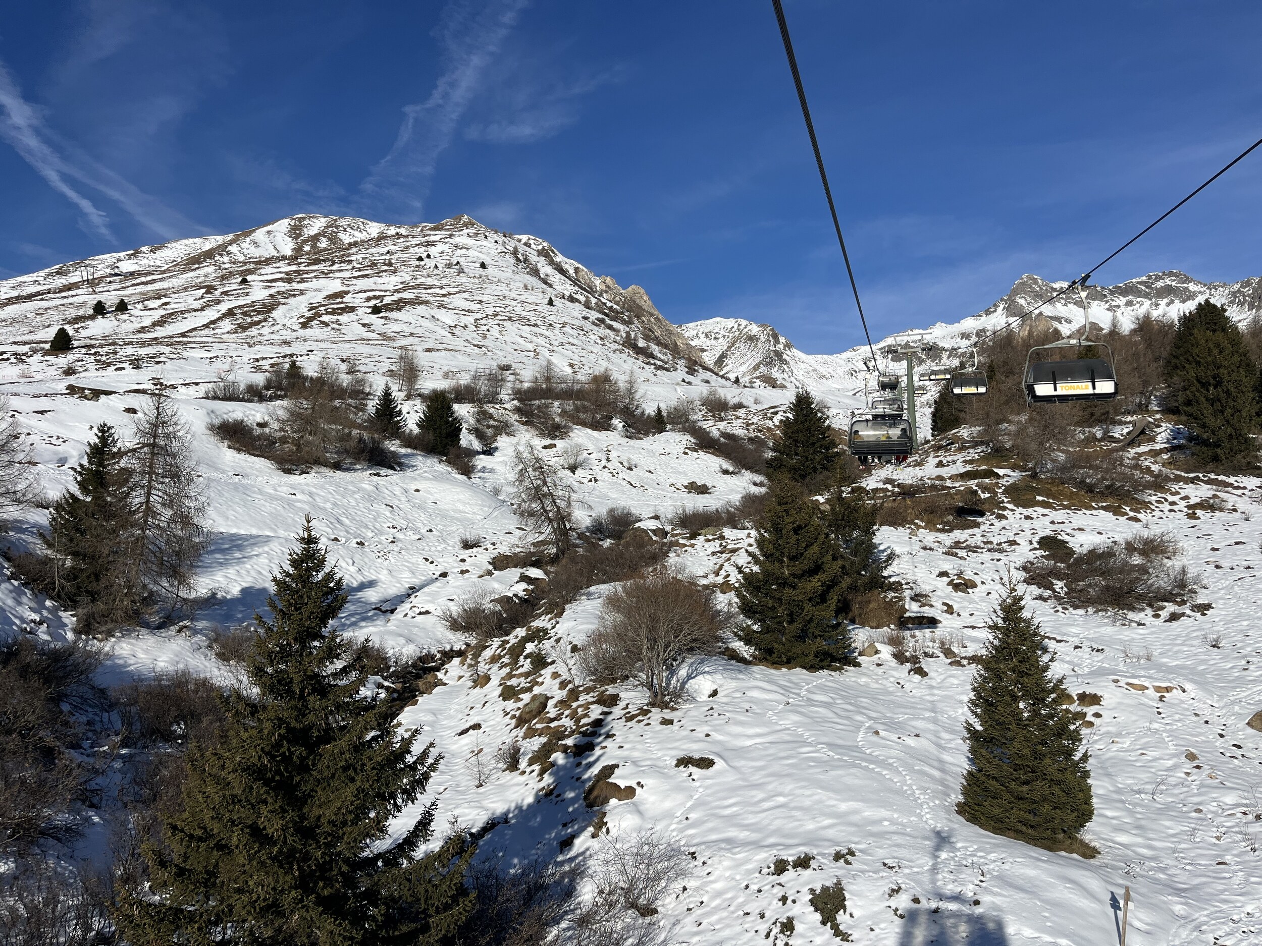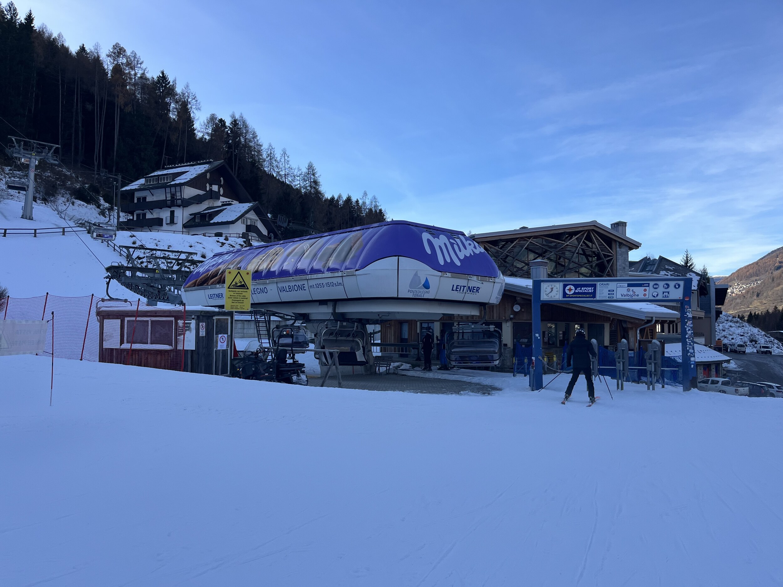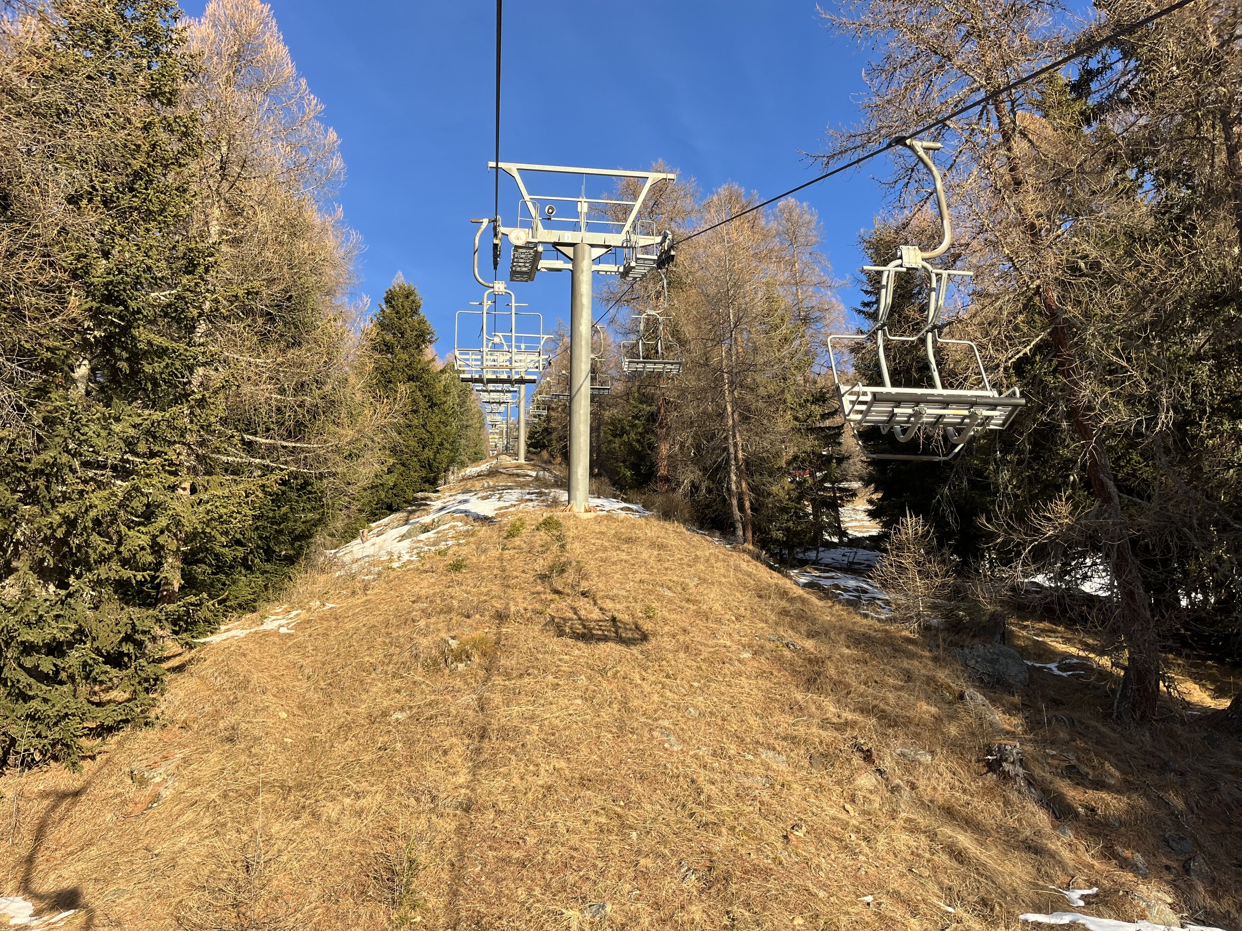 Zuerst mit dem östlichsten Lift, Valbiolo hoch. Schnee hat es hier auch kaum.
