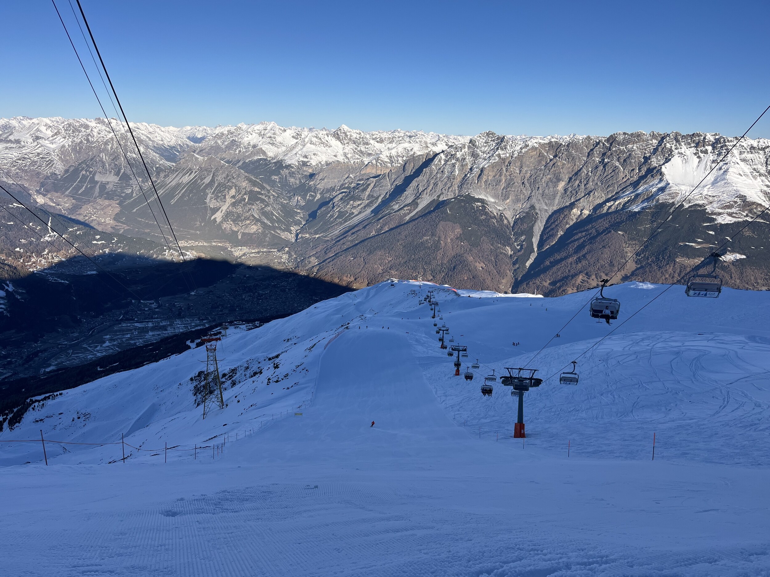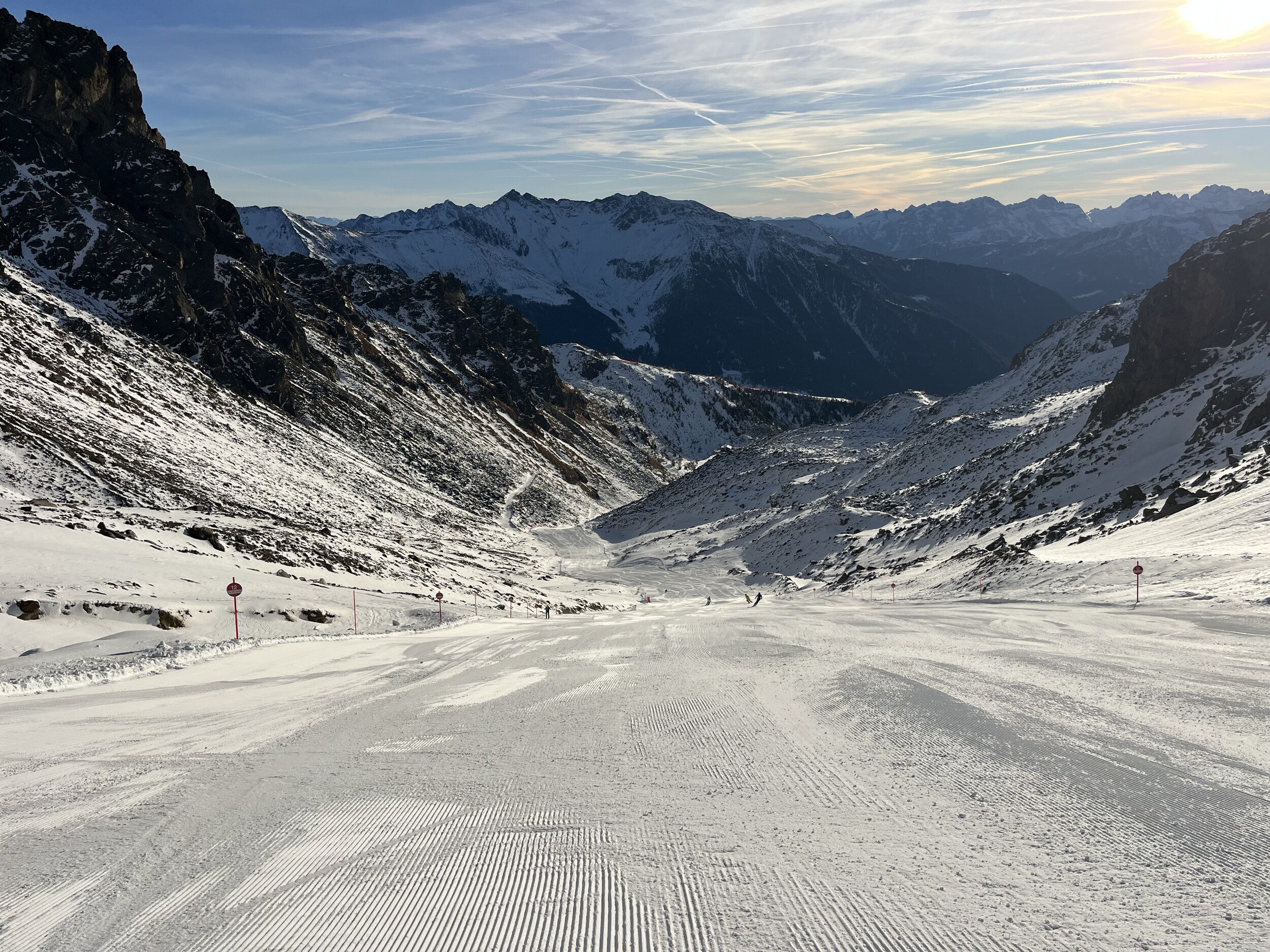 Aber die Pisten sind allesamt sehr hart. So hart wie noch nie in all diesen Tagen. Liegt es an der Lanzenbeschneiung?