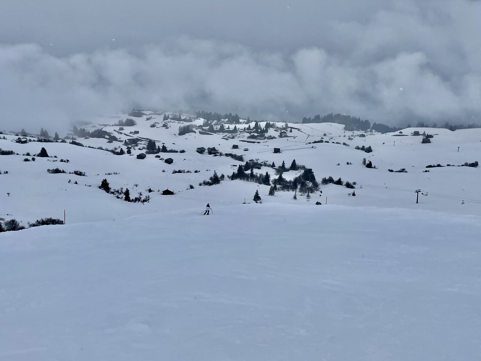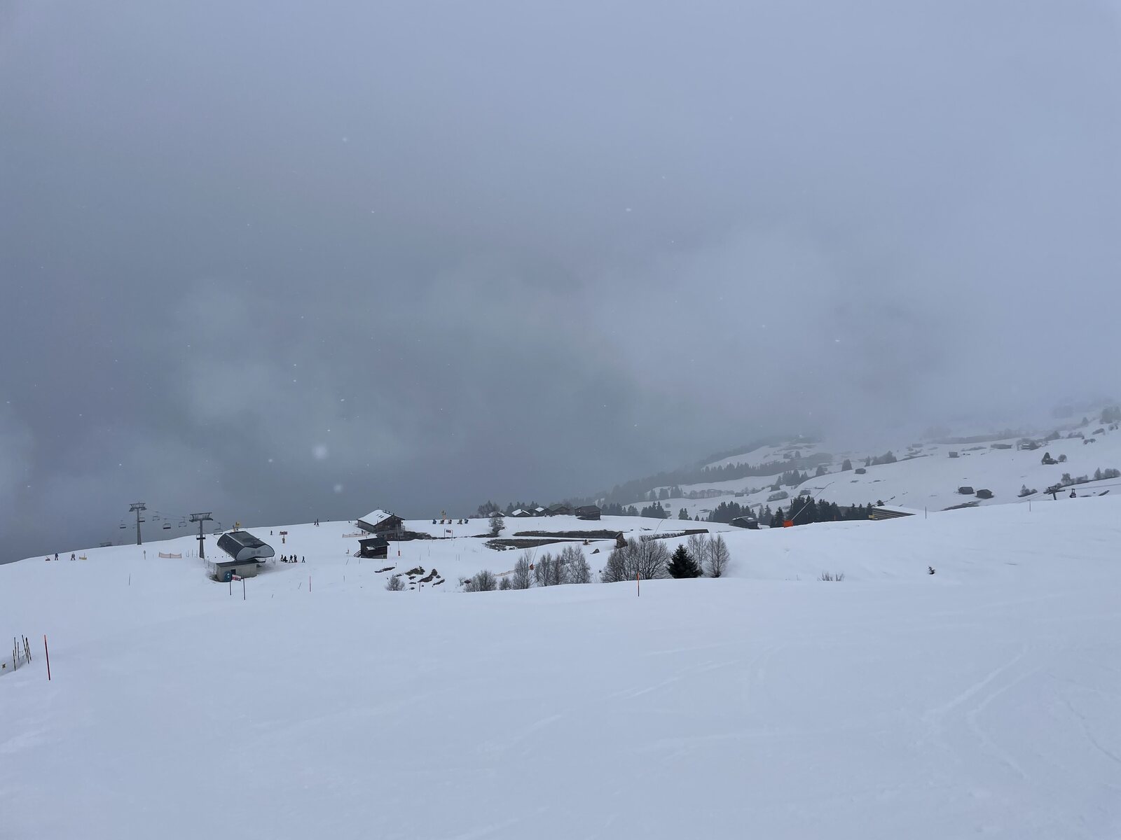 Hat recht stark weiter geschneitund oben am Piz Sezner schon gut 15cm auf der Piste.