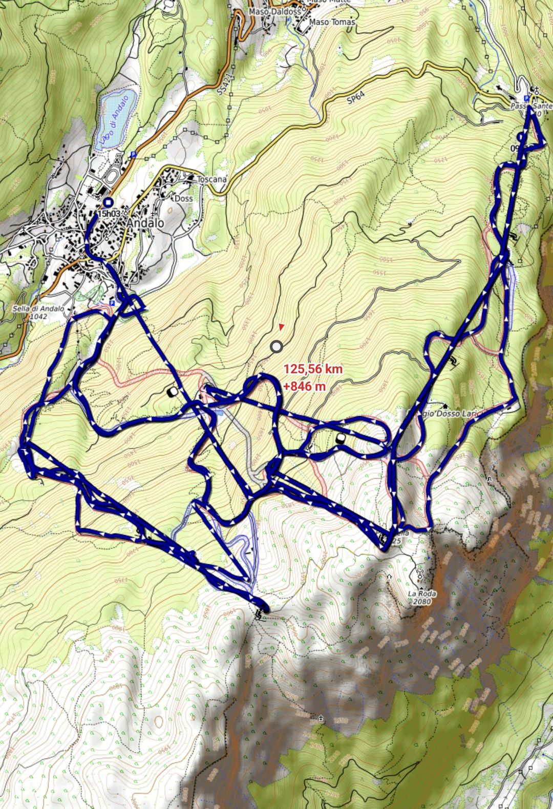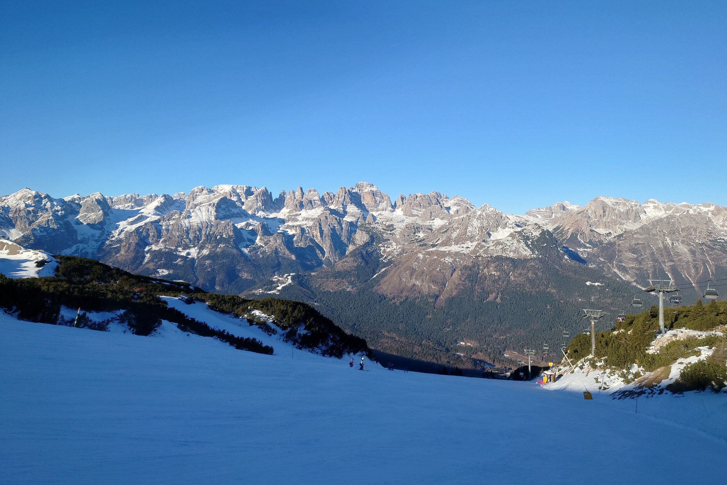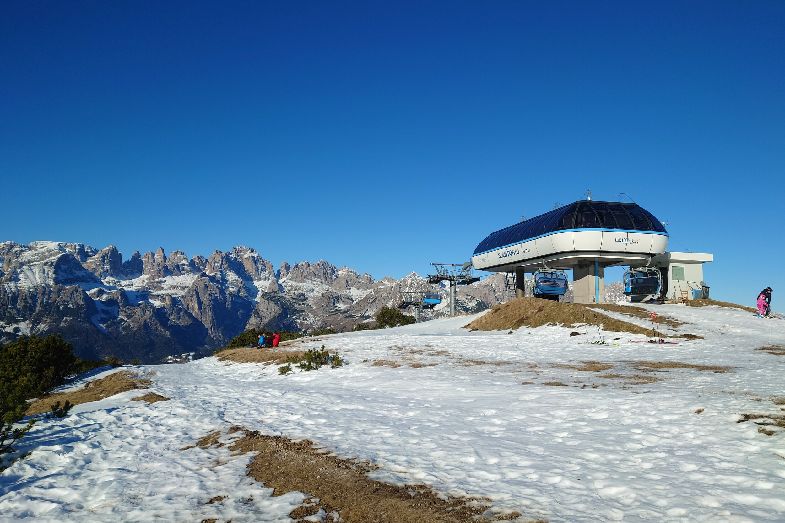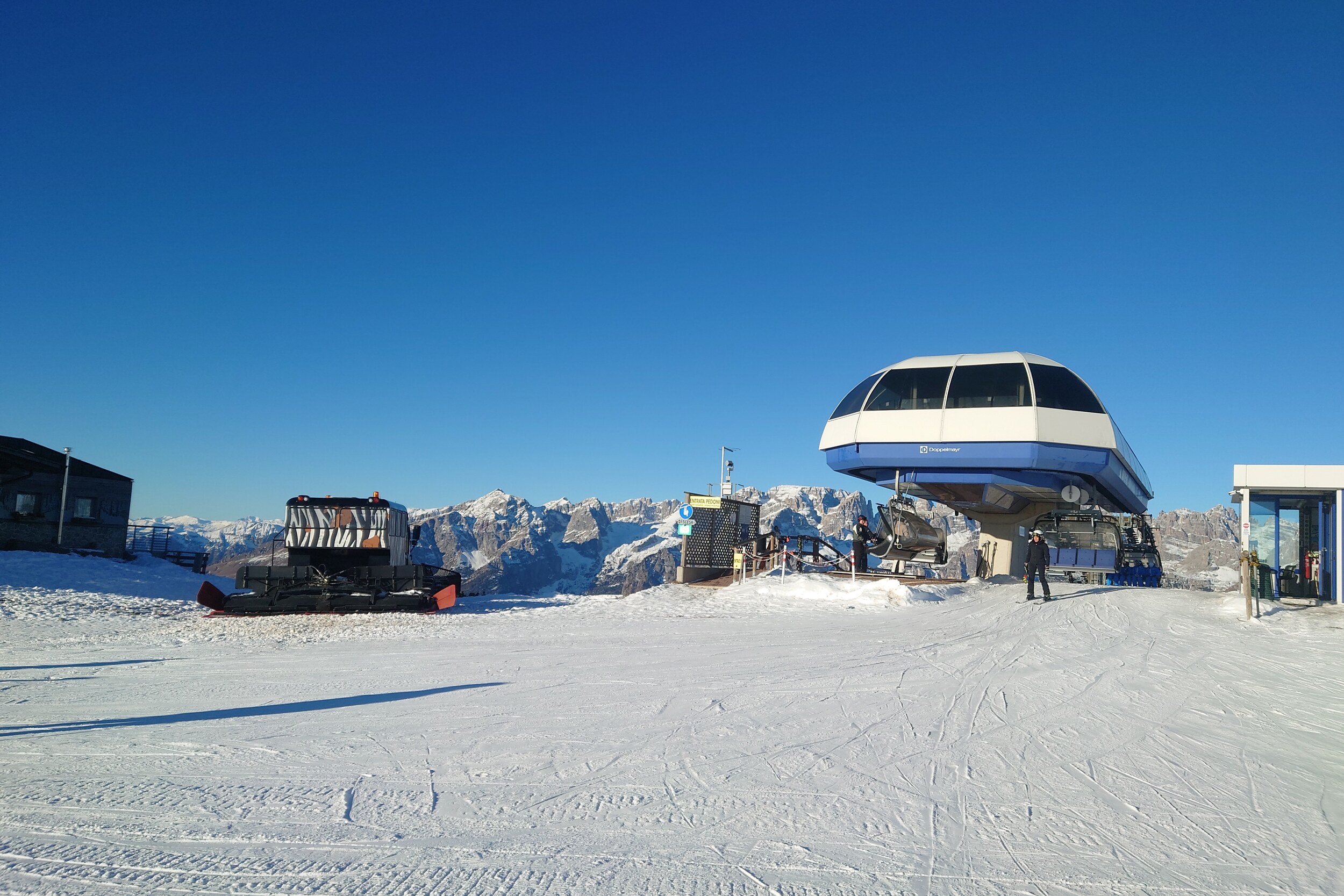 Weil die Talabfahrt zu ist (und die einzige schwarze Abfahrt wegen Renntraining gesperrt) komme ich in Plan Dosson nicht weiter und muss die EUB Doss Pelà 2 +4SB Salare Conca nehmen