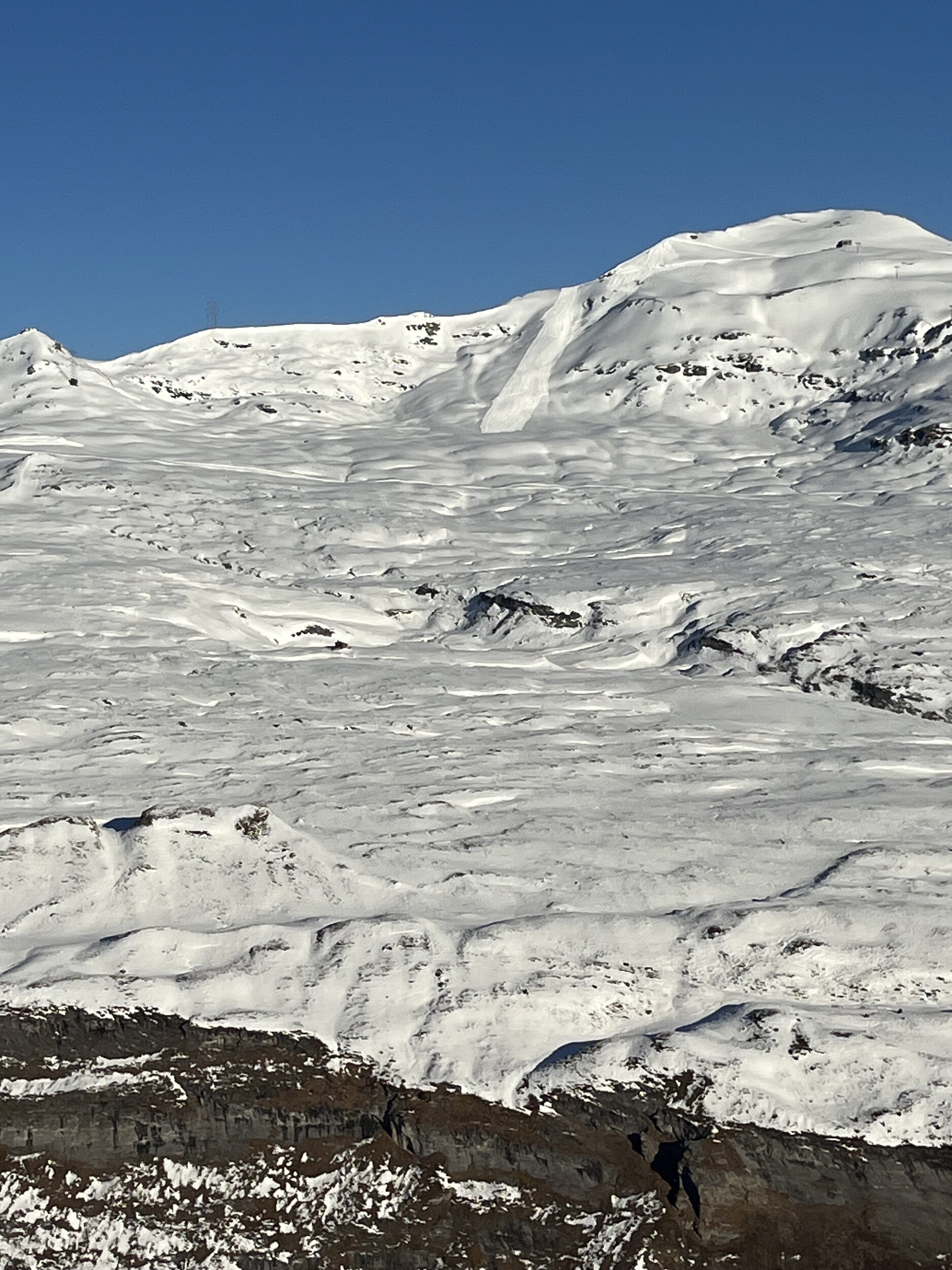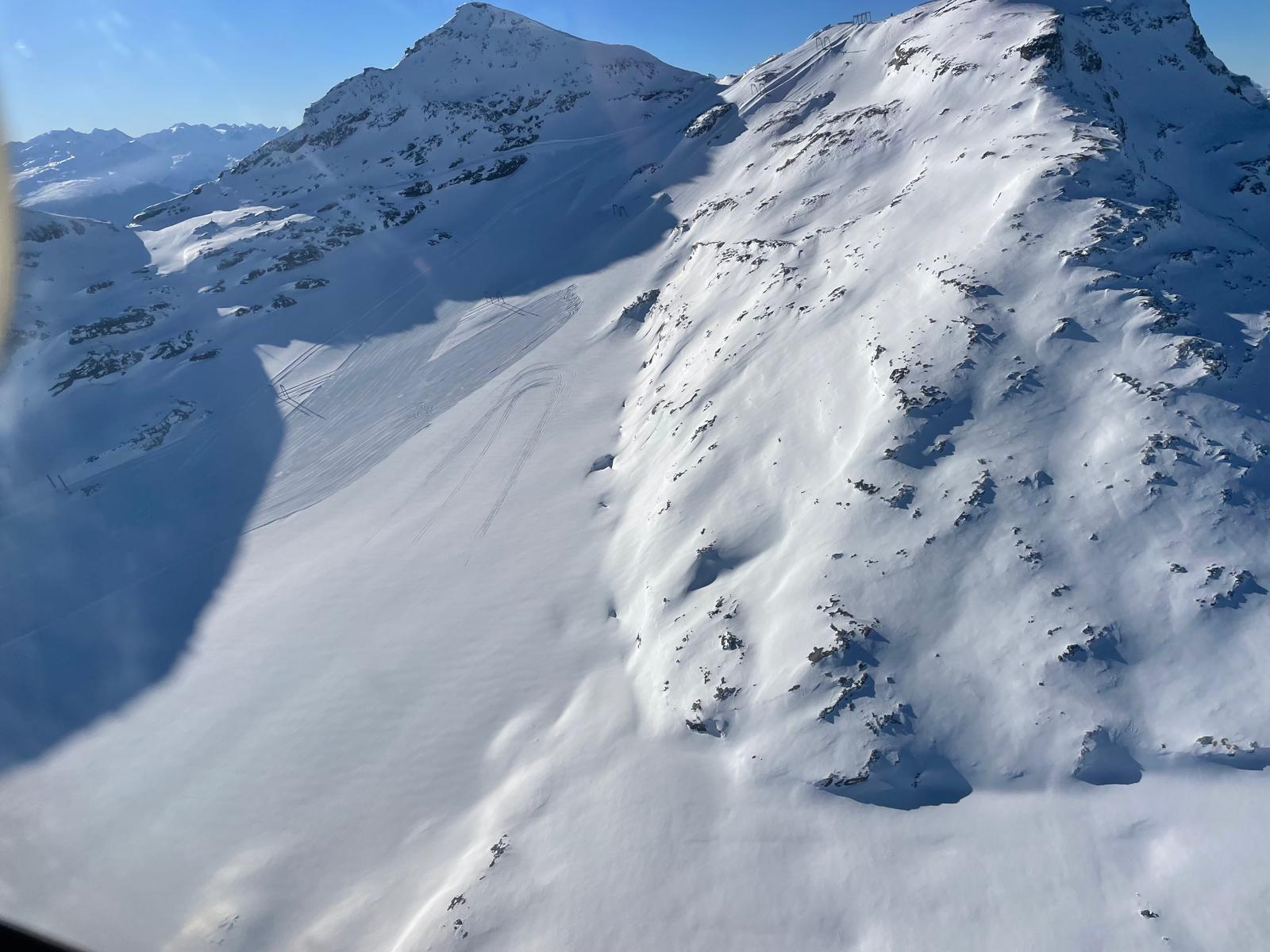 Luftaufnahme eines Gletscherflugkollegens vom Vorab. Es scheint tatsächlich so, dass der Steilhang nicht mehr gemacht wird.