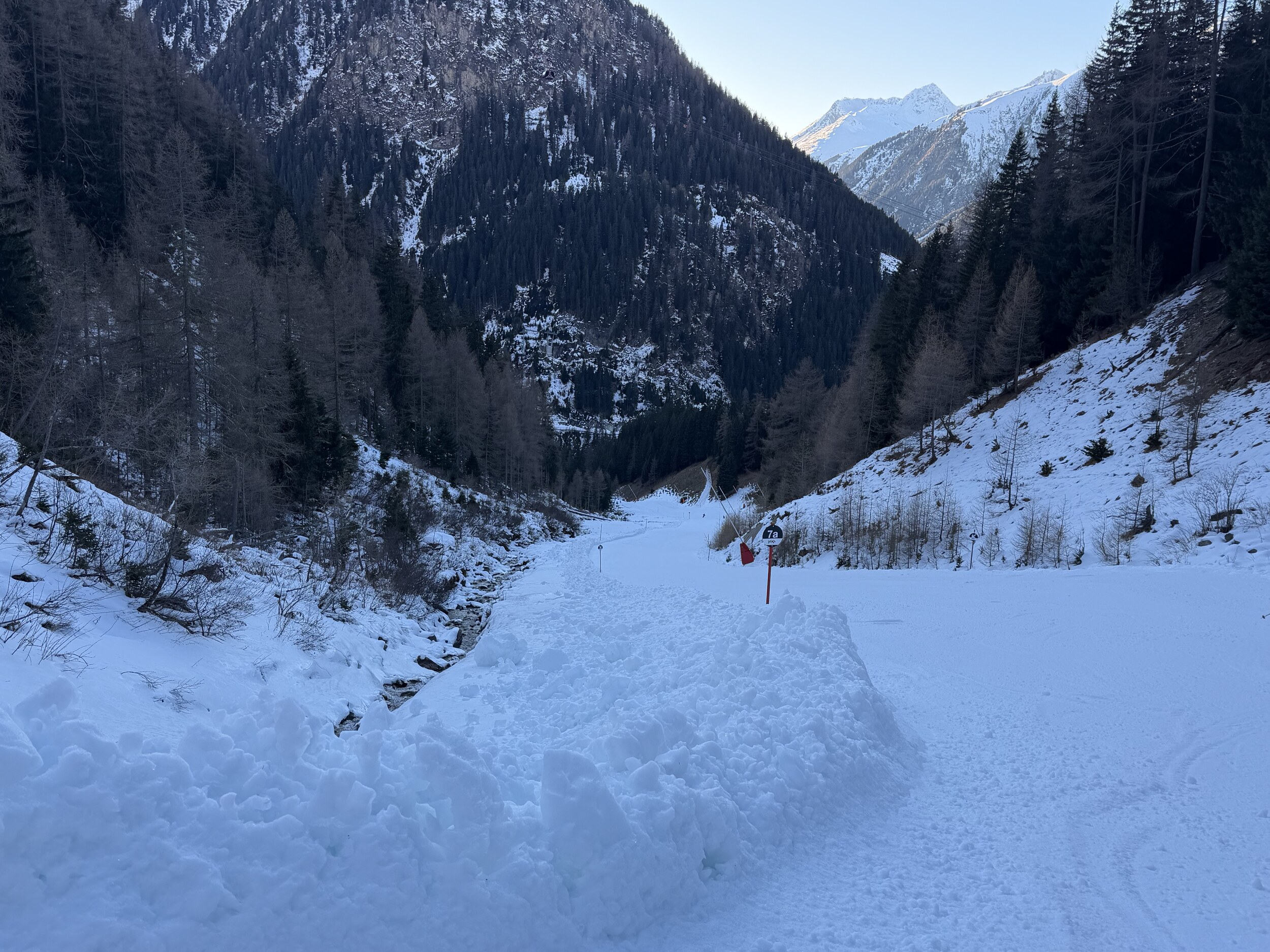 Die Piste 7a ist zwar sehr sehr schmal, hatte aber dank der Lage die beste Sicht und war auch noch in sehr gutem Zustand. Bei freier Fahrt macht die viel Spass und hat für mich eine perfekte Neigung.