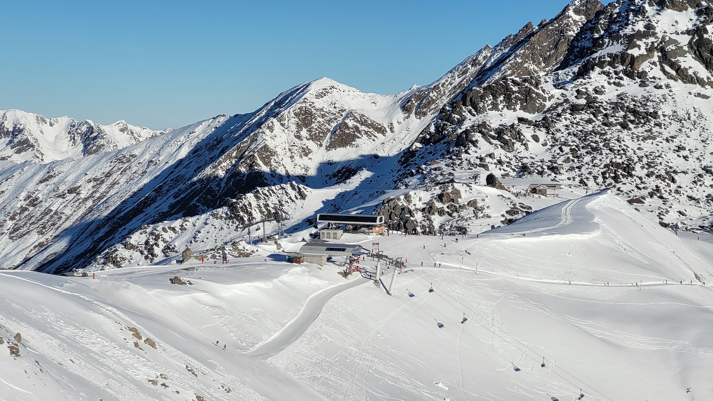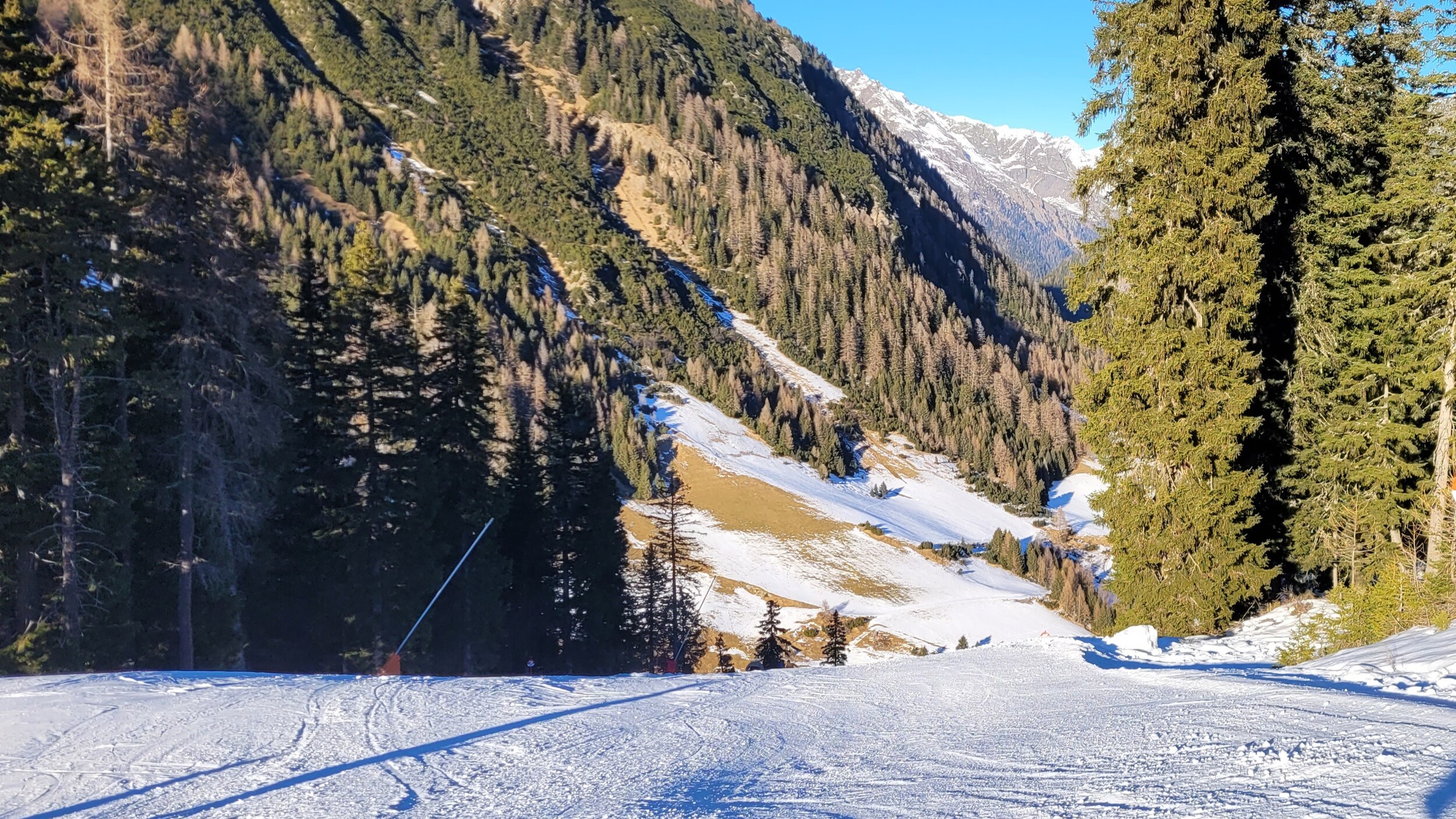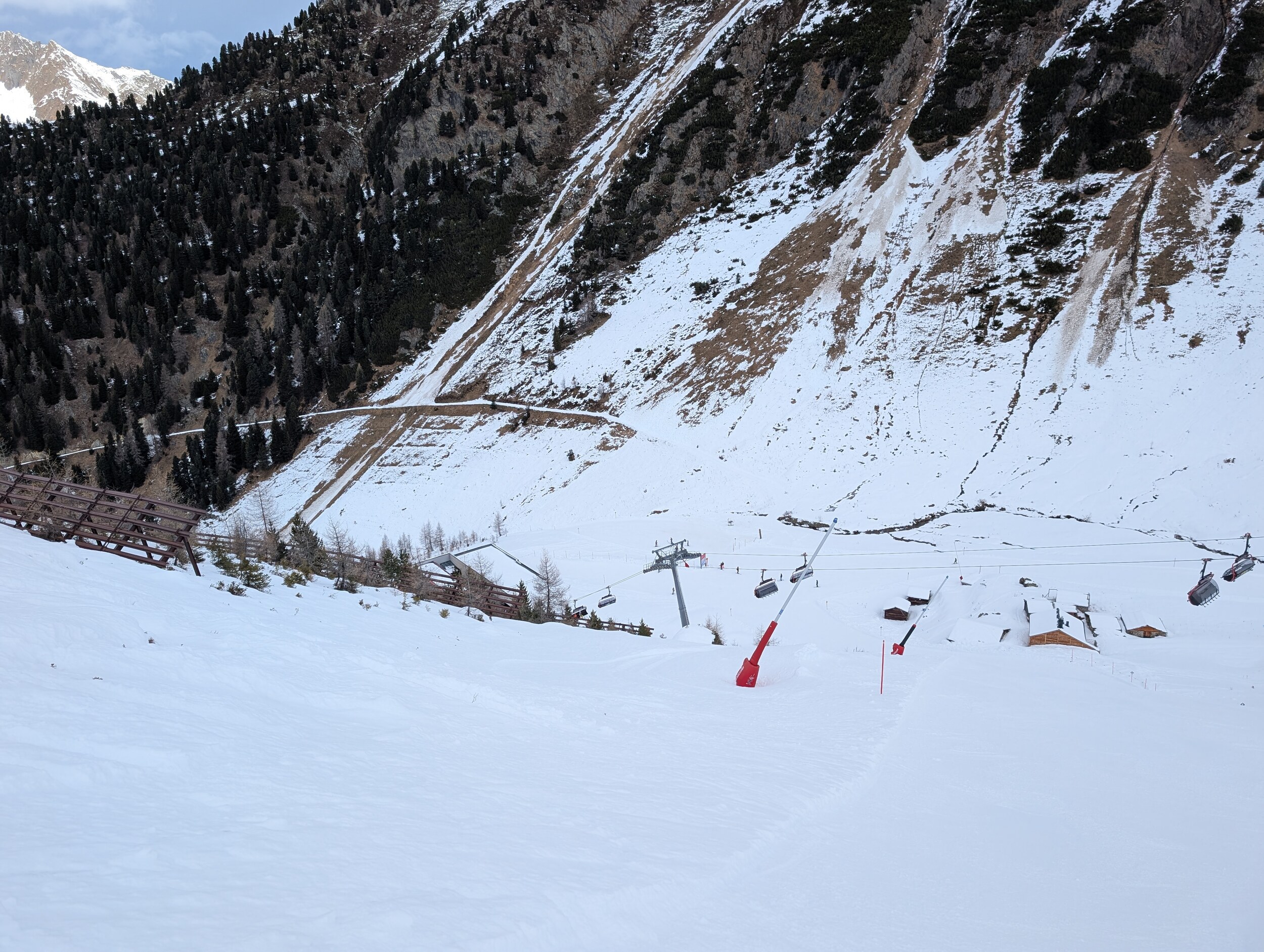 Generell hat der Zustand der Pisten in den letzten Tagen aber schon etwas gelitten, und man muss wieder vermehrt aufpassen, wegen Steinen und optisch sieht es halt auch nicht mehr soo winterlich aus.