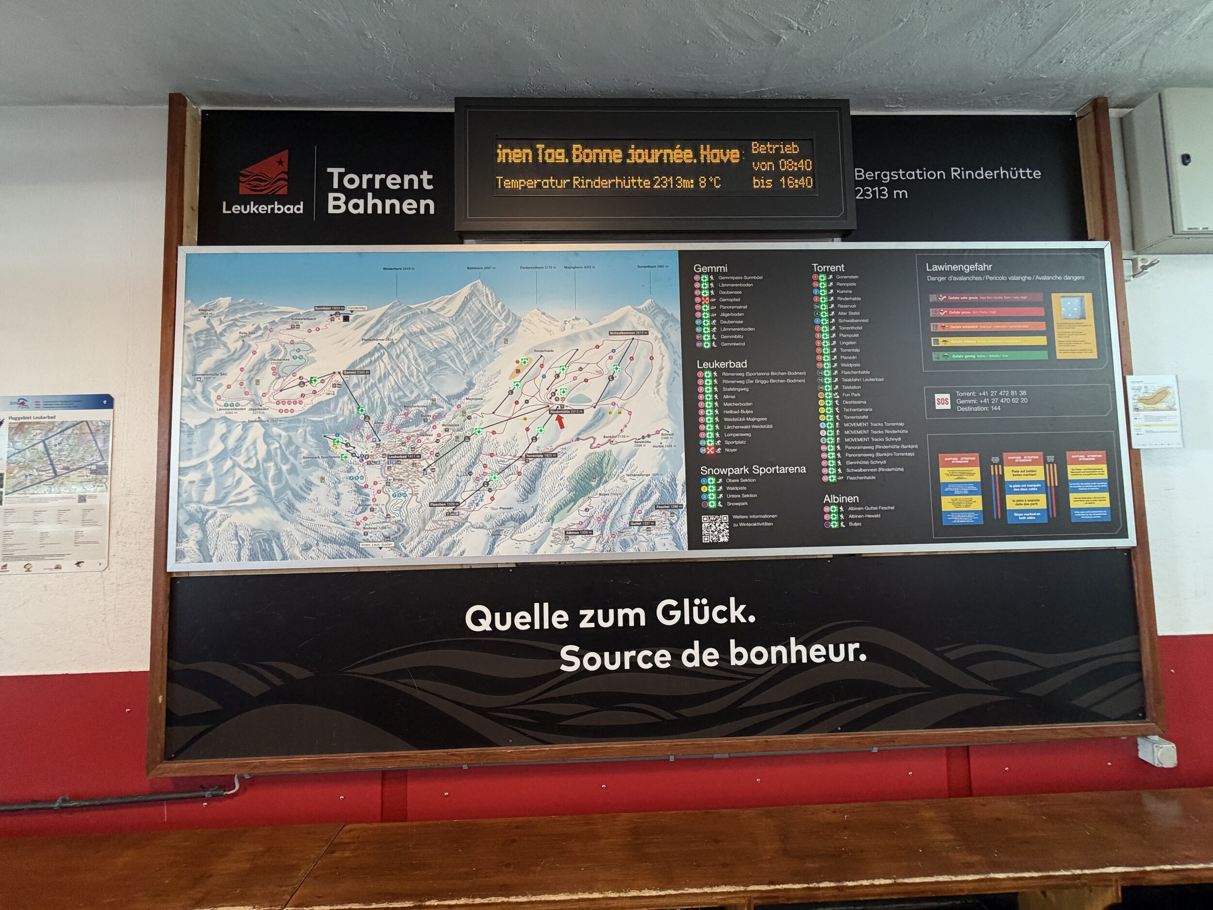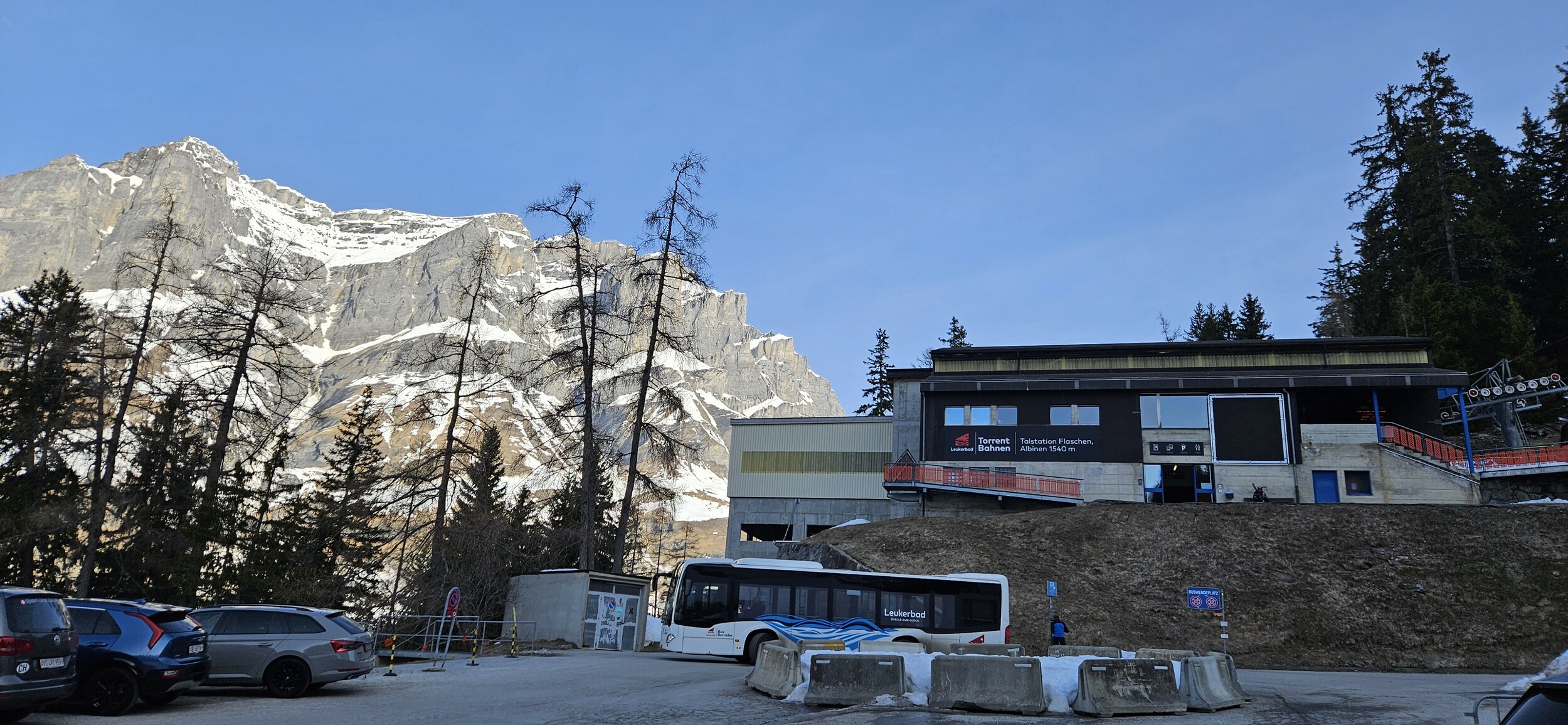 Wir sind mit der PB zur Rinderhütte gefahren, und spätestens dort merkt man bei dem Wind, dass man das falsche Skigebiet gewählt hat. Danach hatte ich naiverweise die Idee, «noch schnell einmal nach Flaschen runterzufahren, bevor es zu windig wird». Das war ein riesiger Fehler. Als wir unten ankamen, nahm die EUB bereits keine Gäste mehr mit. Es folgten 30 Minuten Wartezeit auf den Bus zurück nach Leukerbad, eine überfüllte Busfahrt und anschliessend nochmals ein Fussmarsch zur PB-Talstation.