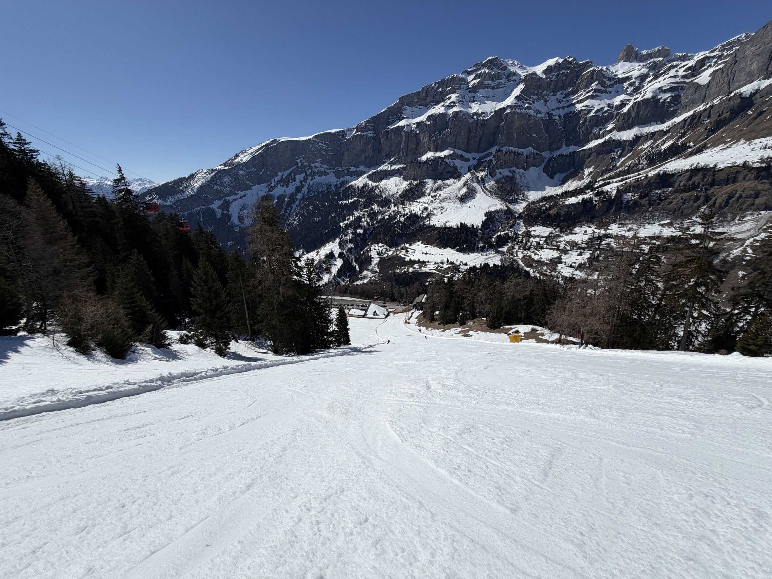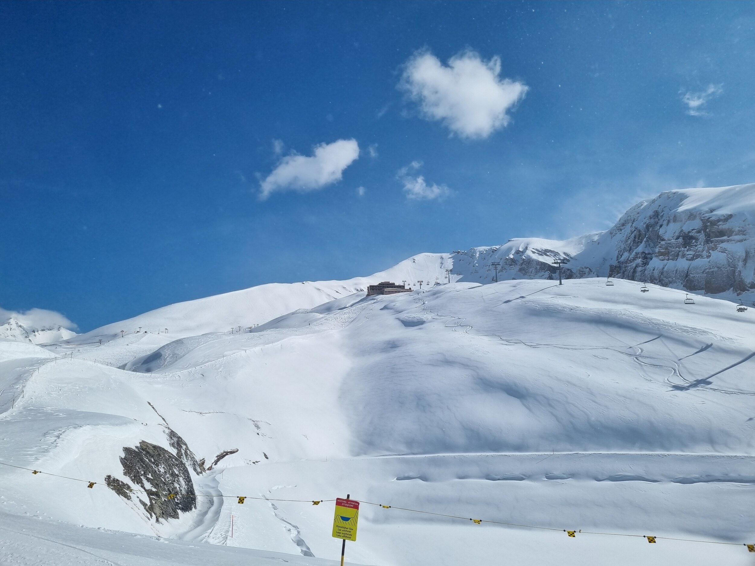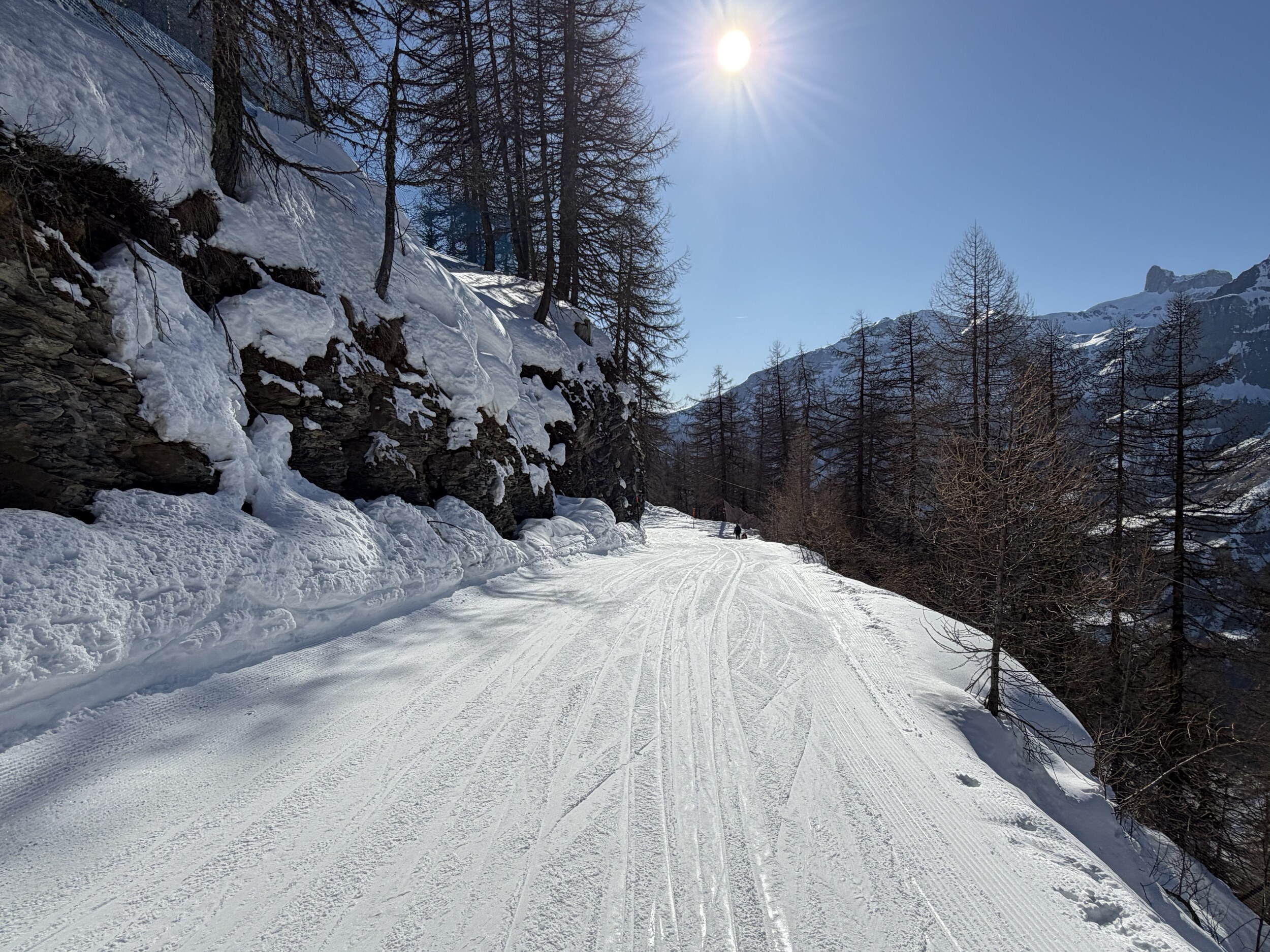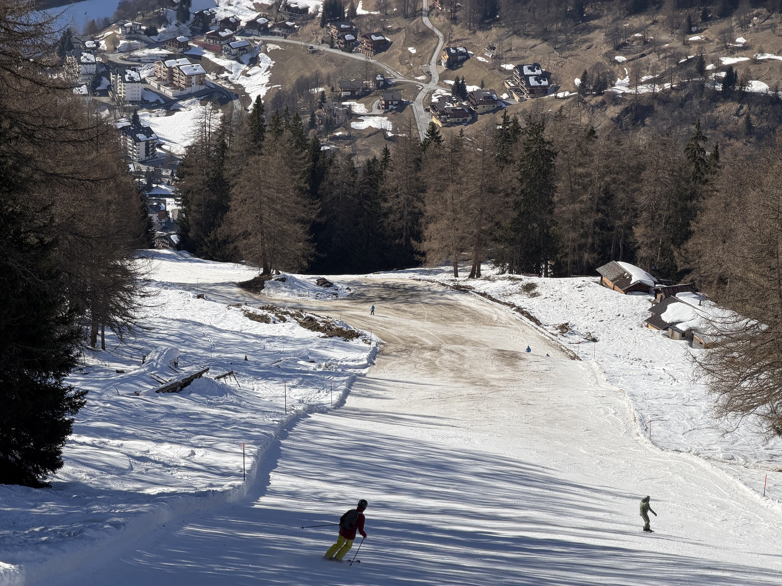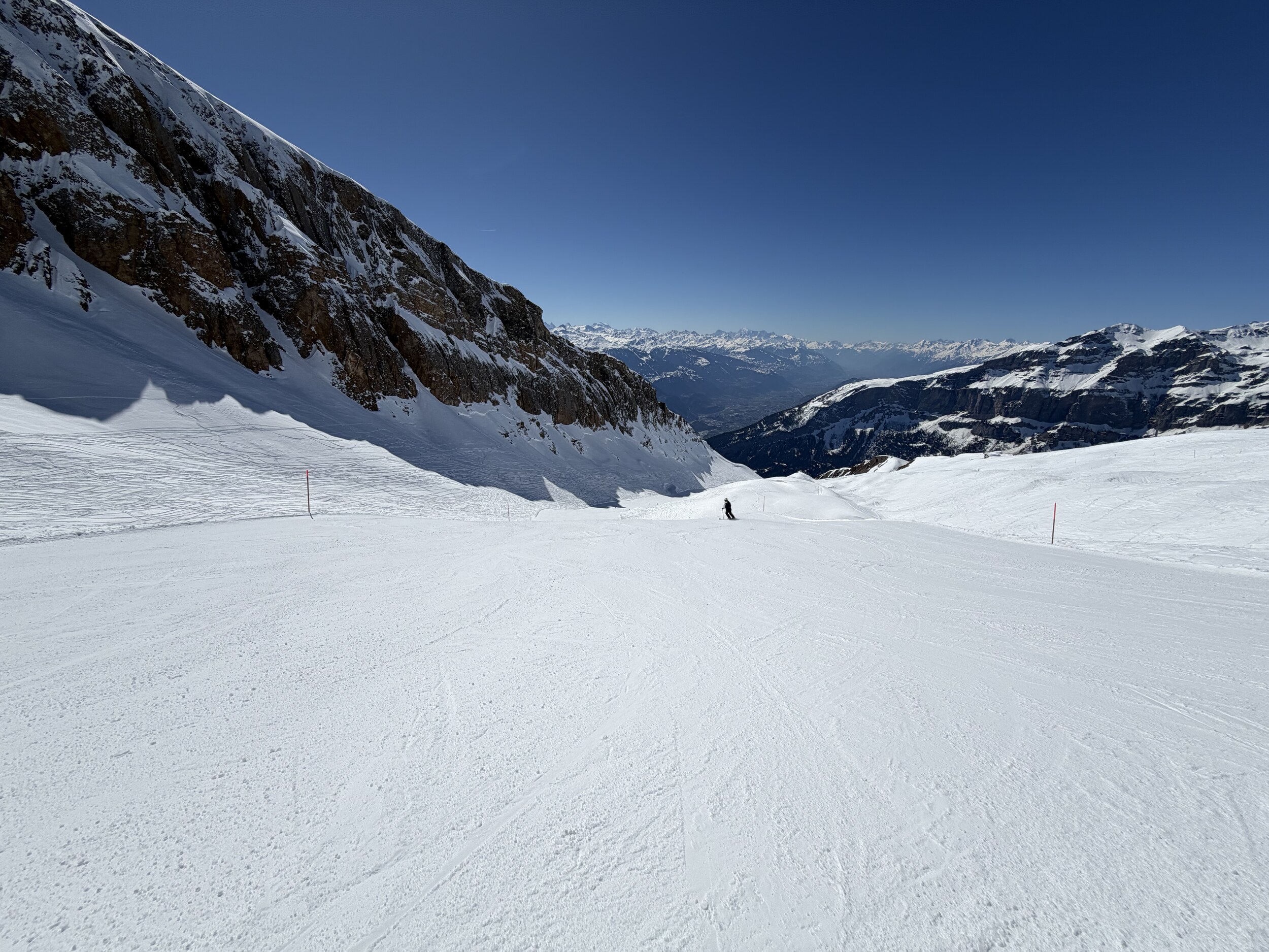 Der Schnee war morgens perfekt: ein bisschen weich und perfekt präpariert, nicht zu weich und nicht zu hart, einfach perfekt! Gegen Mittag wurde er aufgrund der Wärme etwas nasser, aber da nur wenige Leute unterwegs waren, blieb er bis zum Schluss in gutem Zustand. Alle Pisten sind geöffnet, außer der roten Plampulet und den unteren Varianten der roten Planedri (und die gelbe Pisten Torrenstafel/Tschantamaria). Alles war gut präpariert, außer leider Feuillerette, die nicht frisch präpariert war und weniger gut war, was enttäuschend war, da es eine der besten Pisten ist. Aber ansonsten war es ein toller Tag mit einem guten Mittagessen im Restaurant Flaschen.
