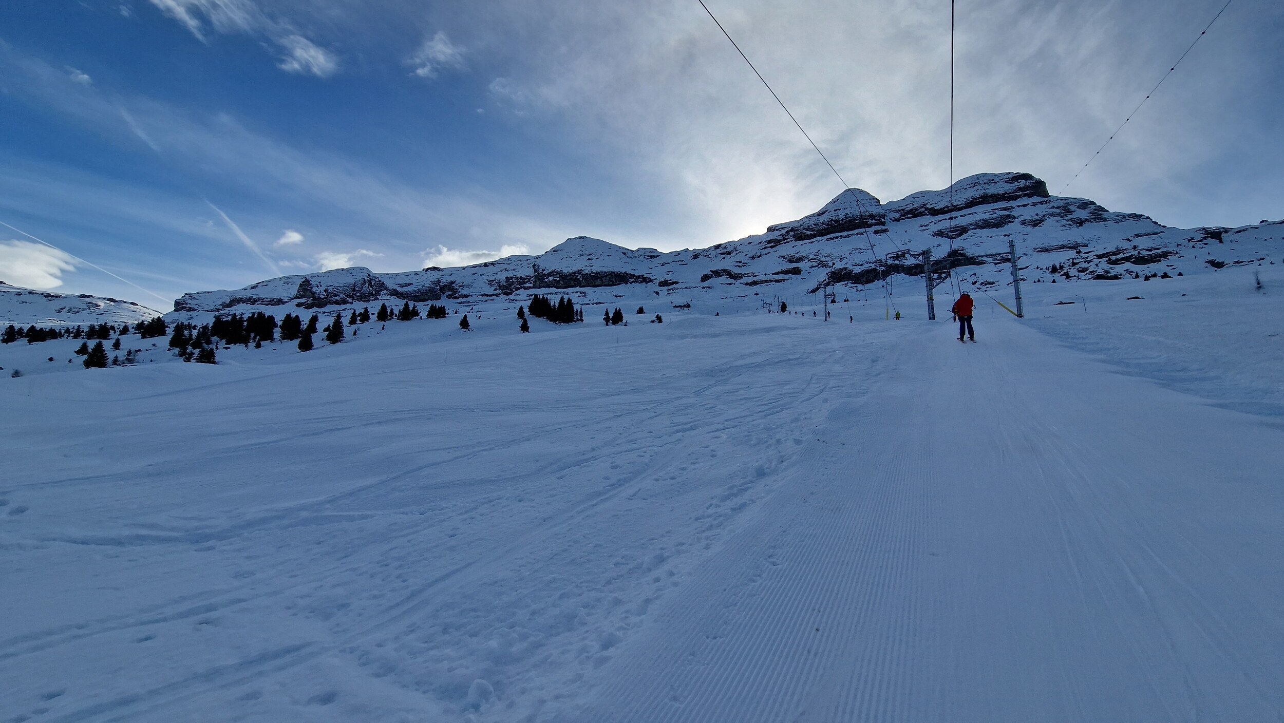 Zudem konnte ich auch mit dem neuen Sessellift Gron fahren. Die Piste war in einem schlechten Zustand und ich habe von der Abfahrt bestimmt zwei Erinnerungsmacken in meinen Skiern mitgenommen.