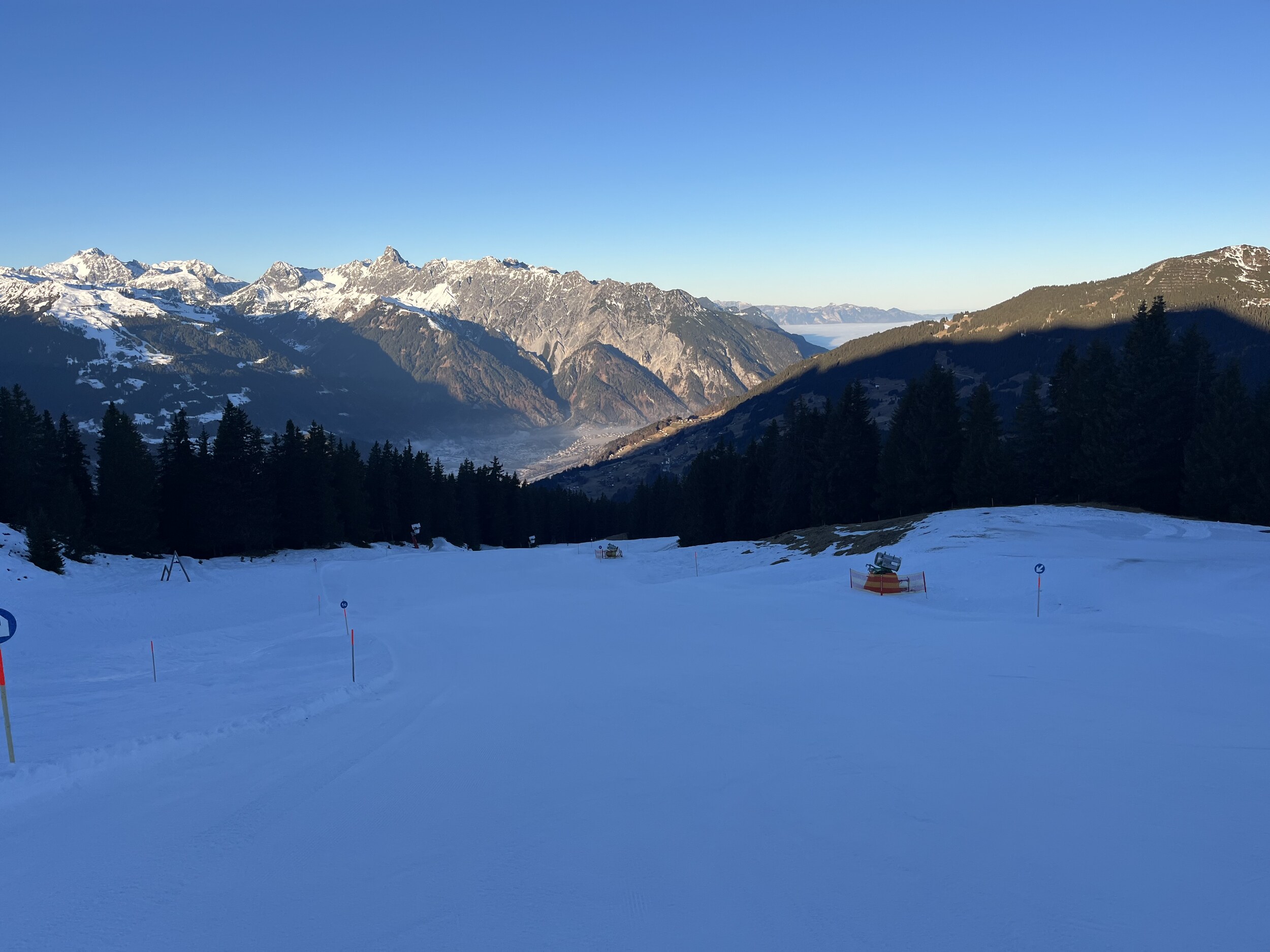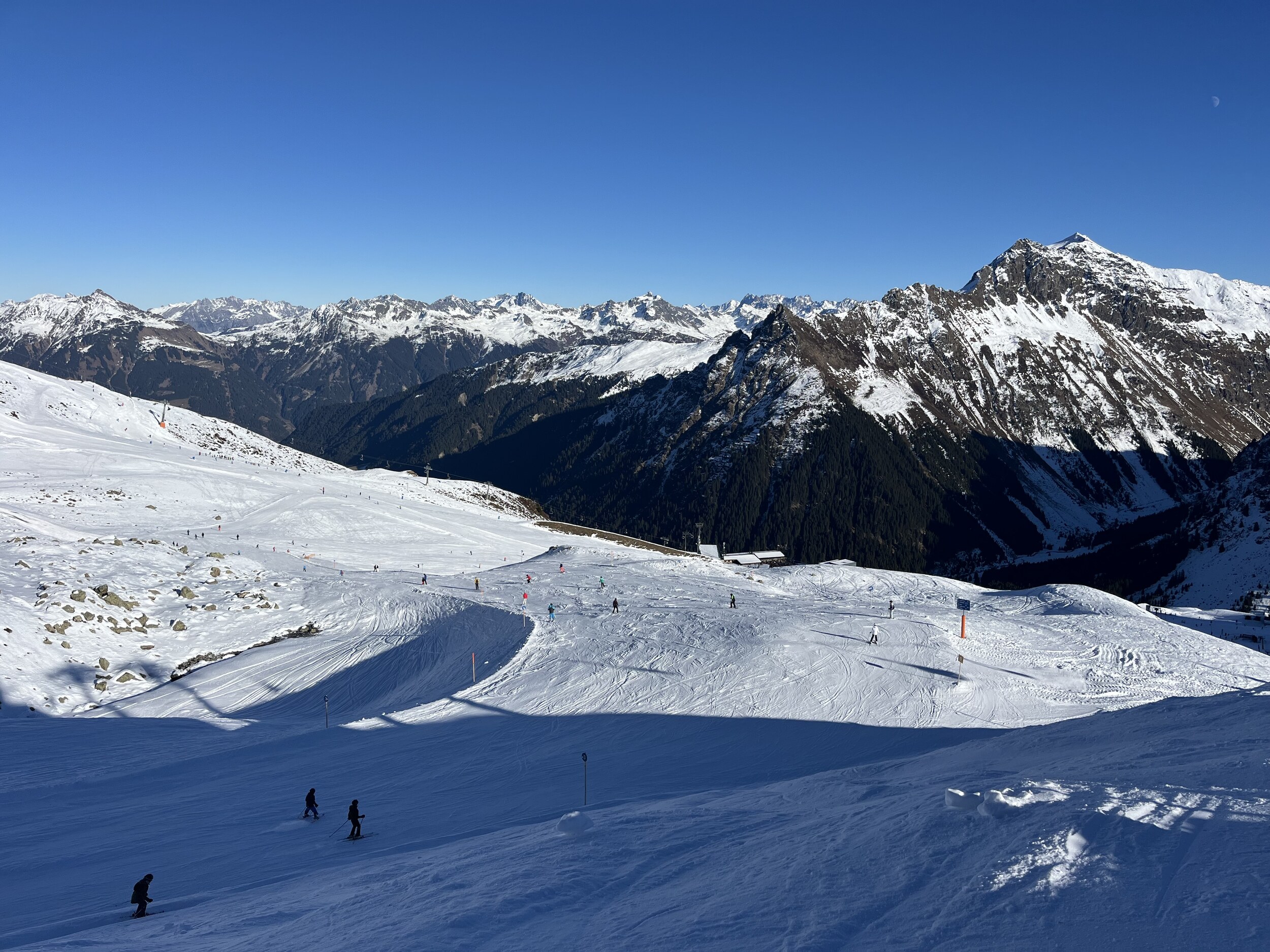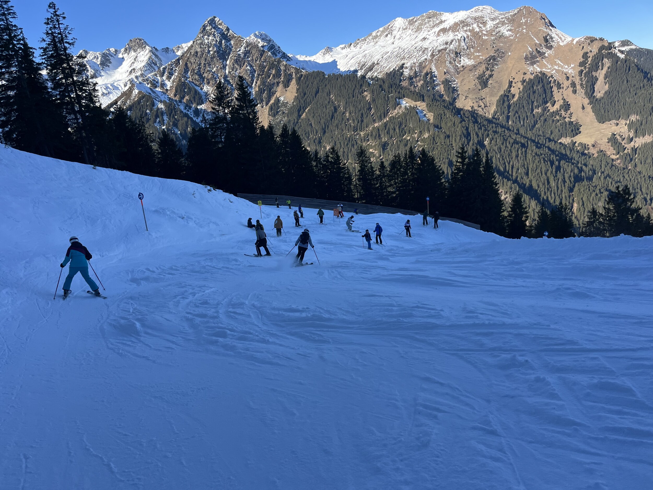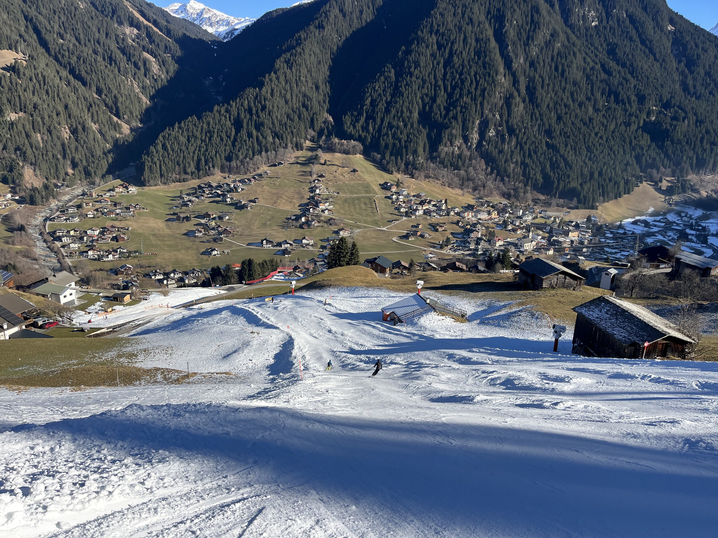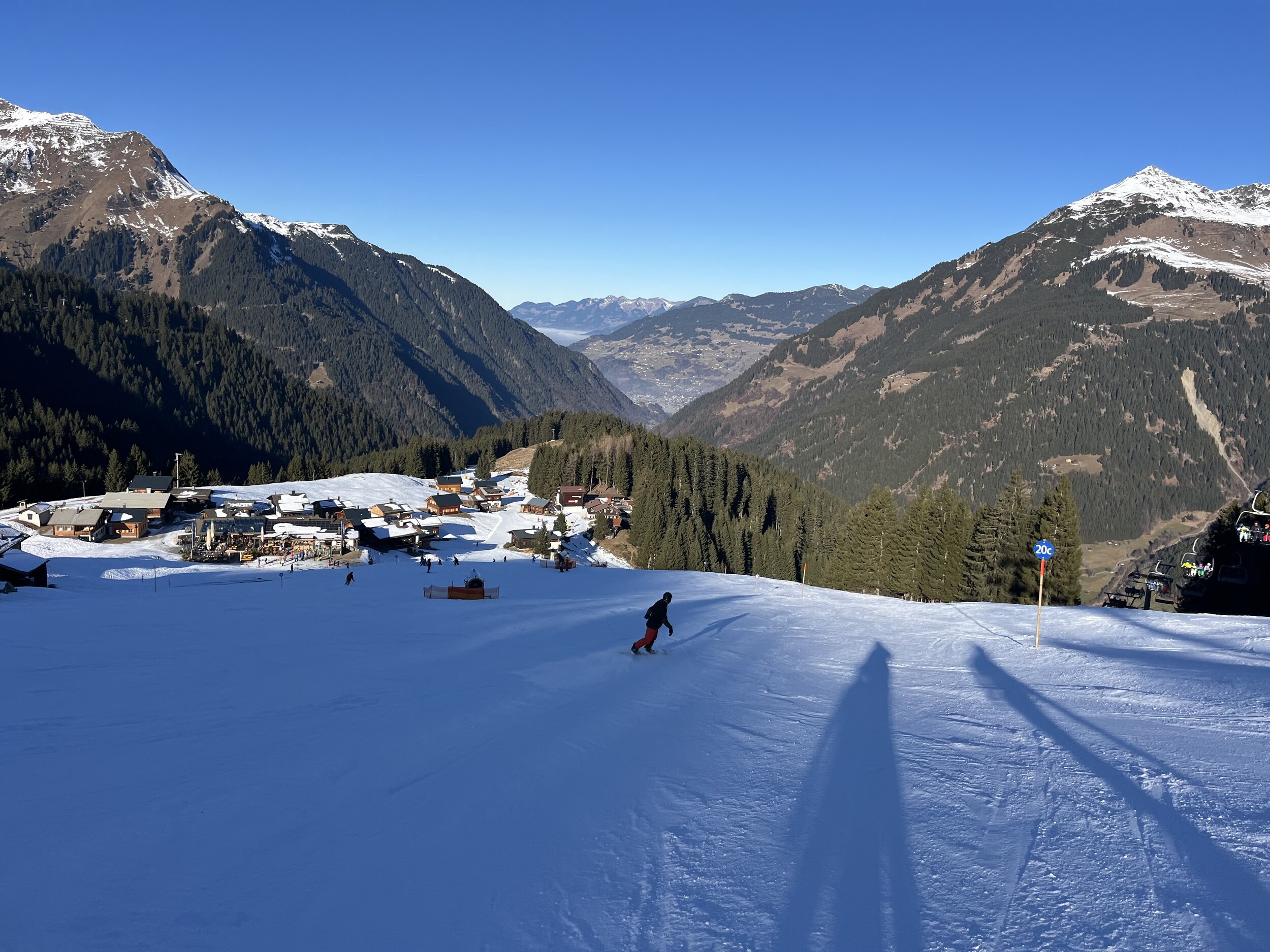 In Gargellen hatte ich auch mal einen schönen Skitag, dort ist es eher etwas ruhiger da weit abgelegen. Natürlich nicht besonders groß, aber dank einigen Hintenrum Pisten wie der Täli Piste ganz abwechslungsreich. Aber Ähnlich wie auf der Madrisa nicht weit entfernt fehlt dort wohl auch noch einiges Schnee.