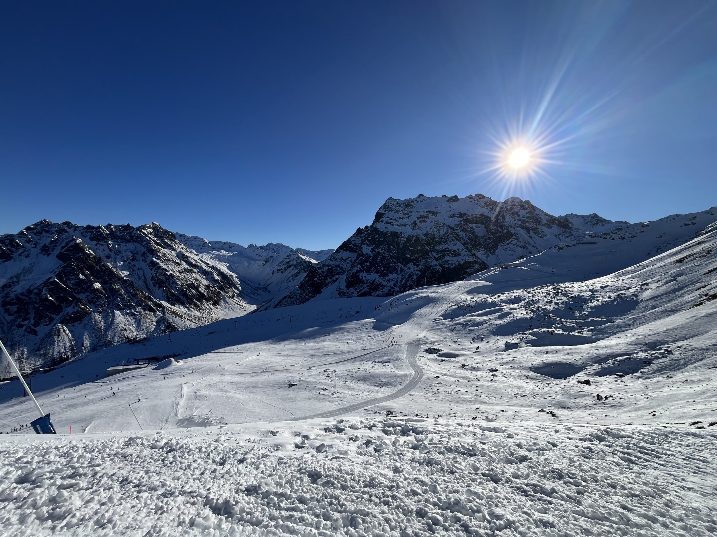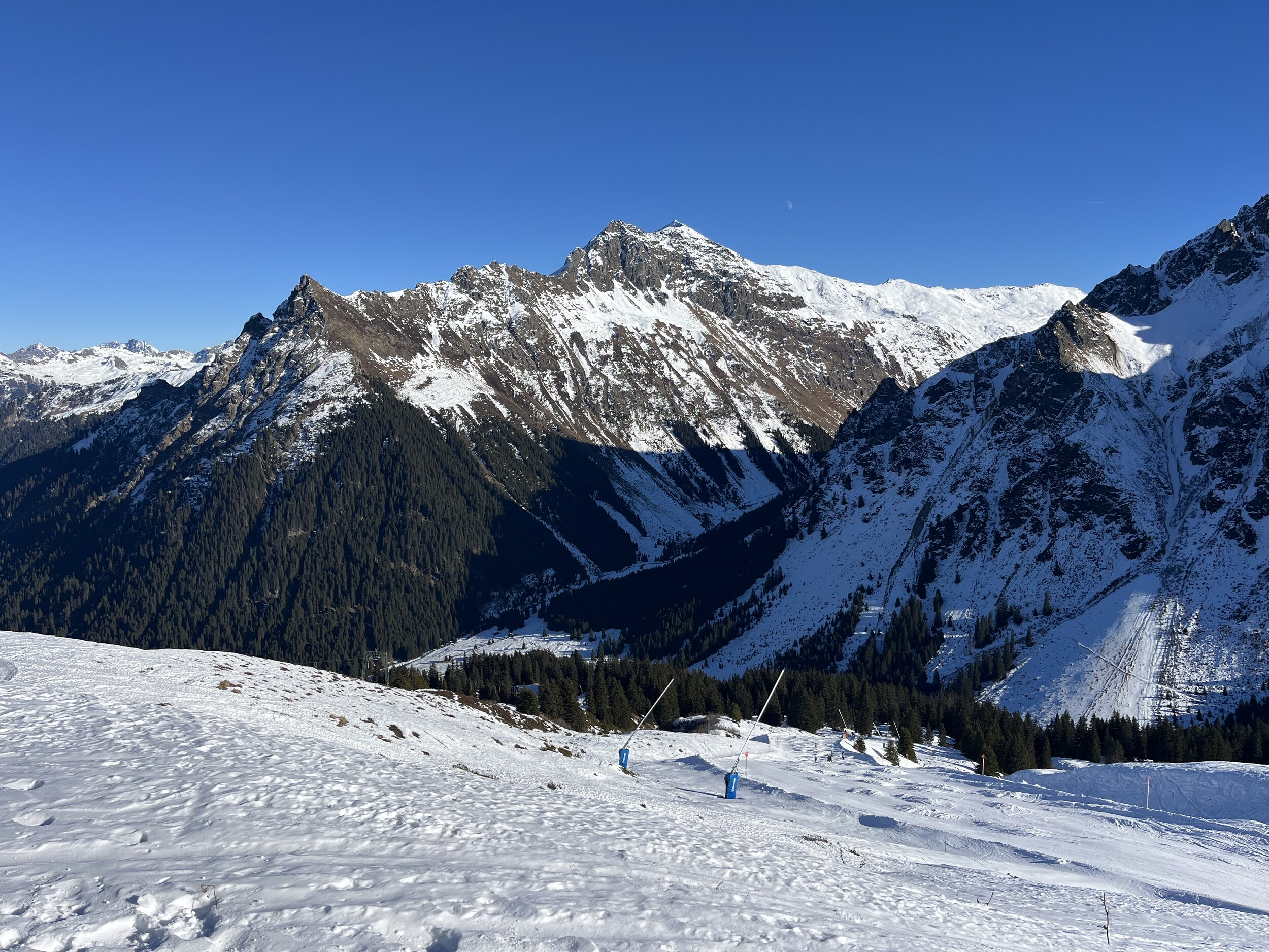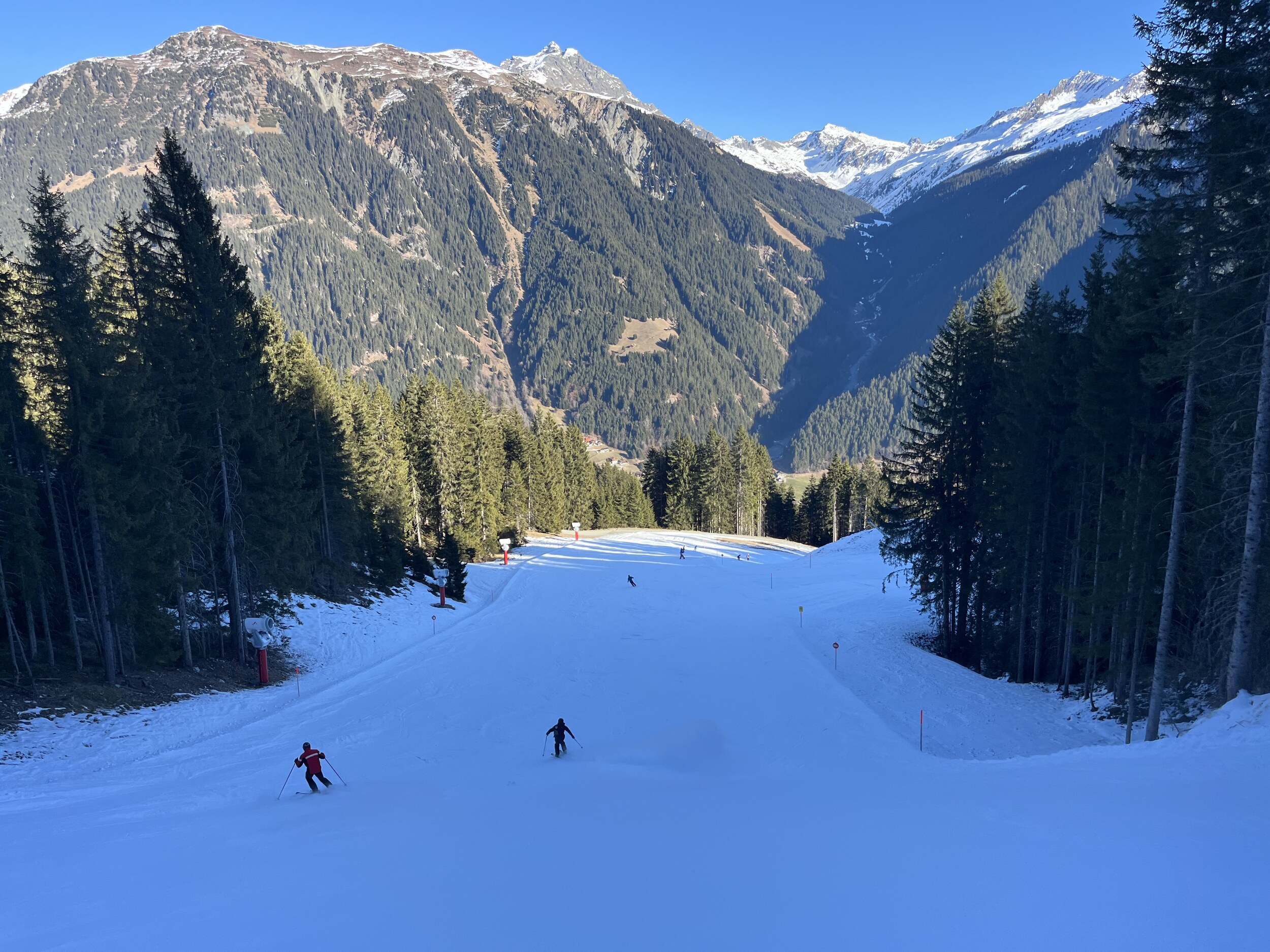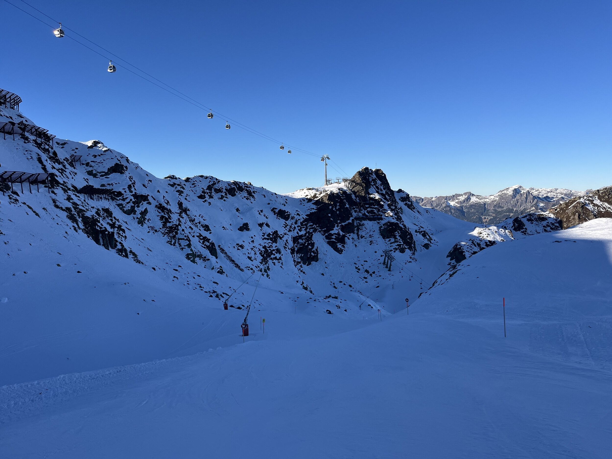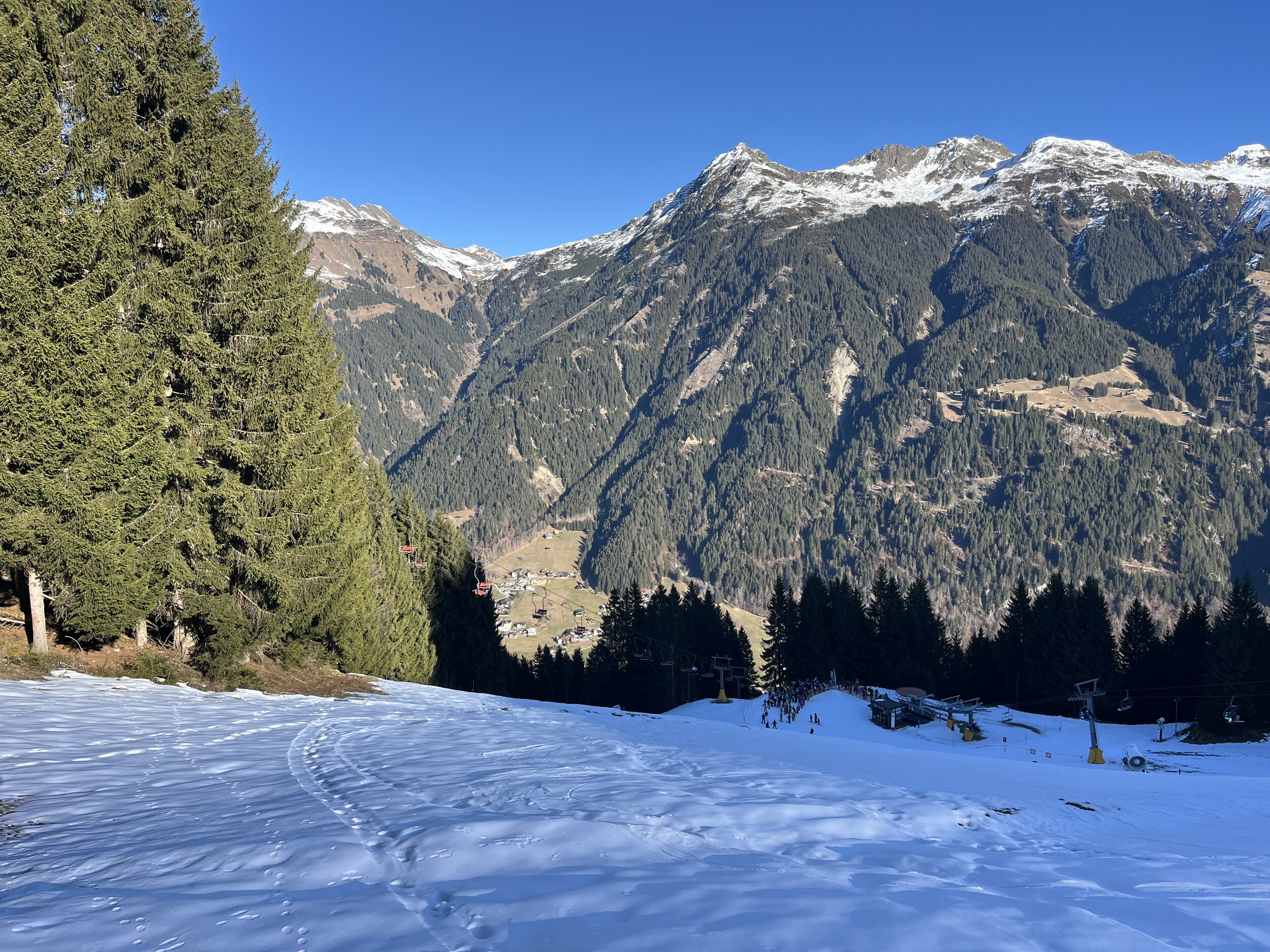 In Gargellen hatte ich auch mal einen schönen Skitag, dort ist es eher etwas ruhiger da weit abgelegen. Natürlich nicht besonders groß, aber dank einigen Hintenrum Pisten wie der Täli Piste ganz abwechslungsreich. Aber Ähnlich wie auf der Madrisa nicht weit entfernt fehlt dort wohl auch noch einiges Schnee.