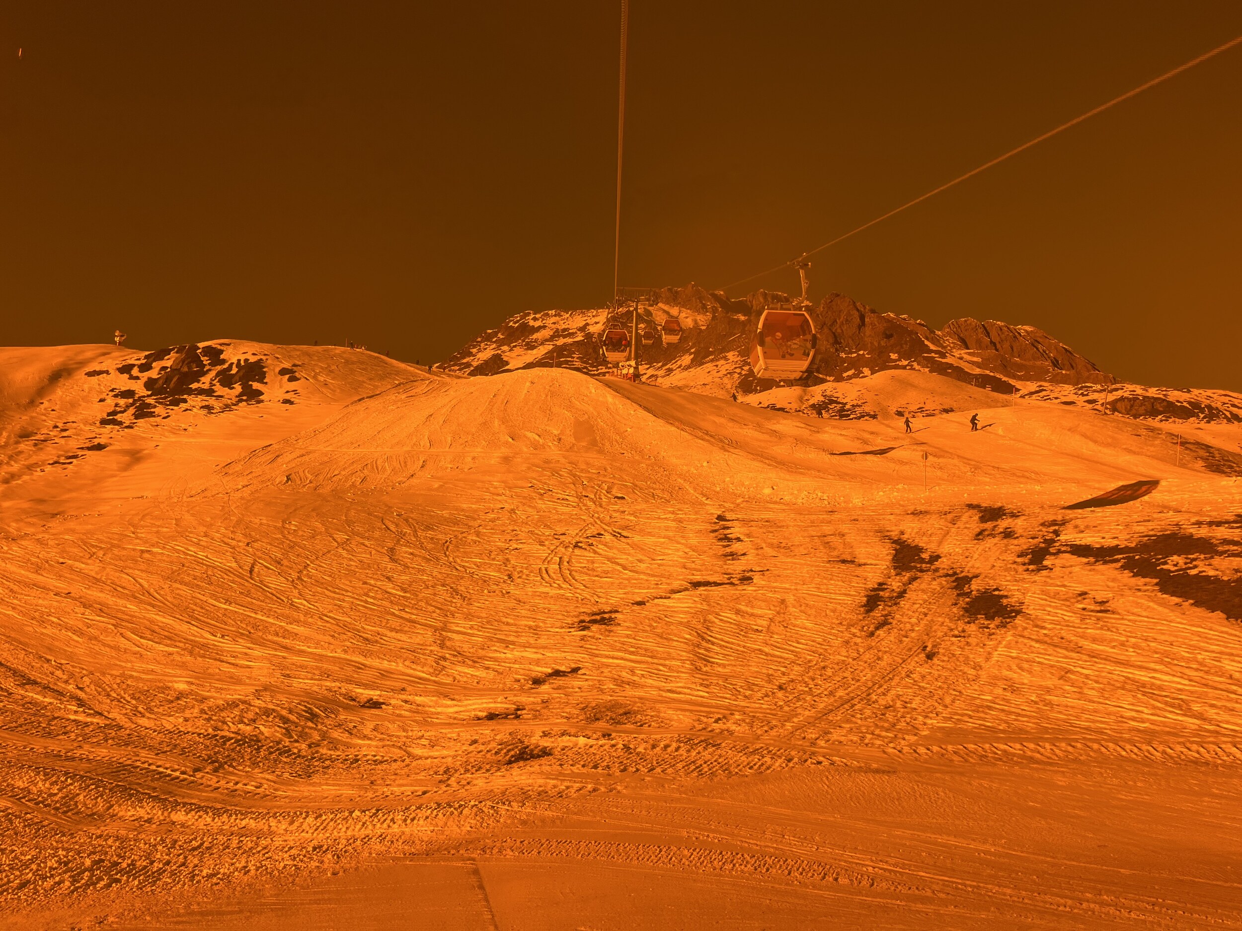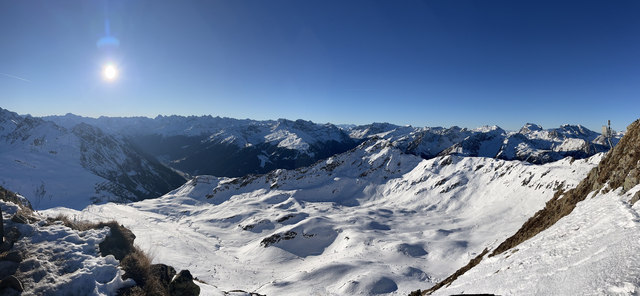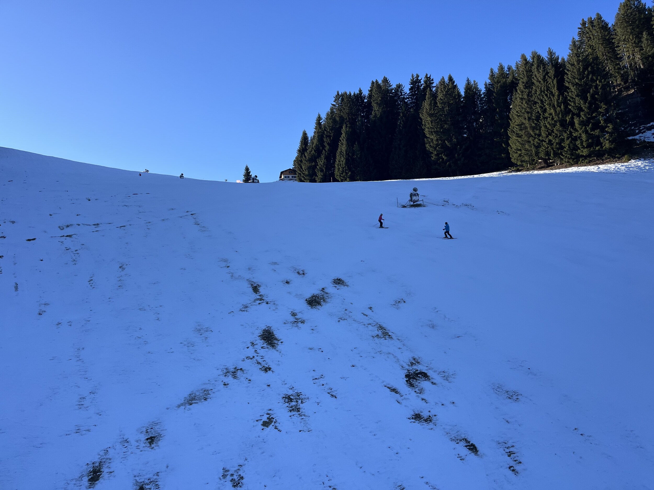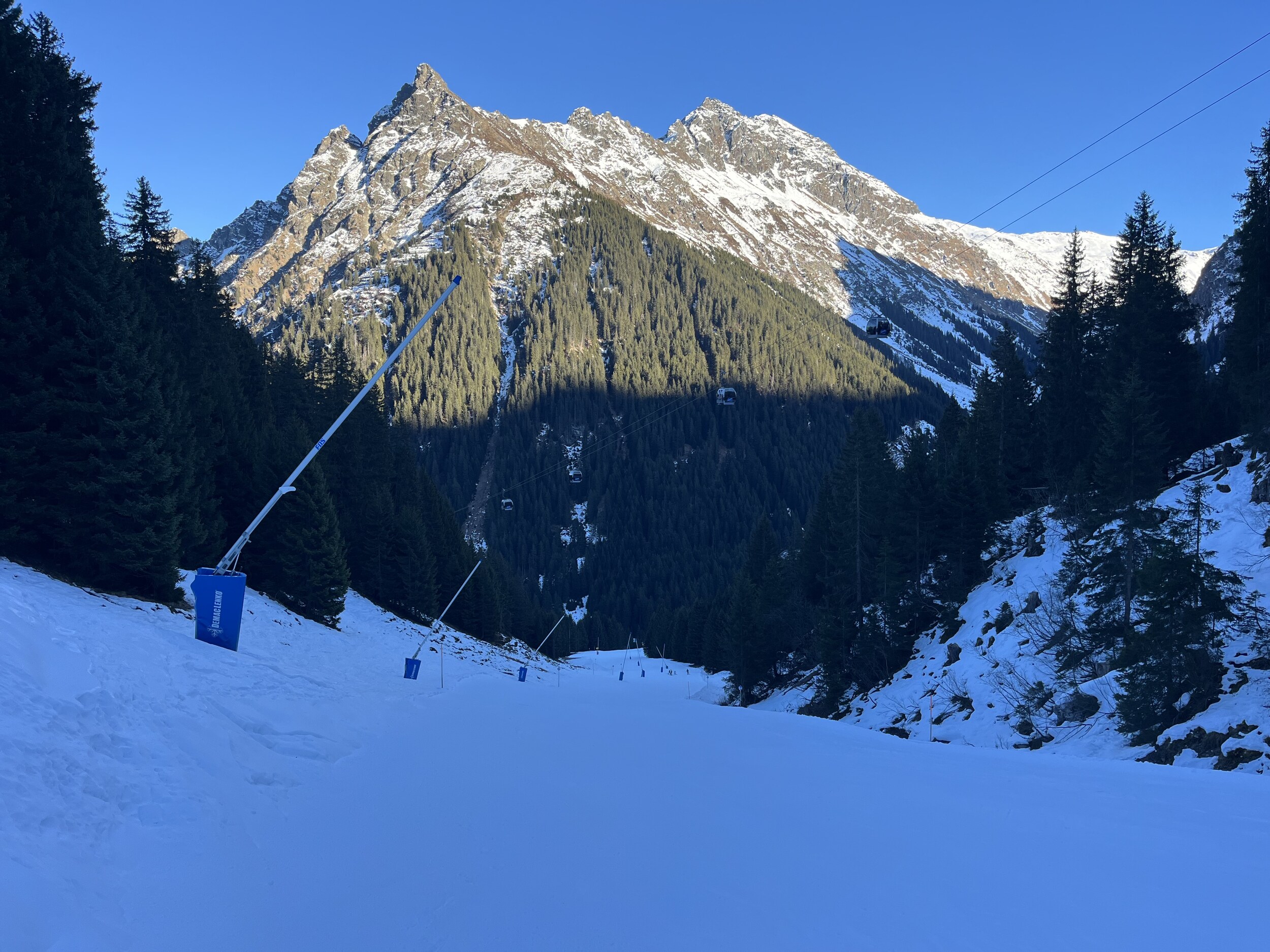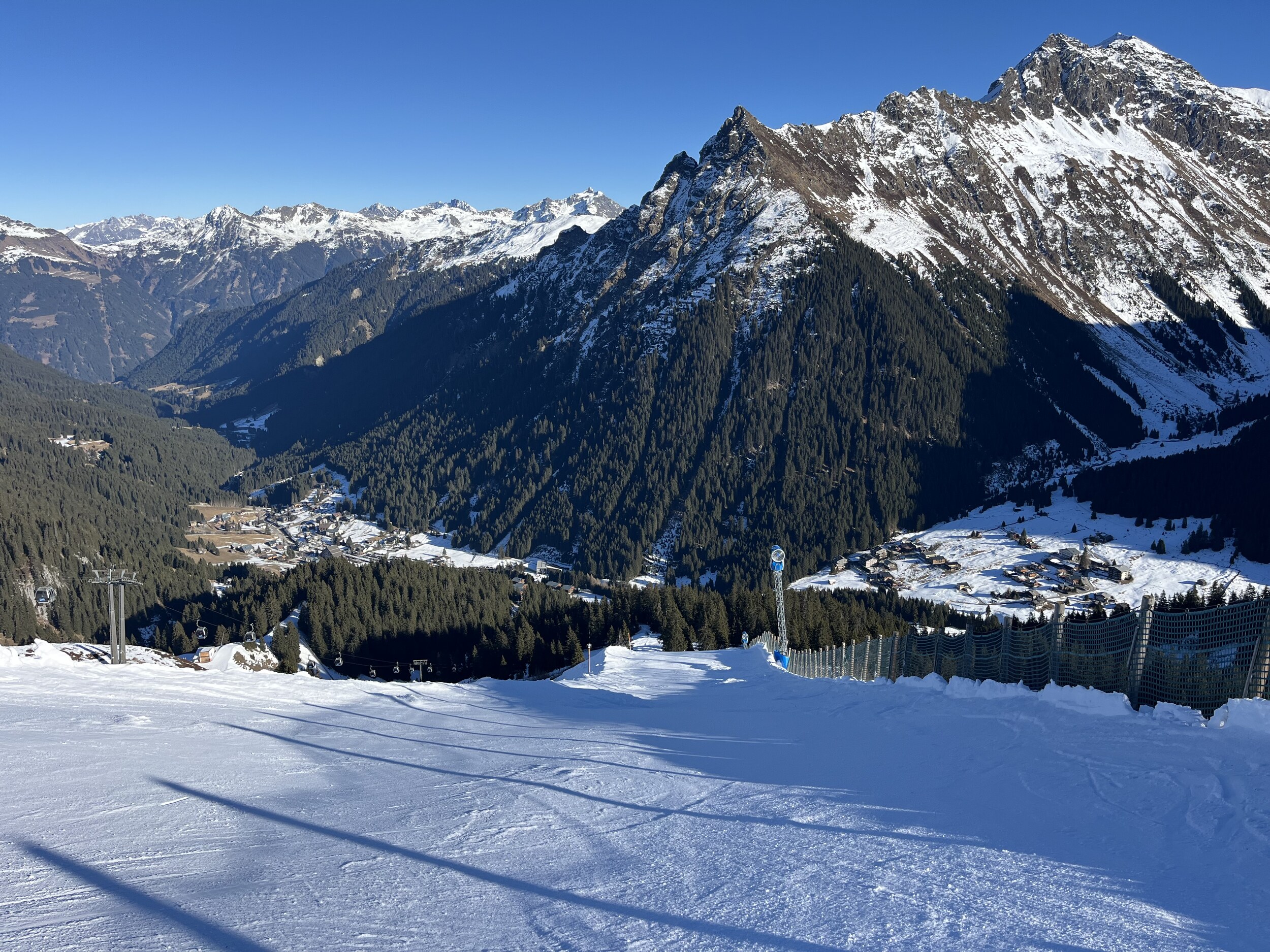 Aber er hat recht, da Zürs keine Beschneiung hat und immer noch kein Niederschlag in Sicht ist, wird das Mahdloch erstmal nicht aufgehen. Aber der Rest ist (noch) machbar.