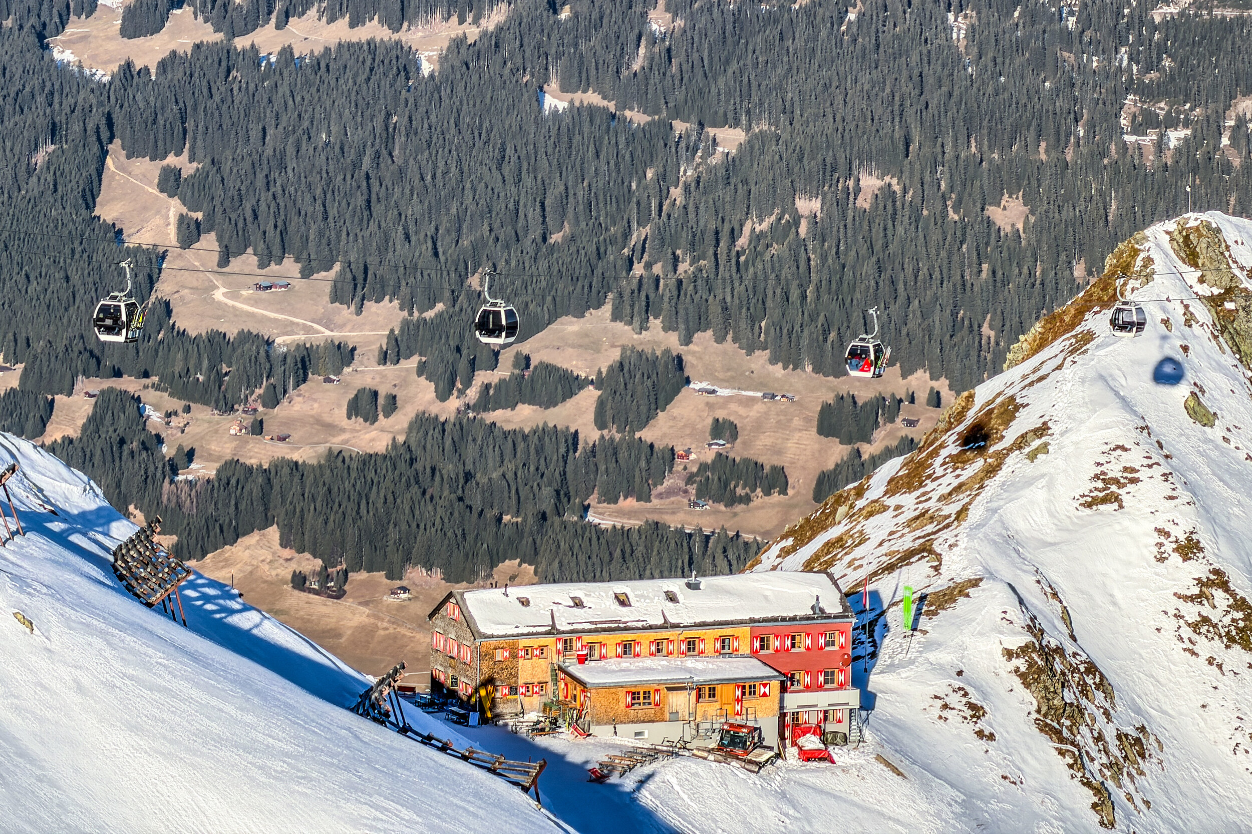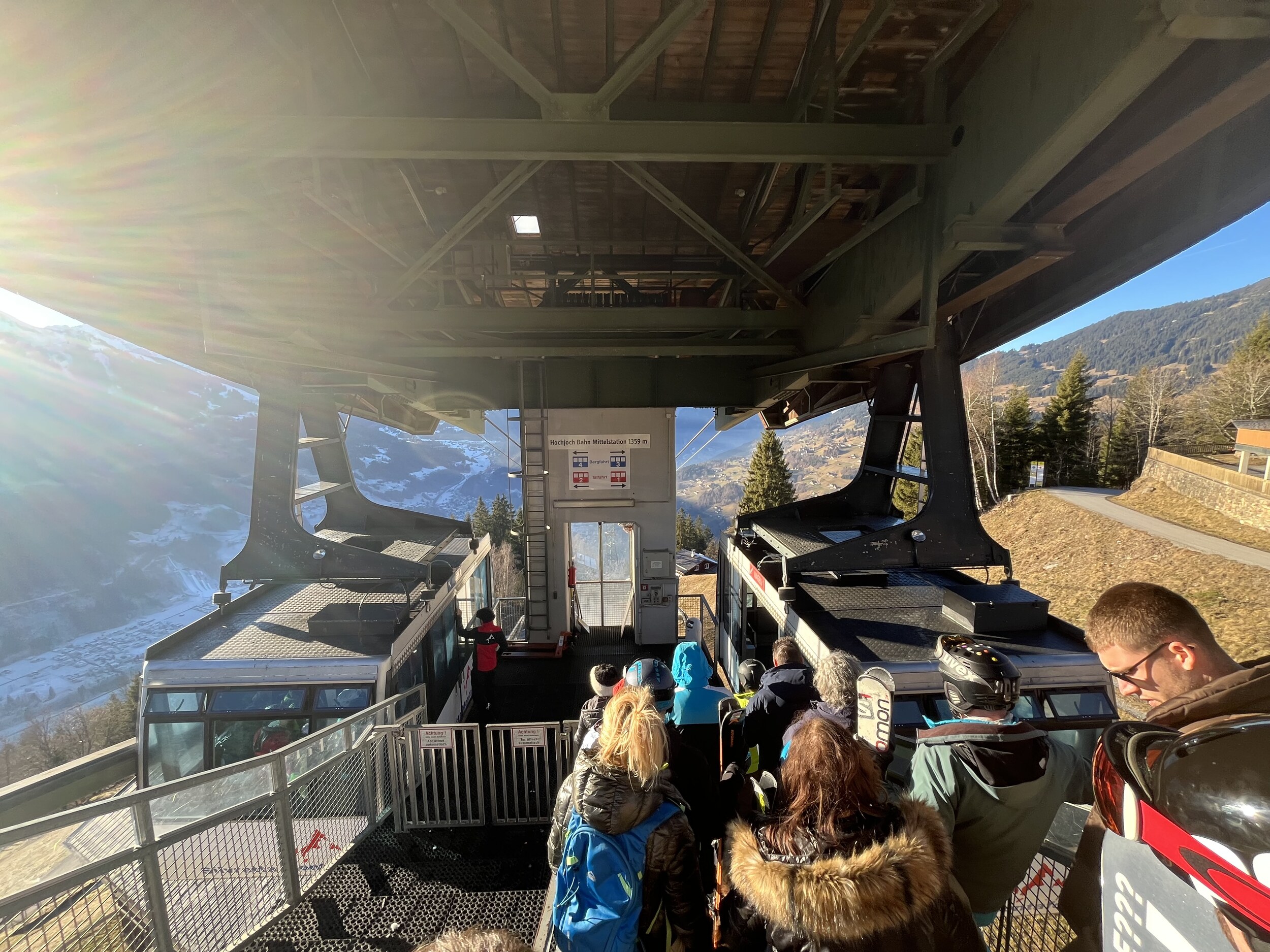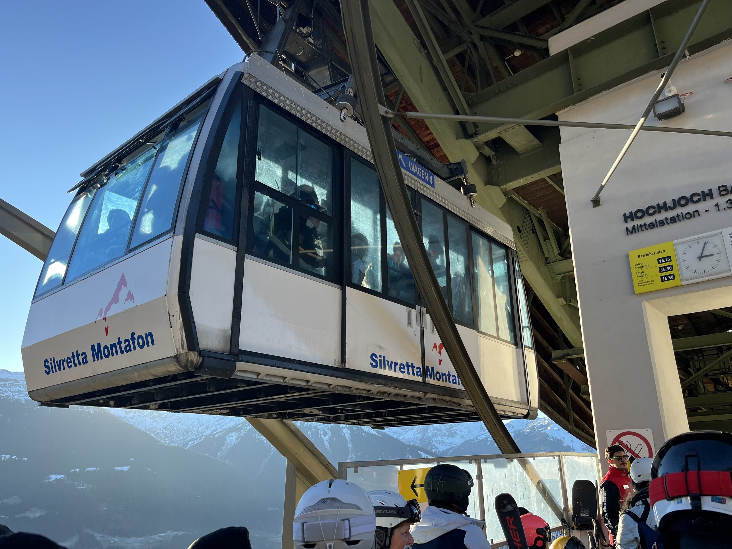 -8° in Schruns. Schade, dass die Talabfahrt erst jetzt beschneit werden kann. Leider fährt der Hotelbus erst ab 8.30 Uhr, obwohl die Zamangbahn schon um 8 Uhr startet. Und auch das späte Frühstück ab 7.30 Uhr ist mal wieder das klassische Ärgernis wie in vielen Hotels. Um 8.40 Uhr müssen wir 7 Minuten anstehen. Könnte schlimmer sein. Als erstes fahren wir die rassige blaue Piste zur Mittelstation. Und wir haben Glück, die PB ist grad da, wir können unmittelbar einsteigen. Seebliga ist natürlich noch im Schatten: Die Panoramabahn finde ich schon den Hit: Endlich in der Sonne. Die Piste ist aber sehr eisig und übervoll. Schon ein tolles Panorama hier: Und eine lässige Bahn: Wormser Hütte am Sennigrat. Da bin ich früher oft mit dem Gleitschirm gestartet. Diese Piste erinnert mich immer ans Rothorn auf der Lenzerheide: Der Tunnel ist aber länger: Der Freda-Lift hingegen ist für die Katz. Die Piste ein Witz: Edit 12.30 Uhr:
