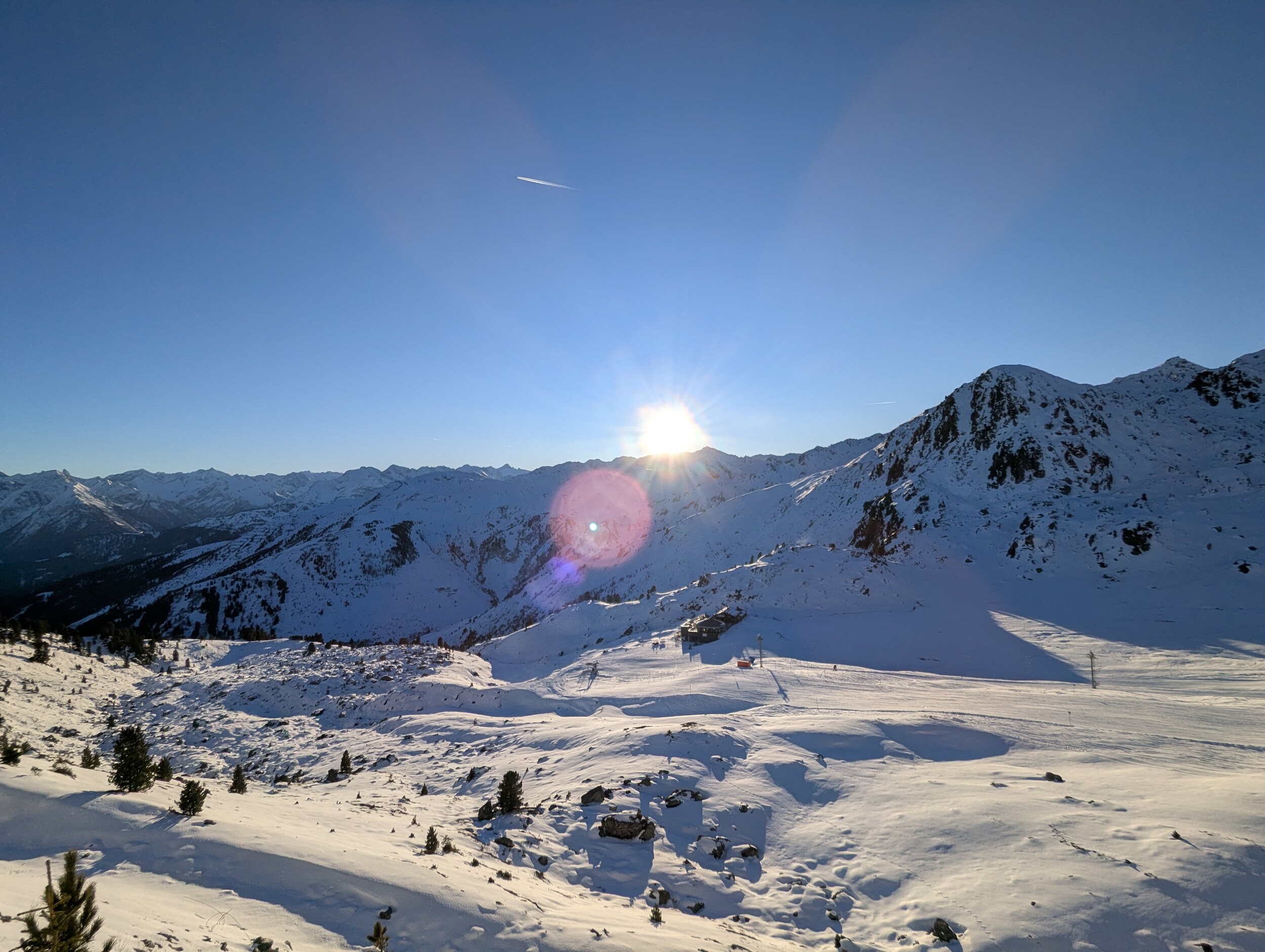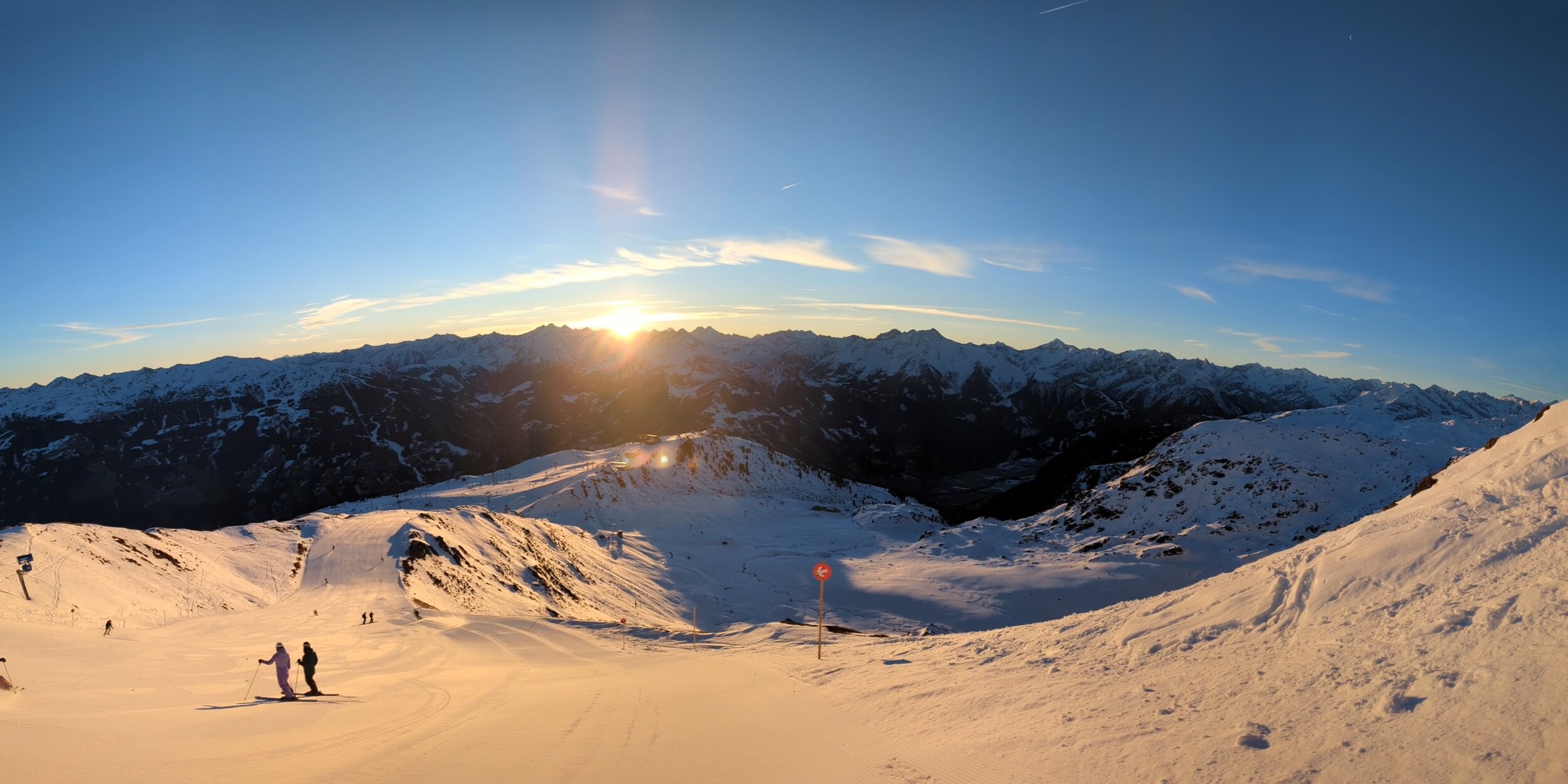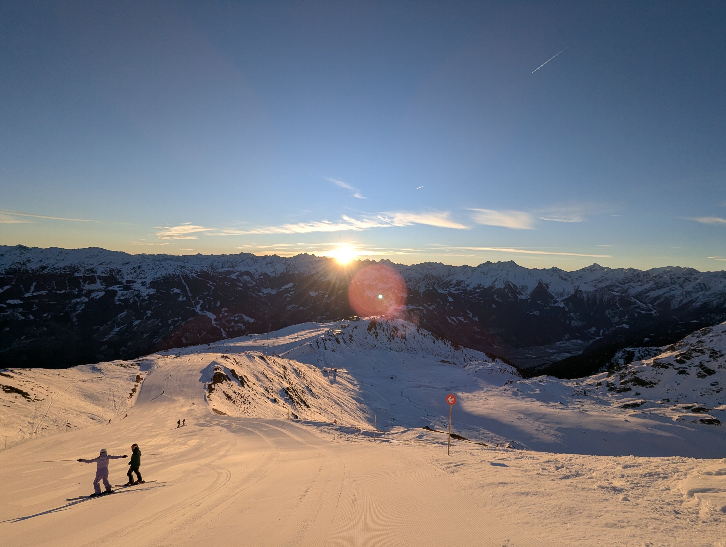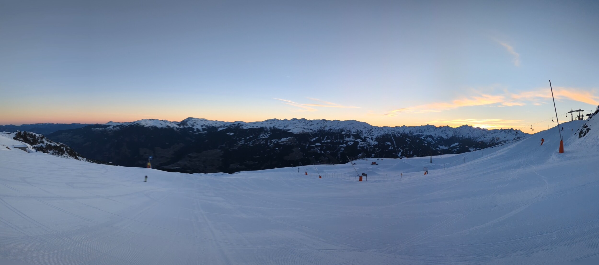 Heute Hochzillertal, pünktlich um 07:30 Uhr an der Gondel, in der siebten Gondel die besetzt war. Belohnt wurde dies mit drei perfekten Abfahrten oben sowie einem schönen Sonnenaufgang.