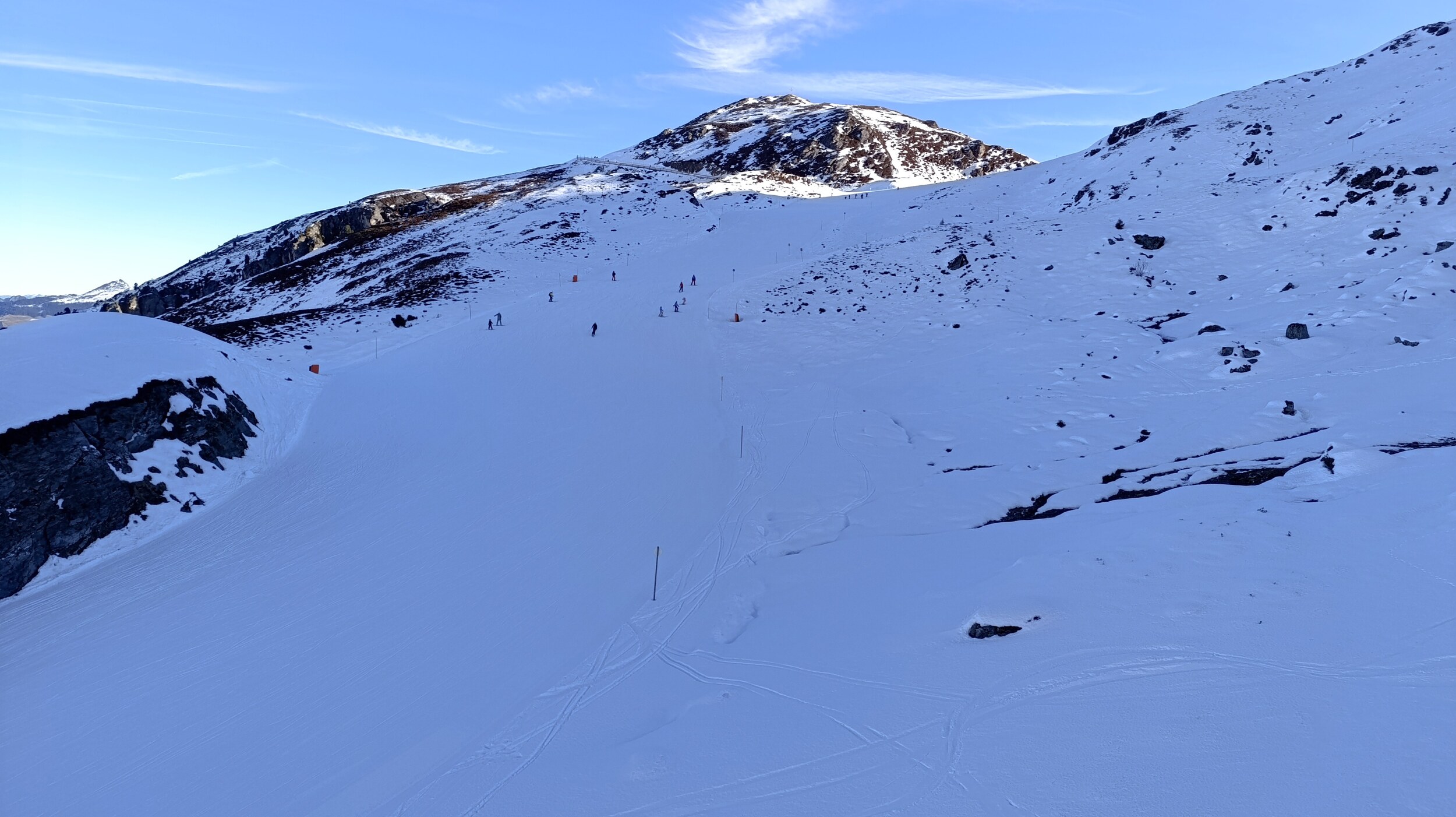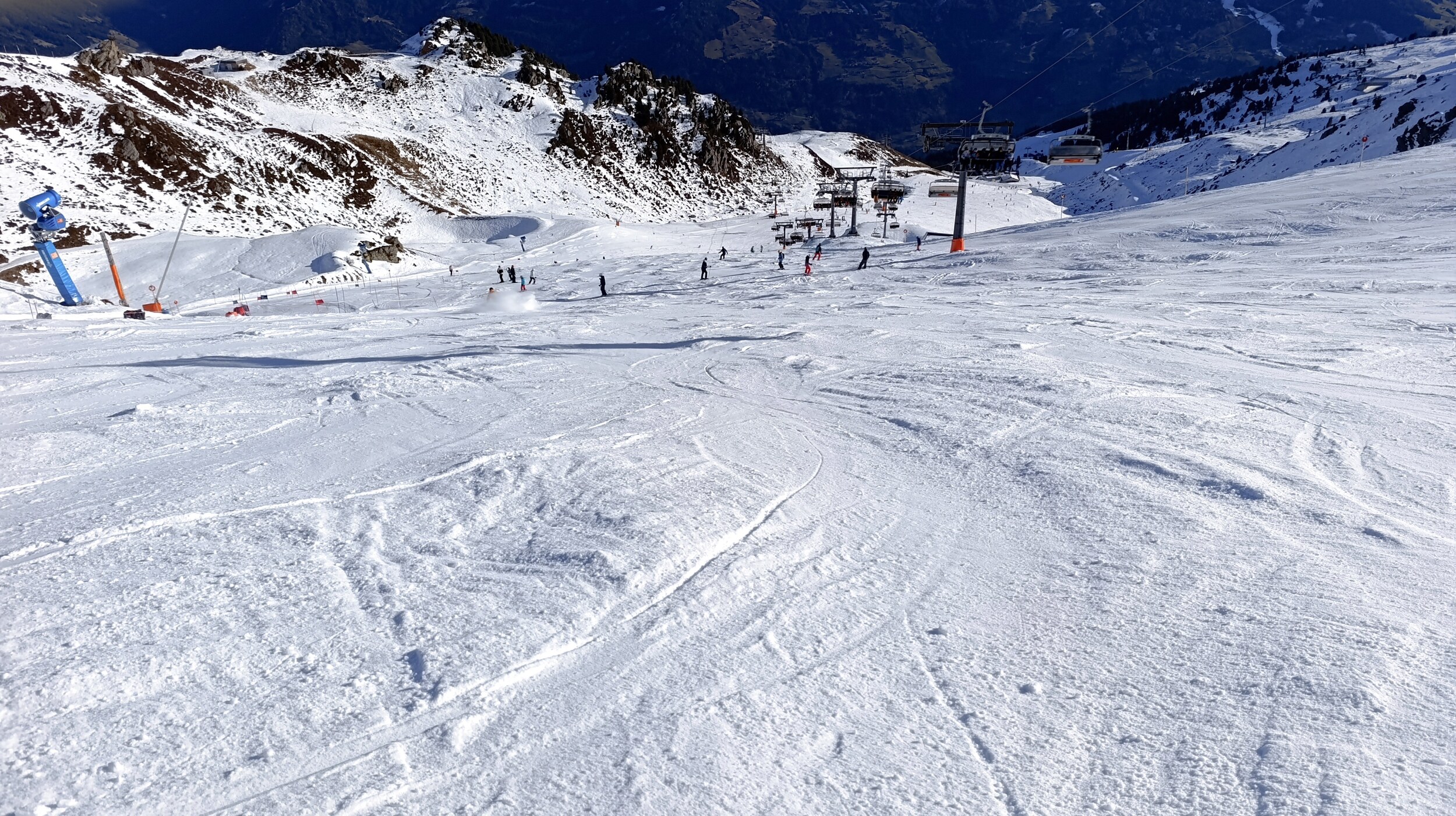 Fazit: Morgens für 1 h perfekt, dann zunehmend nachlassend, an vielen Stellen geringe Schneeauflage und dadurch im Tagesverlauf immer mehr Steine. Dank den Rennpisten aber auch nachmittags noch gute Abschnitte gefunden. Etwas weniger Leute als erwartet. 7/10 Punkten