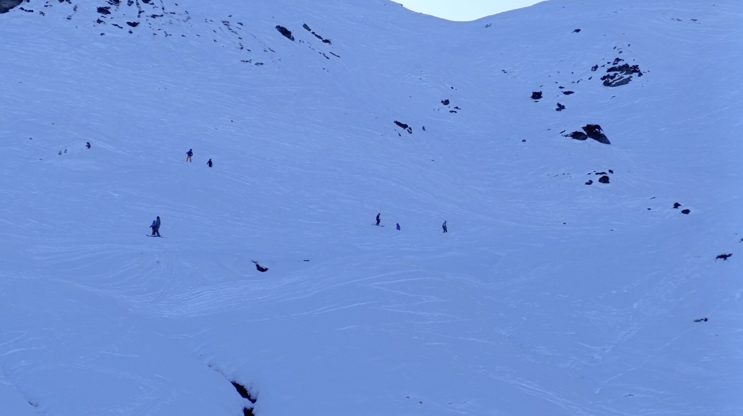 Talabfahrt unten raus etwas eisiger, mittags aufgefirnt. Oben ganztägig pulvrig, keine Firn- oder Sulzbildung.