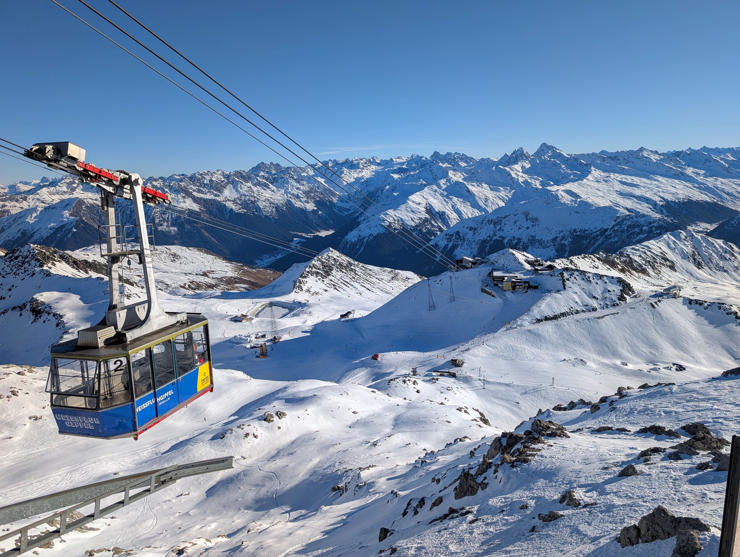 Talfahrt mit Gondeln aufgrund geschlossener Talabfahrt ebenfalls mit Wartezeit, aber es ging ok.