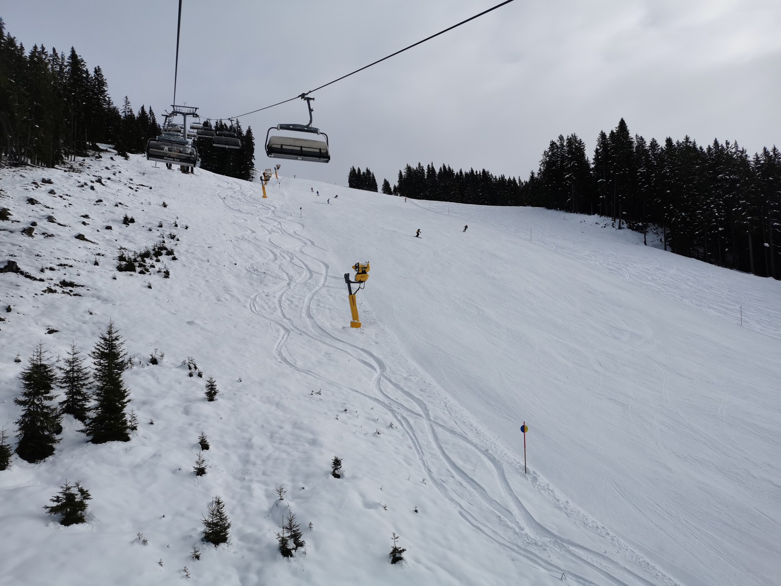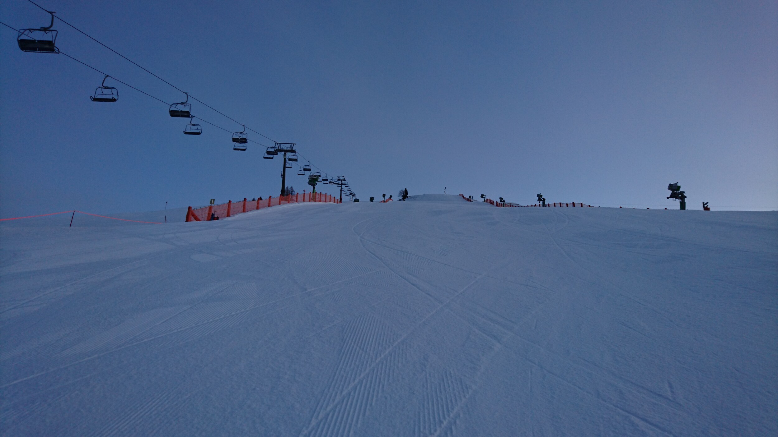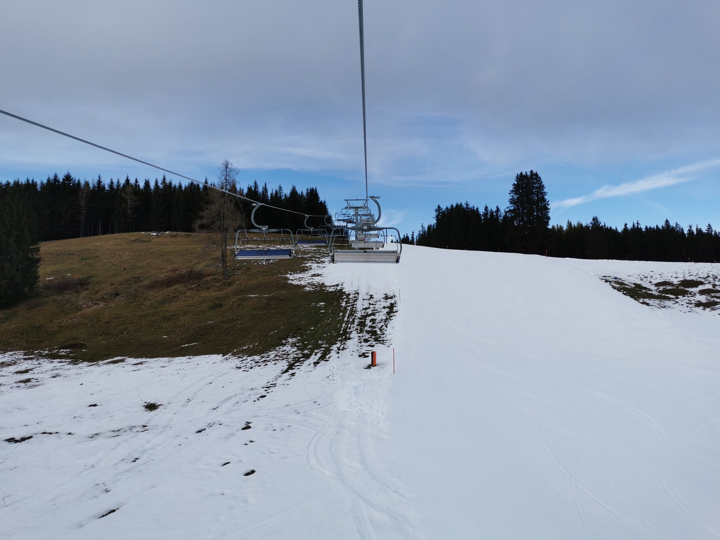 Naturschnee liegt zwar nicht allzu viel, aber die Schneekanonen haben ordentliche Arbeit geleistet. Merkt man auch an den Wasserständen in den Schneiteichen.