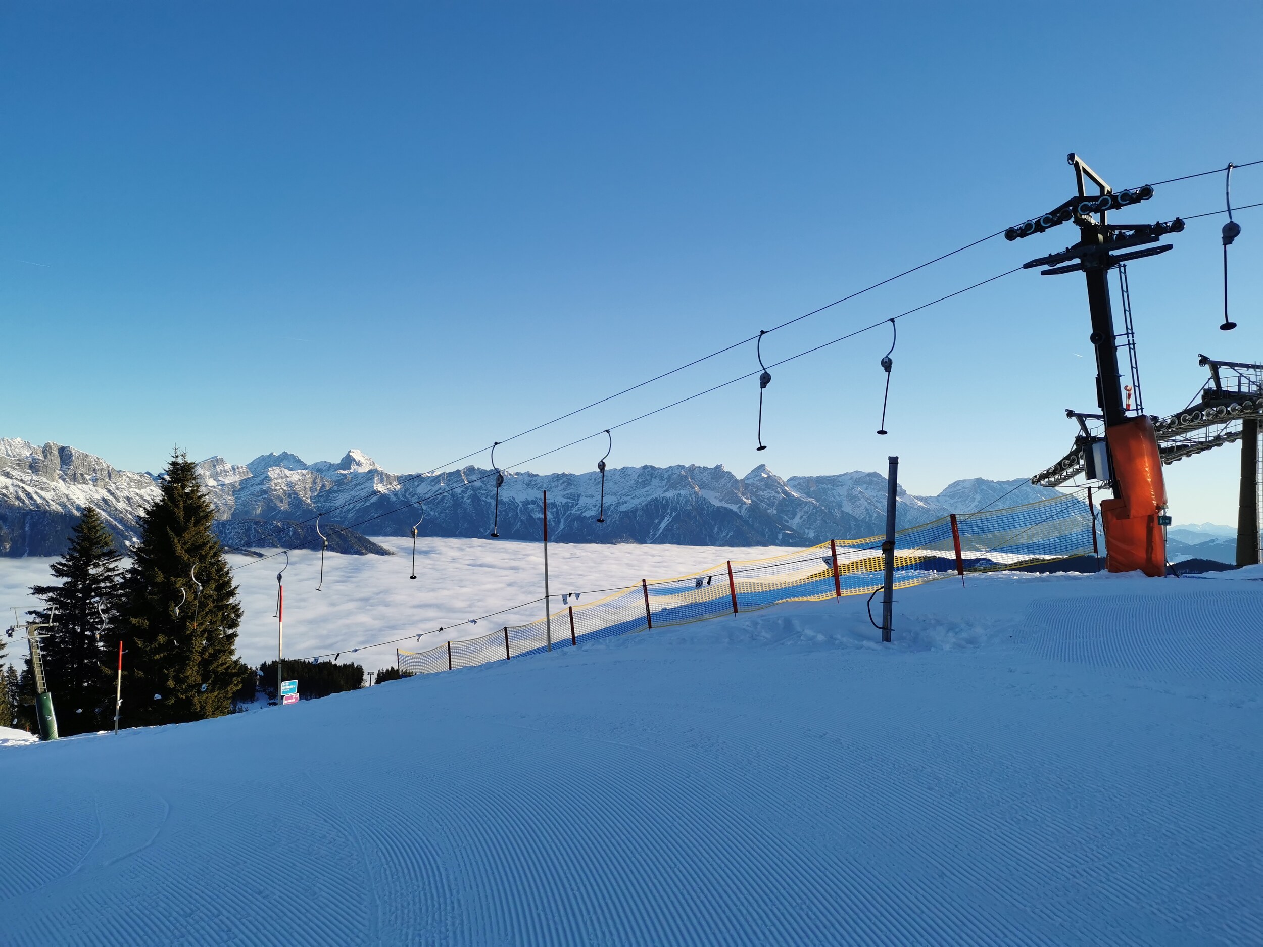 Gut besucht das Skigebiet, aber noch ohne Wartezeiten.