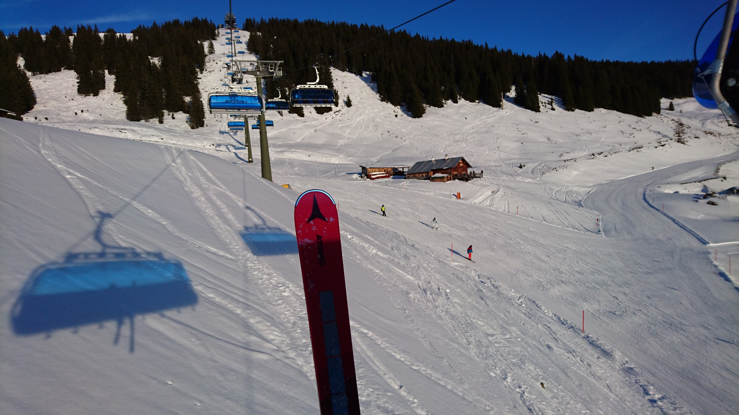 Das Innenleben vom Maiskopf 6er ( vielen Dank an LoL ) Blick zurück auf die Talstation vom Maiskopf 6er die weiten Pisten an der Hochalm... die neue 12er Nordbahn.. nochmals Rillen auf der letzten Abfahrt...