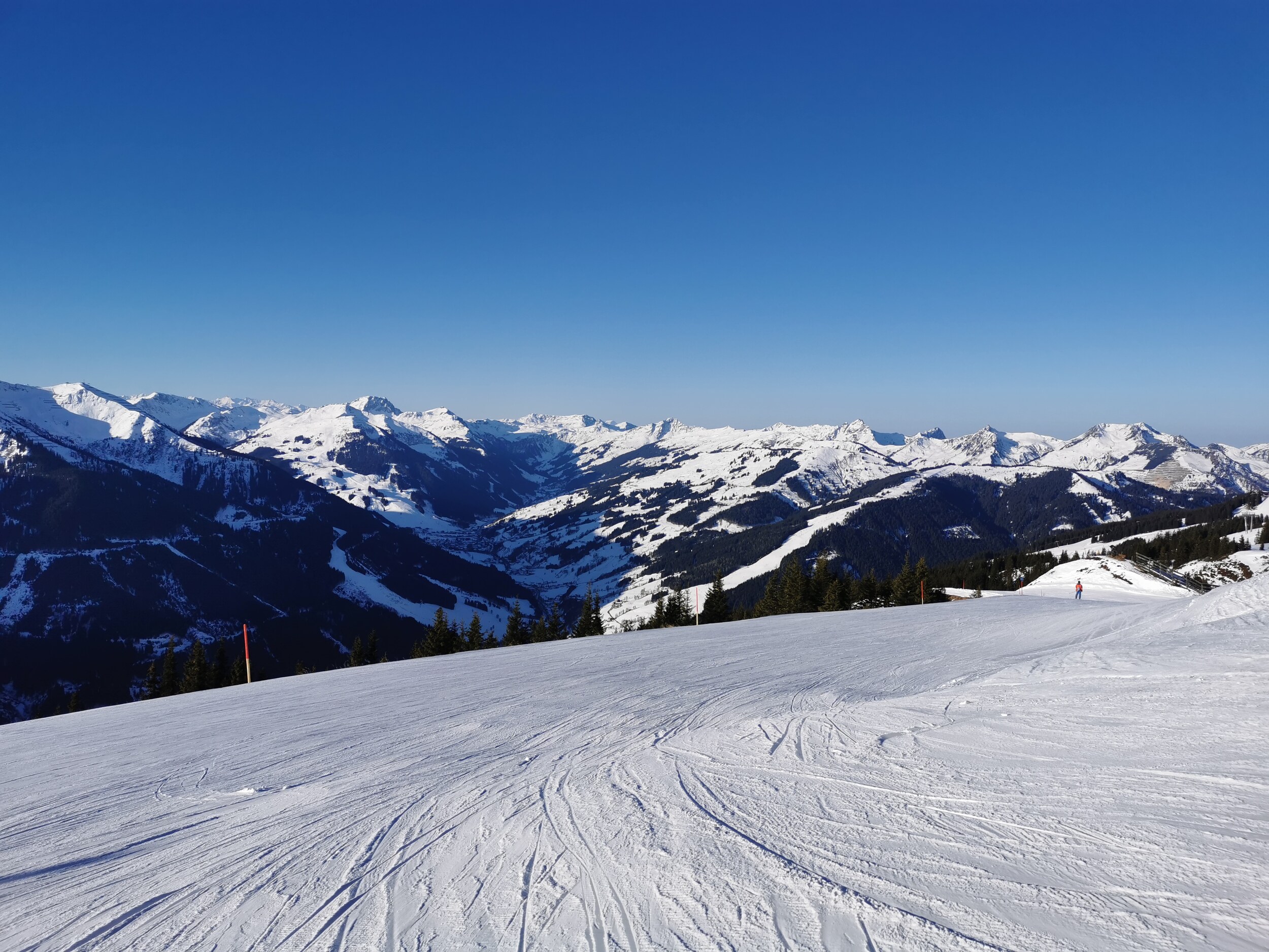Pistenverhältnisse sehr gut. Ohne Steine. Griffig. Relativ wenig los. Nur gegen Betriebsende in Leogang etwas abgerutscht und eisig.