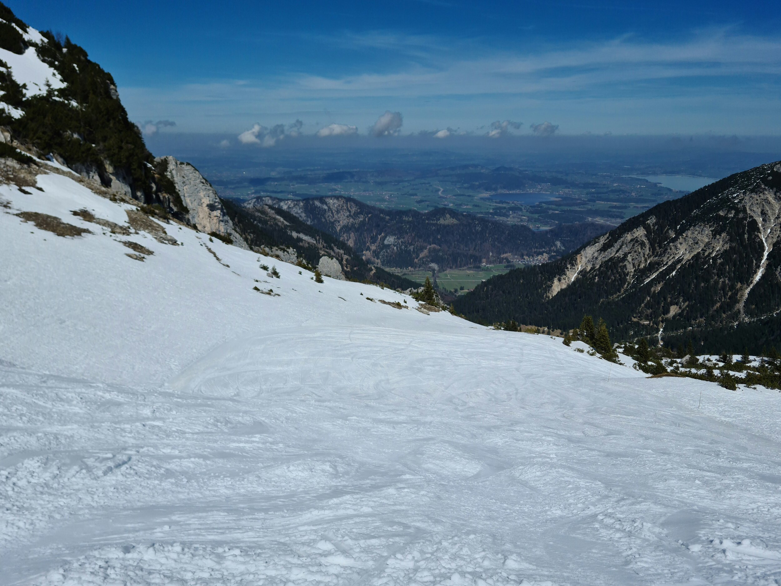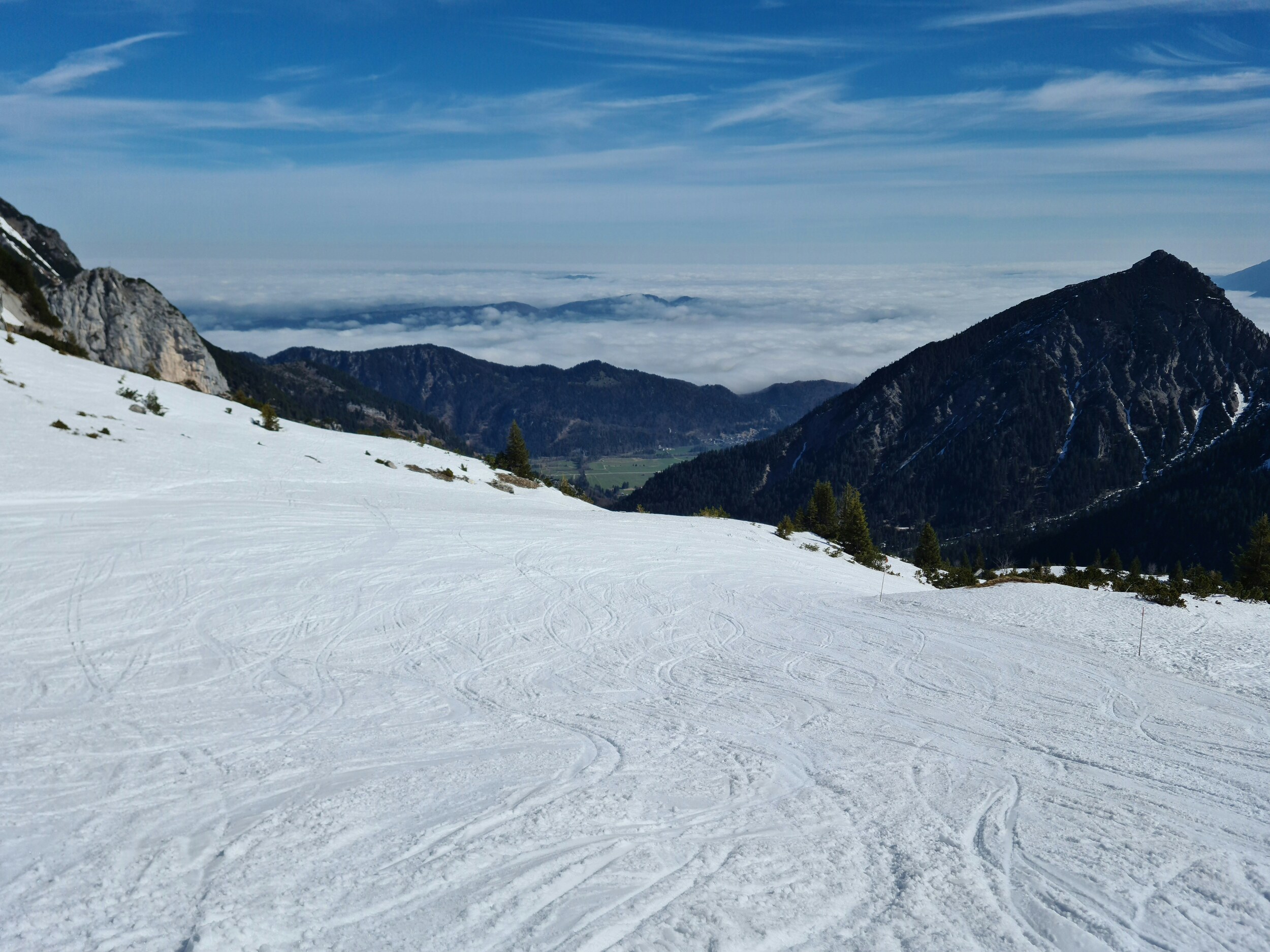 Heute war ich in Grän, dort ist morgen der letzte Skitag der Saison. Schön, dass sie so lange geöffnet haben! Erwartungsgemäß war der Schnee sulzig, dennoch war das Skifahren insgesamt schön. Schön war auch das morgendliche Nebelmeer über dem am Nachmittag dann solmerlich grün sichtbaren Flachland. So bekommt dieser schöne Skitag von mir 8 Punkte!