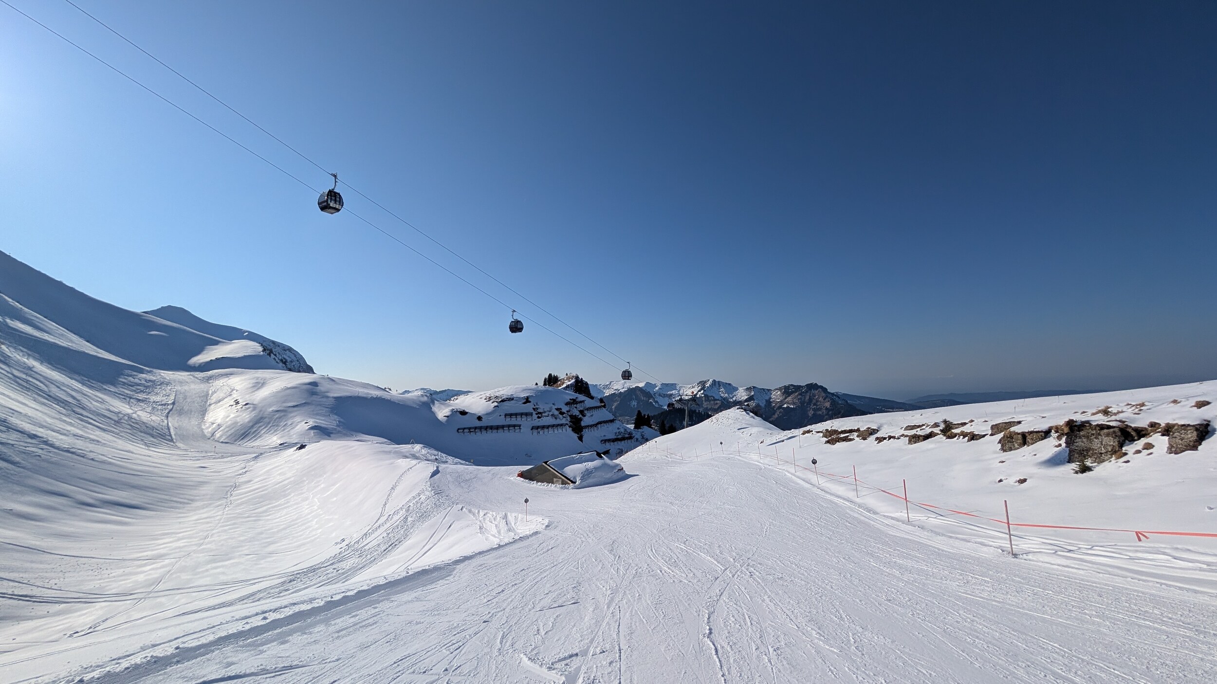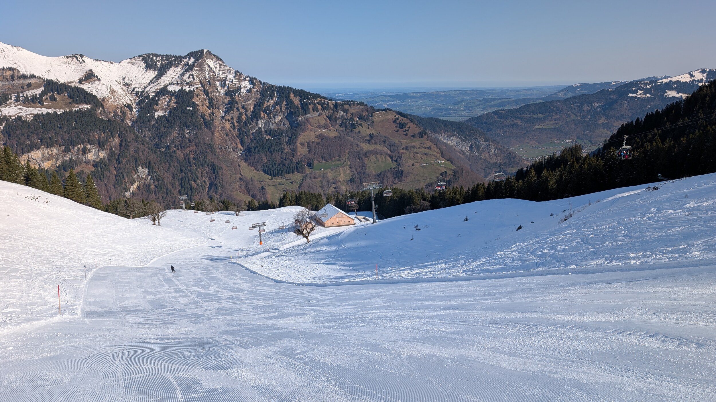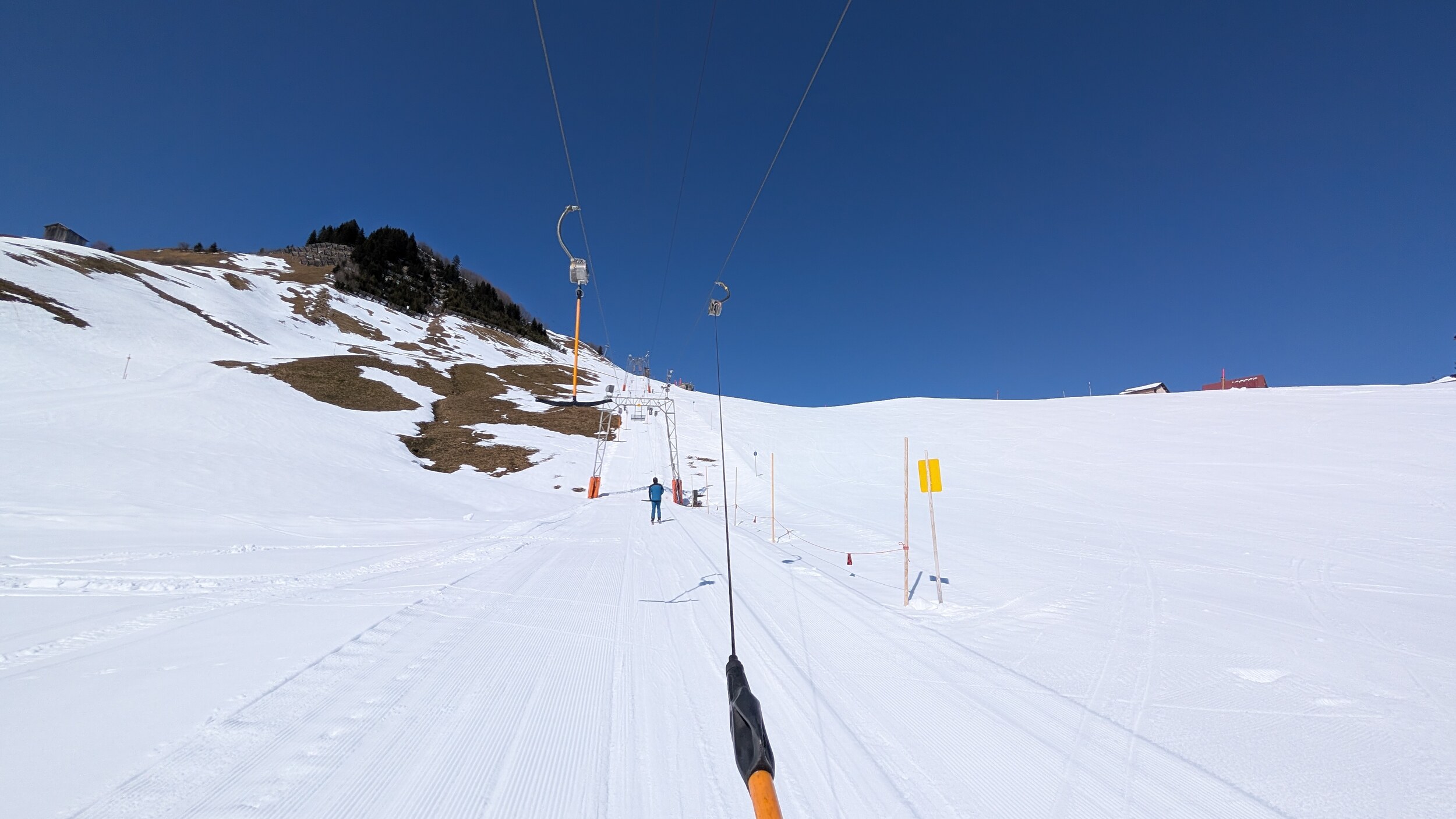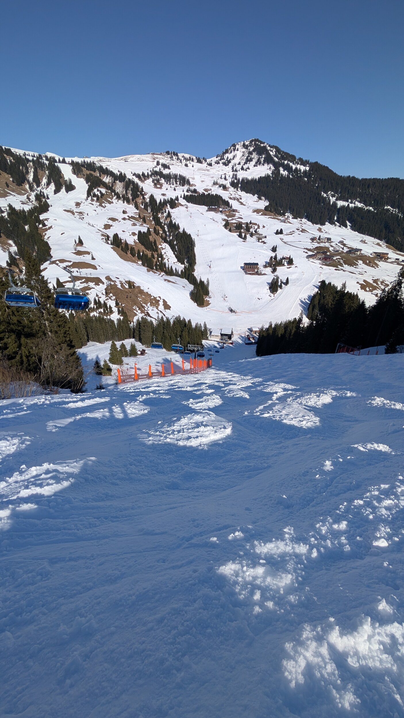 - Die direkte schwarze Piste sieht super aus! Links neben der aktuellen Trasse verlief früher eine steiler Schlepplift, bei dem ist wohl regelmäßig zu Unfällen kam bei dem ein einzelner Sturz dann die gesamte Reihe abgeräumt hat. Im zweiten Jahr meine skikurses damals gab es dann schon die Sesselbahn.