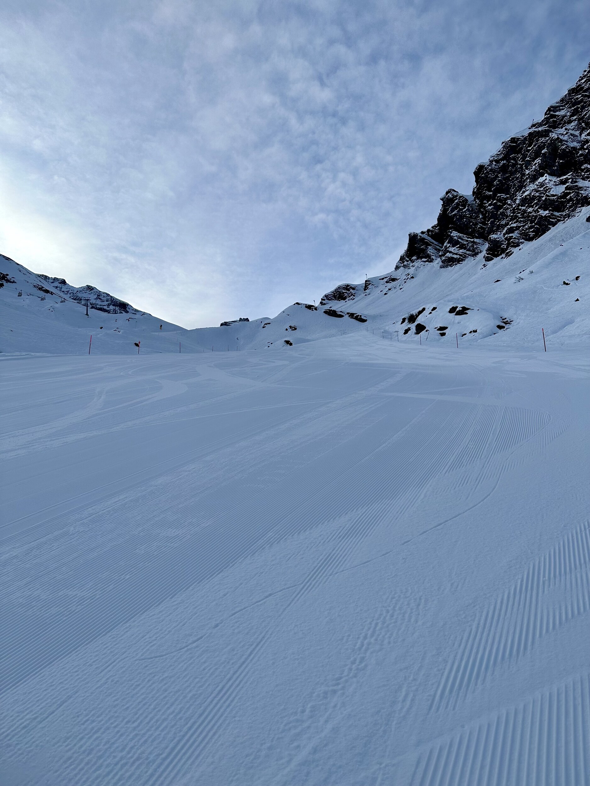 Heute war es ein Traum, gut präpariert und schön griffig zum carven. Erst gegen Mittag wurde es langsam härter. Leute hatte es kaum welche. So müsste es immer sein.