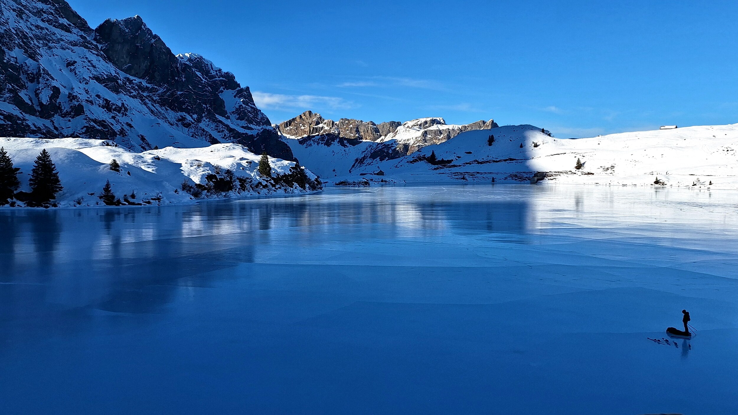 Gestern machte sogar SRF Meteo in ihrer Abendsendung um 19.50 Uhr „Werbung“ für den gefrorenen Trübsee, wies dann aber auch gleichzeitig darauf hin, dass man dies auf eigene Gefahr tue.