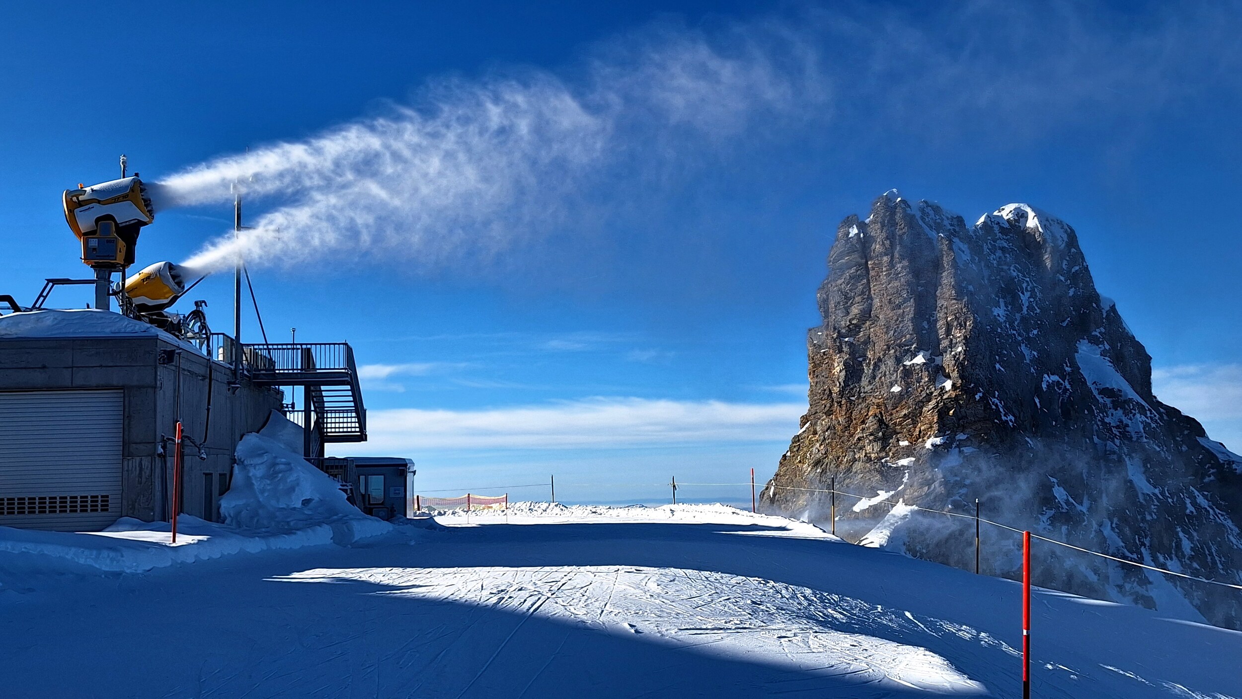 Wir waren heute wieder am Titlis. Die Verhältnisse bis ca. 10 Uhr hart aber noch gut zum fahren. Zum Teil hatte es Eisplatten. Jochstock war heute gar nicht gut, eisig und die Hälfte der Piste gesperrt durch Skiclubs. Standseite auch eher hart bis eisig. Insgesamt geht es noch gut zum fahren aber Schnee wär nicht schlecht auch für die Talabfahrt. Die wird an gewissen Stellen ein bisschen braun geht aber noch problemlos und das auf 1000m.Da können sich gewisse Gebiete in GR abschauen. Engstlen sollte bald aufgehen, heute wurde mit dem verteilen der Pistenmarkierungen begonnen. Dann wäre das ganze Gebiet geöffnet.