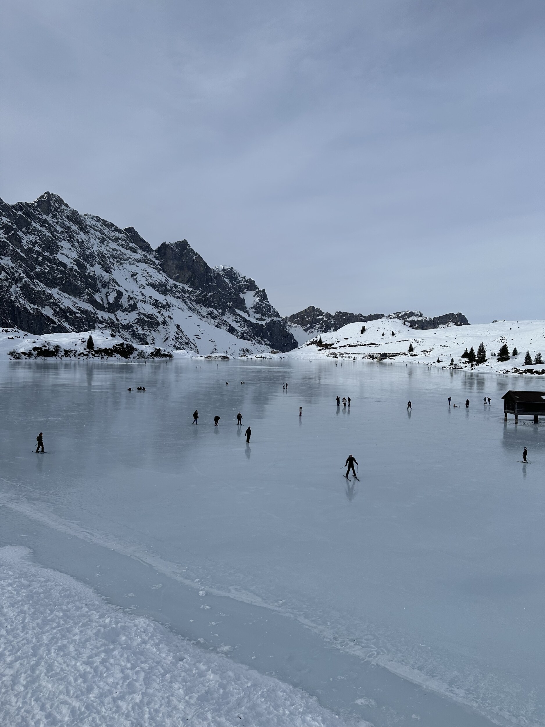 Ja es gab recht viele Leute mit Snowboard und Skis auf dem See. Auch welche wo Eishockey gespielt haben und einfach nur sonst Leute. Es waren sehr viele Leute auf dem See.