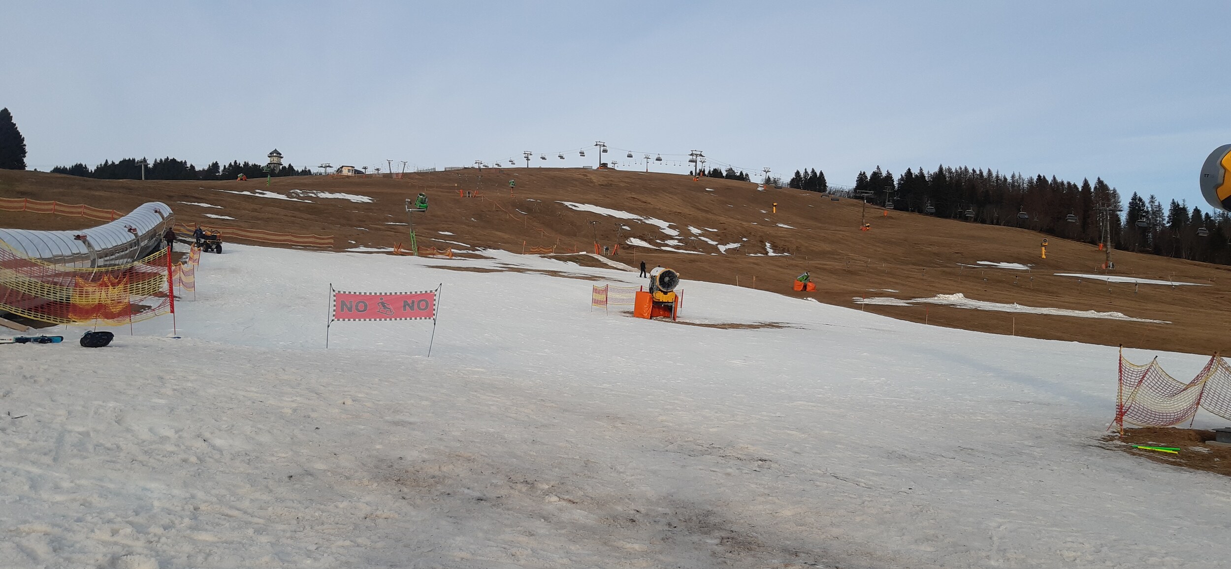 Der Schnee ist wieder weggetaut. Skifahren auf 100% Kunstschnee.