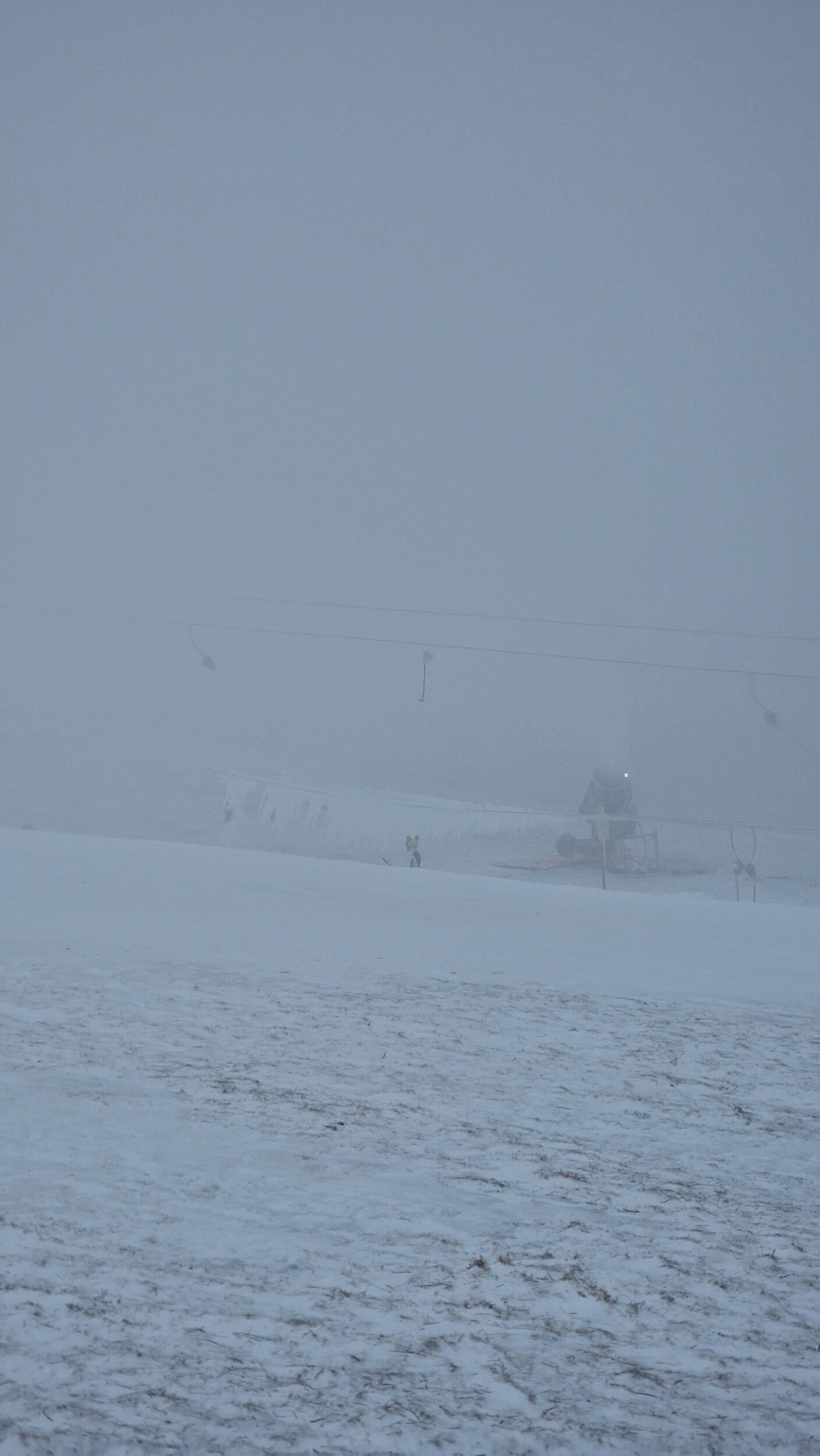 Heute wurde nicht nur die Piste beschneit sondern auch die Besucher und bei dem Wind auch der Wald daneben.