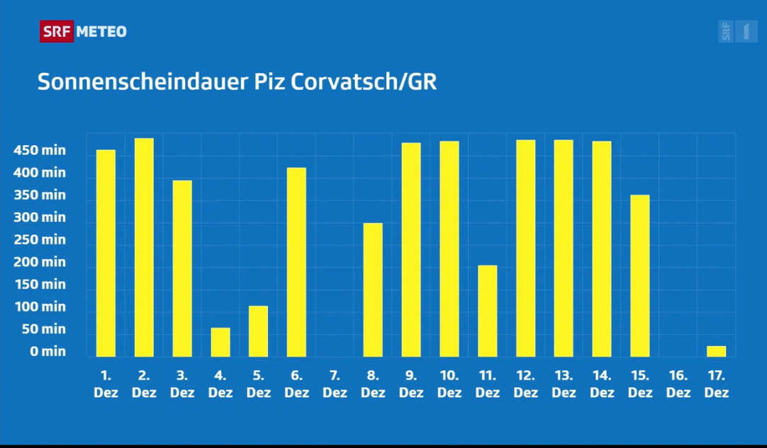 Der Corvatsch war im Dezember bisher der sonnigste Ort der Schweiz: