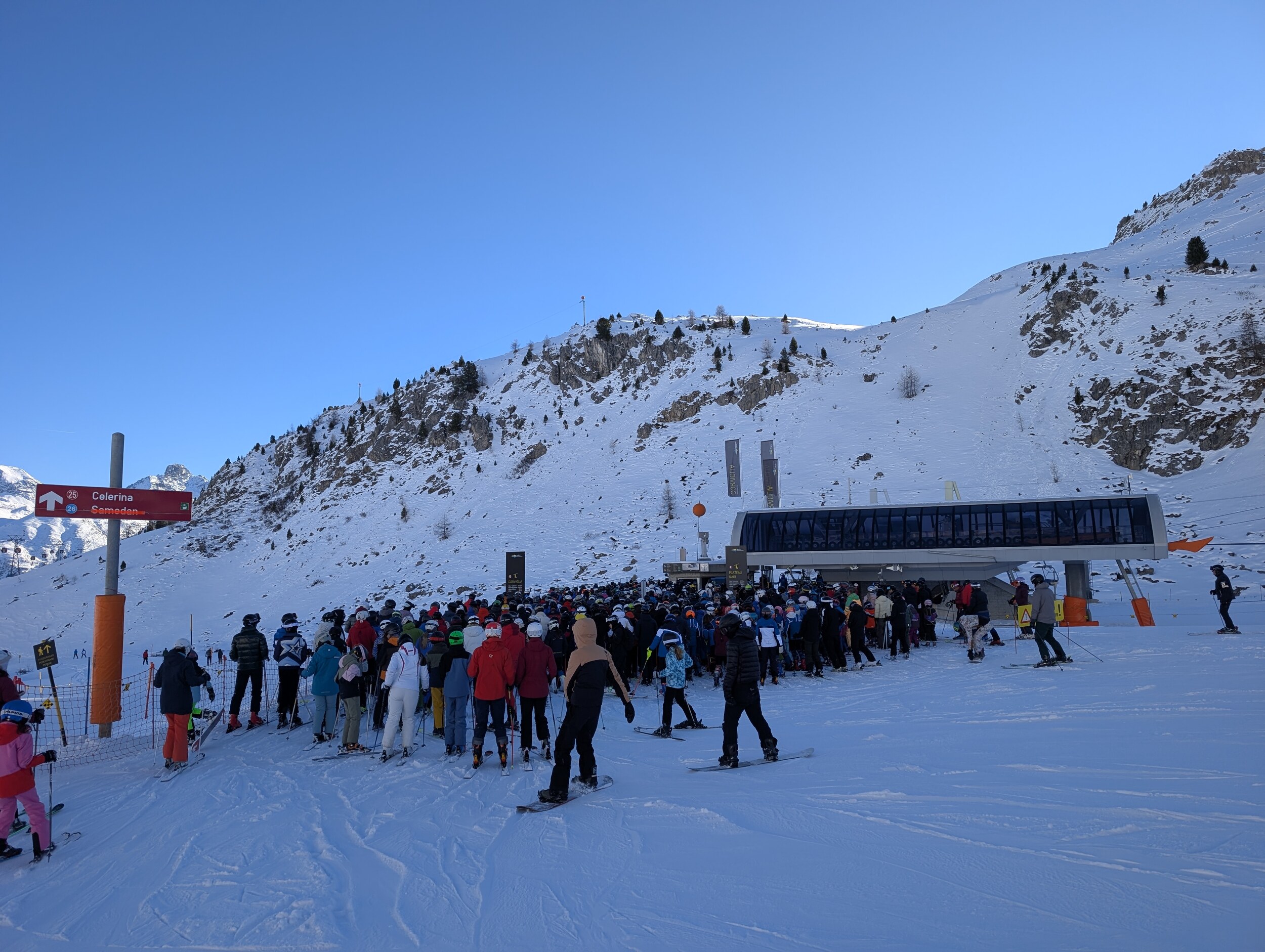 In den Weihnachtsferien ist die Corviglia immer voll. Dürfte aber für jedes ausreichend große Gebiet im Alpenraum gelten.